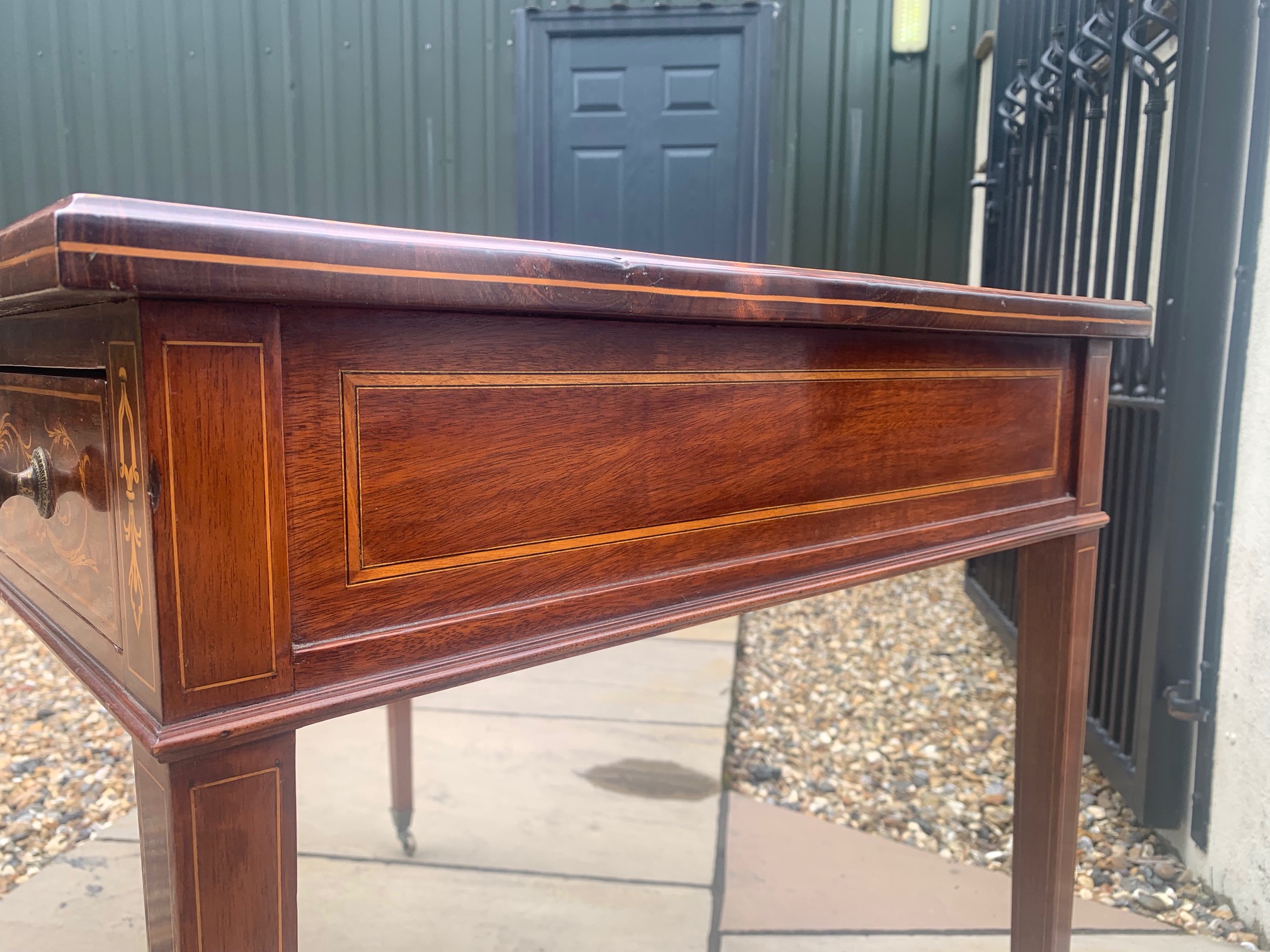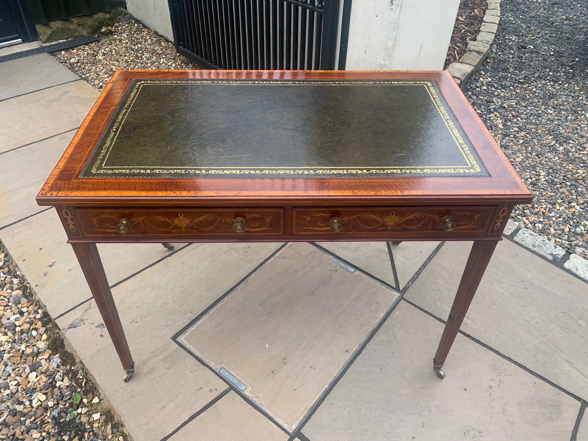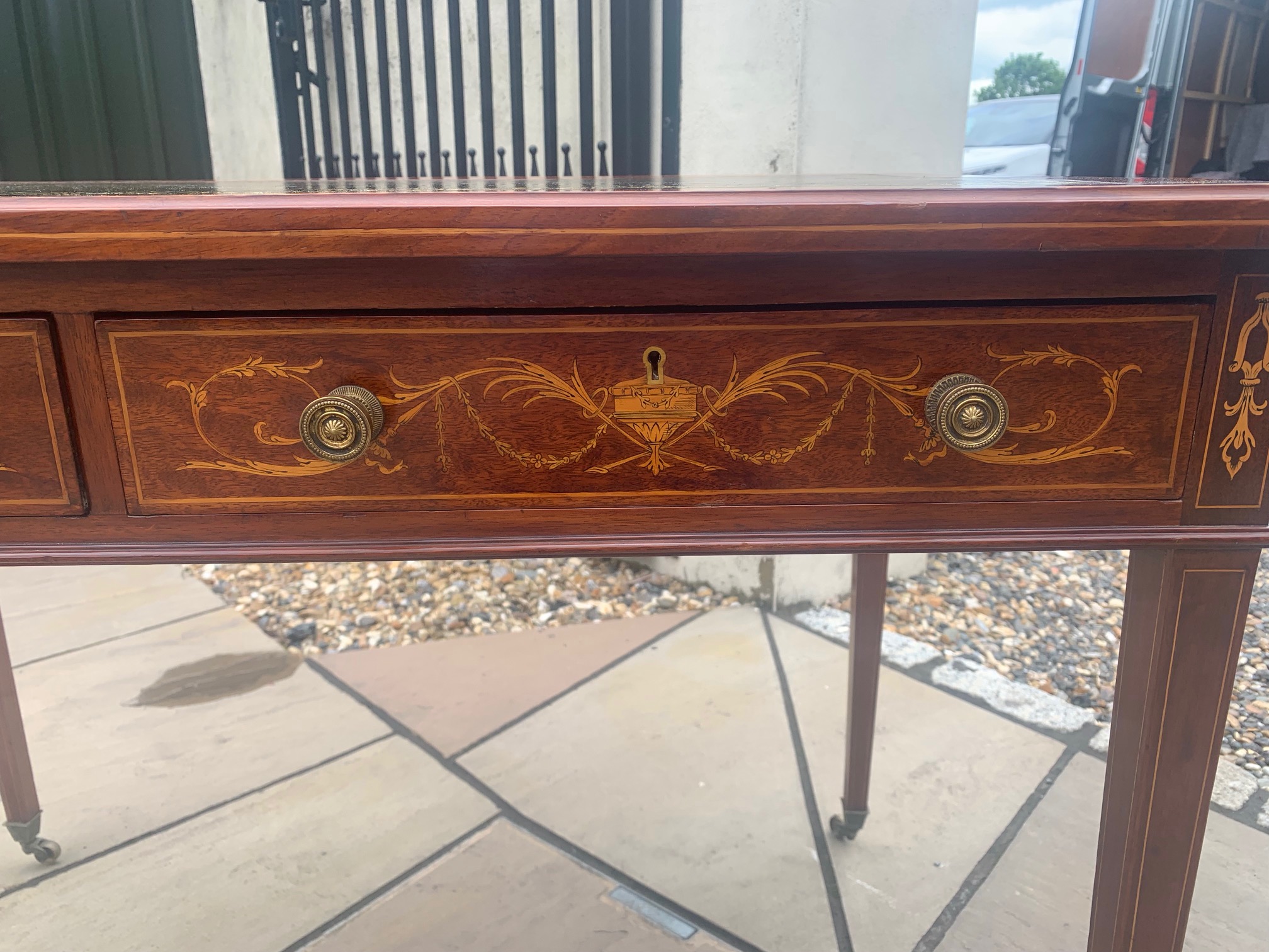 A fine quality Edwardian Period mahogany inlaid writing table by Shoolbred of London