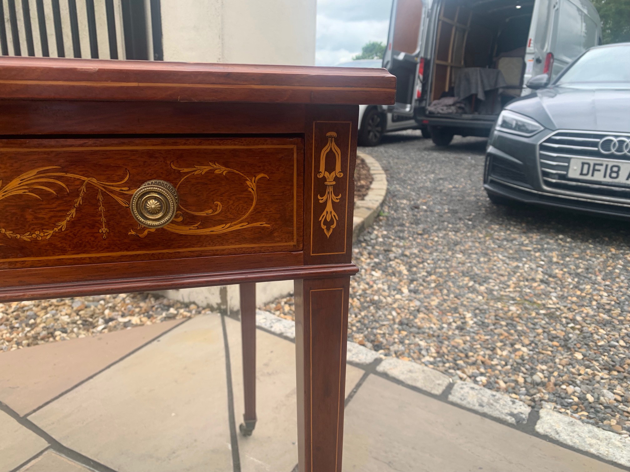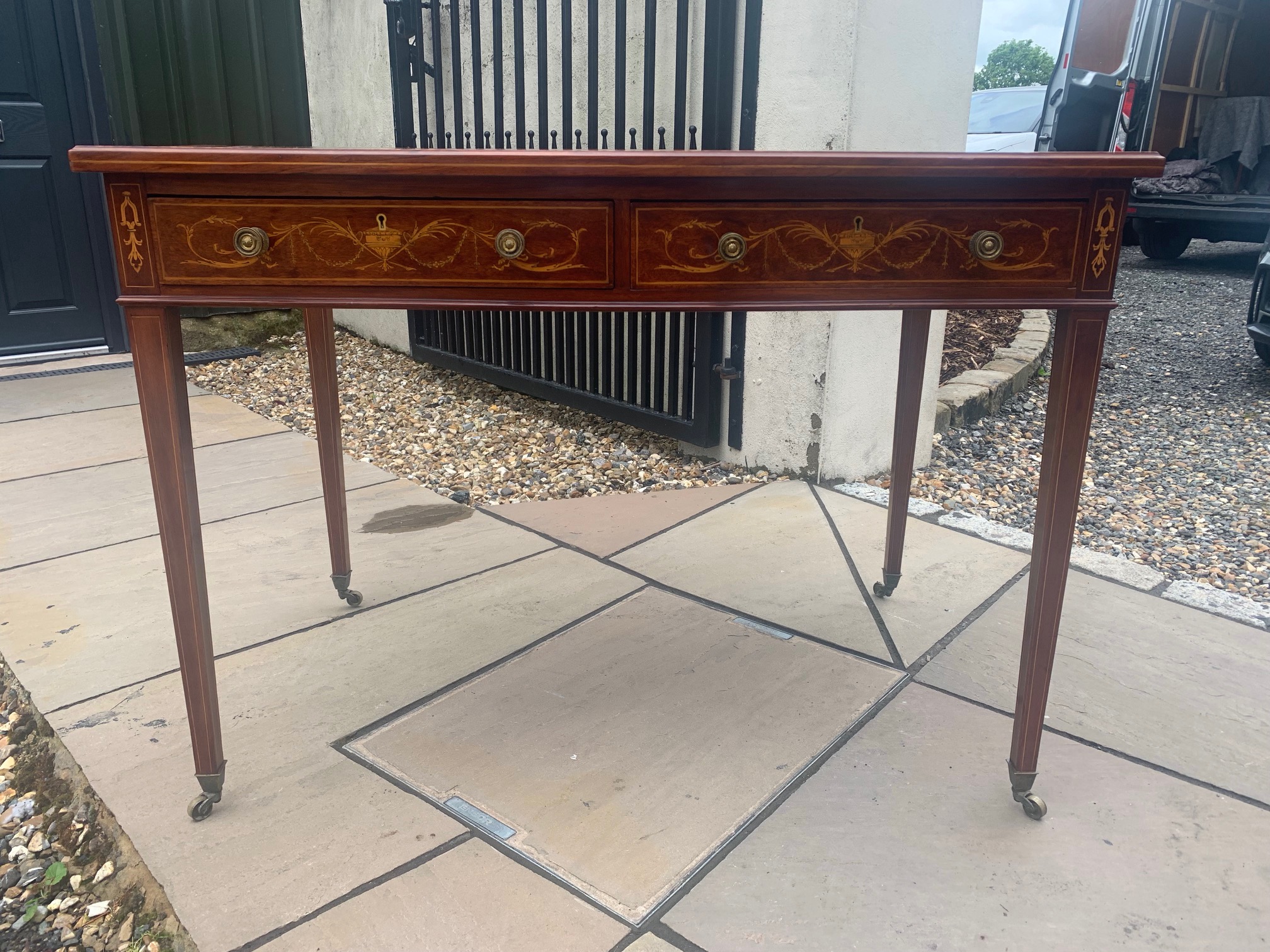 A fine quality Edwardian Period mahogany inlaid writing table by Shoolbred of London1250