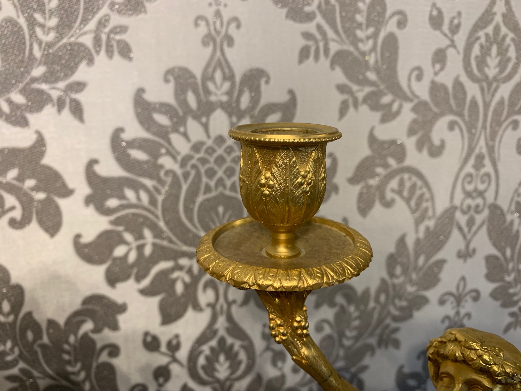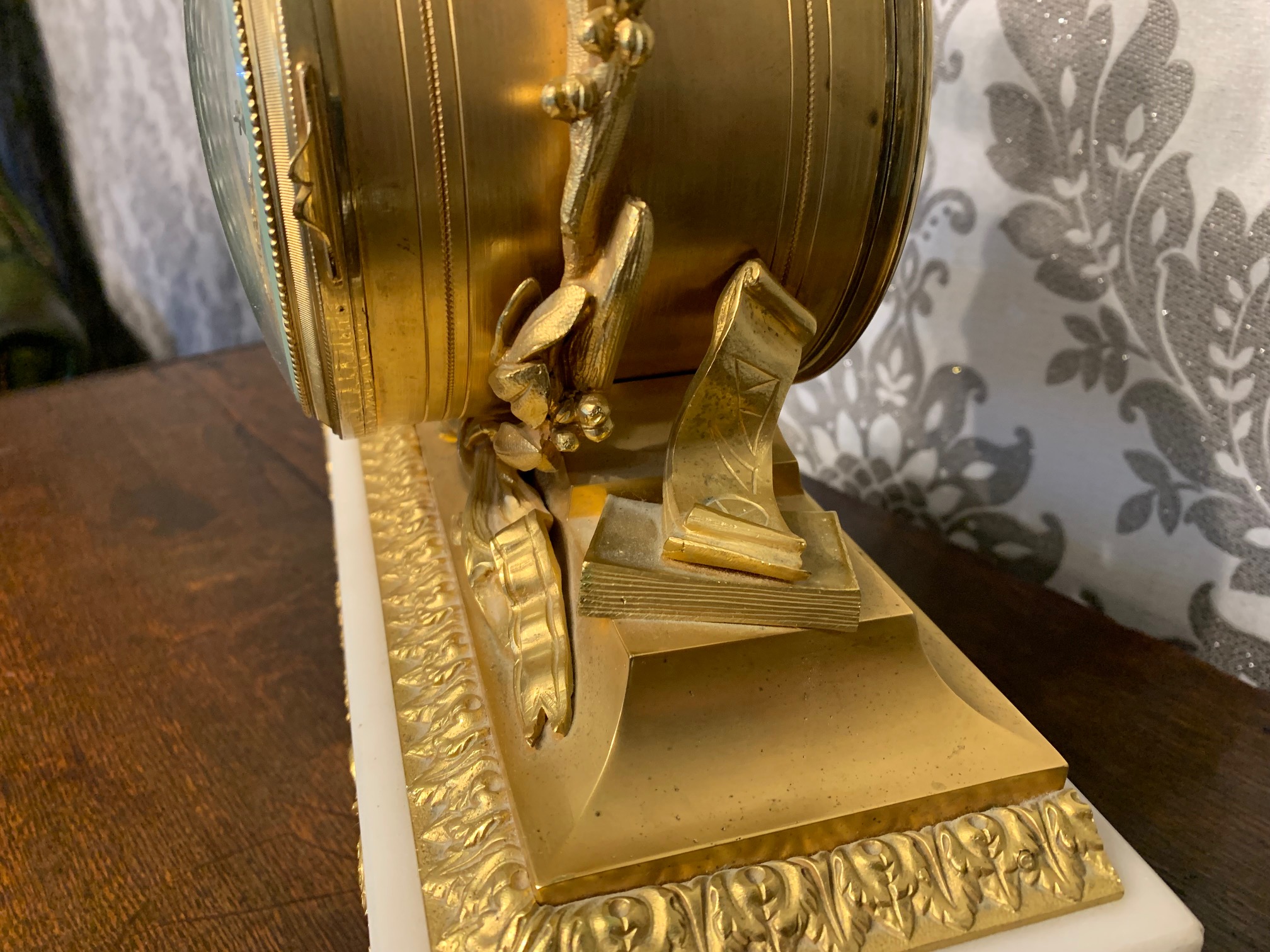 Dimensions: clock 11.5″ wide x 5″ deep x 13″ high, candelabra 12″ high x 5″ diameter