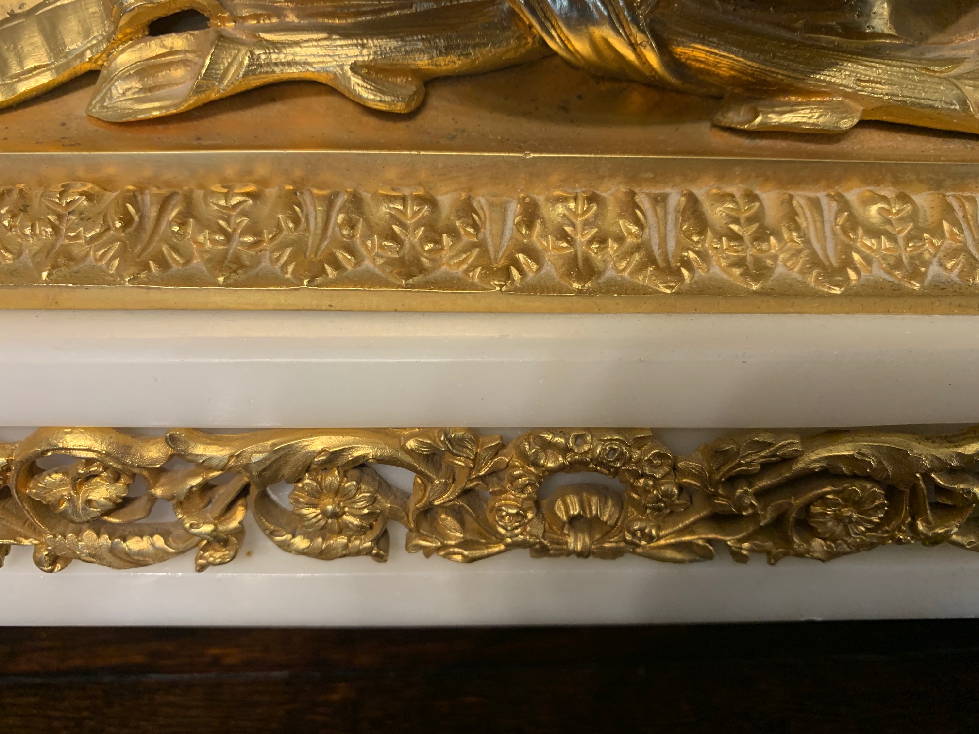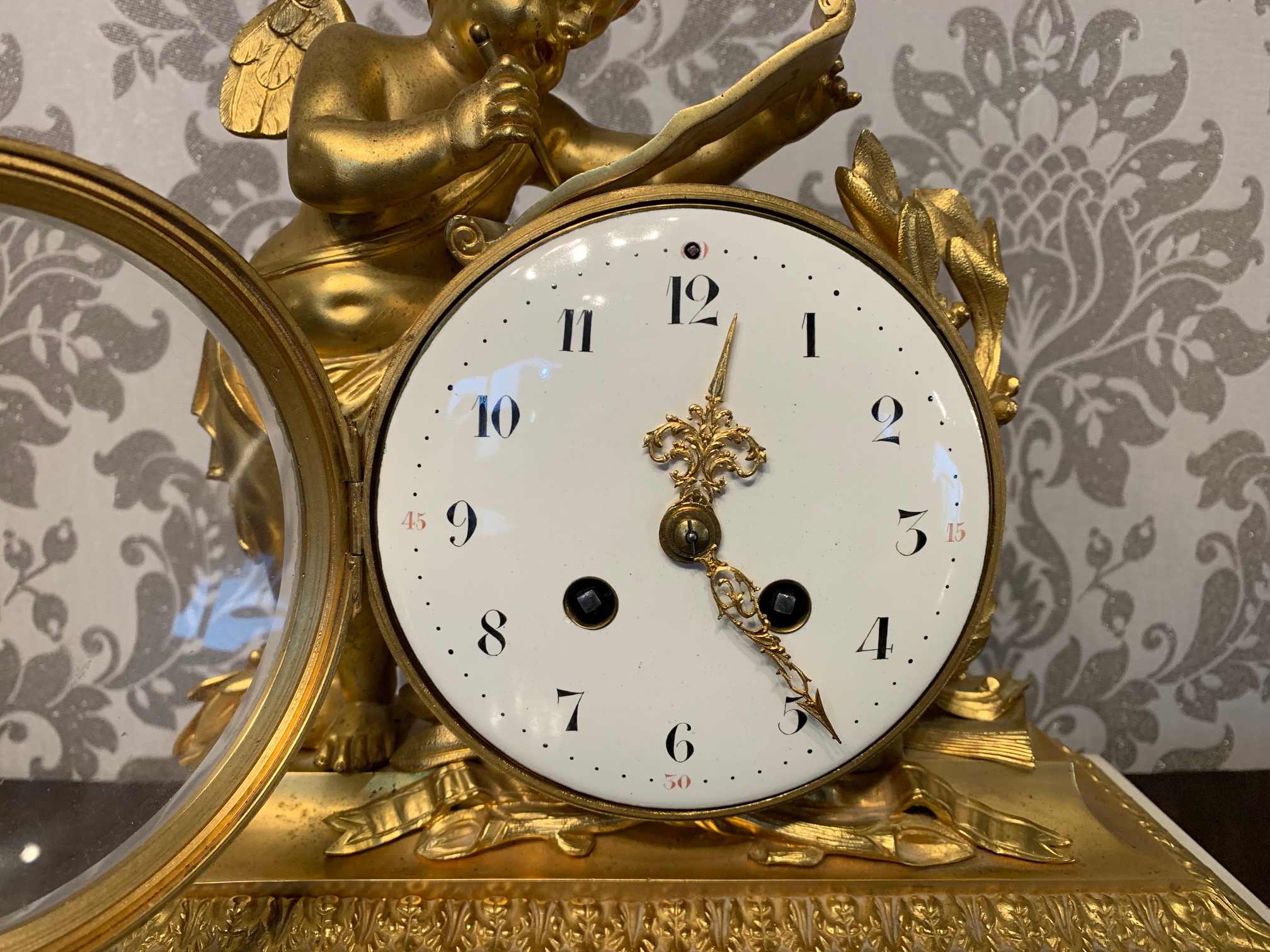 A fine quality French ormolu and marble cherub clock garniture