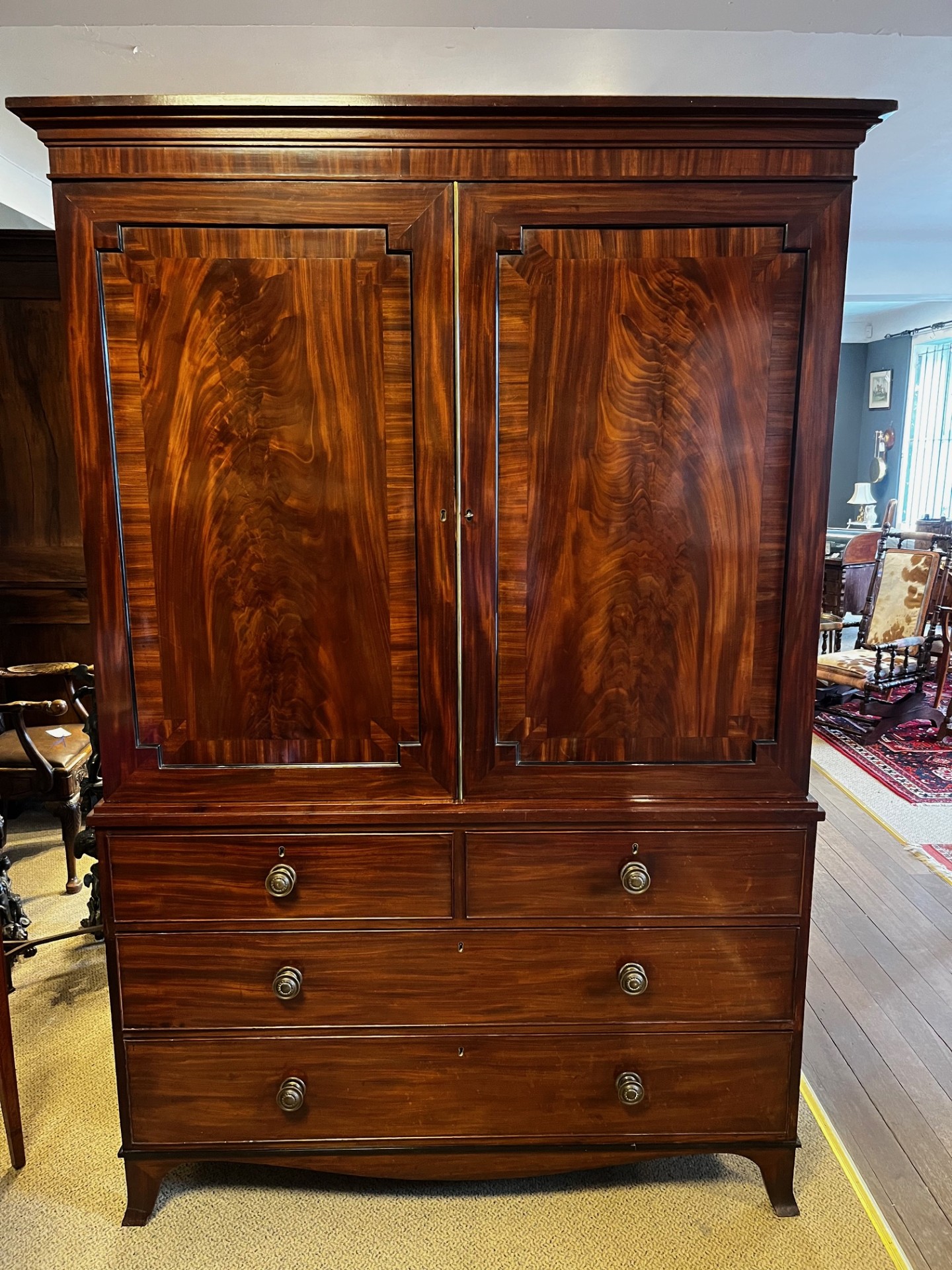 A Fine Quality Regency Period Mahogany Linen Press