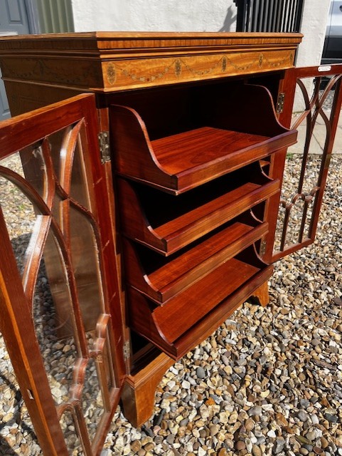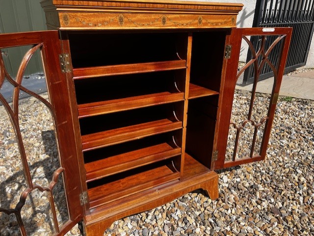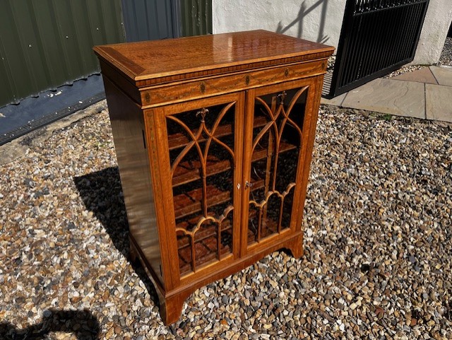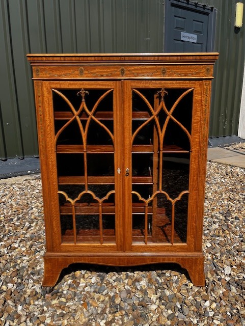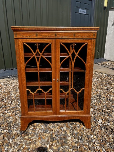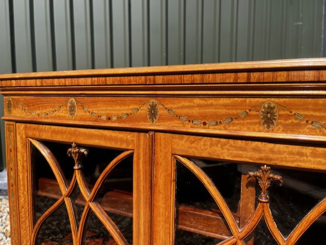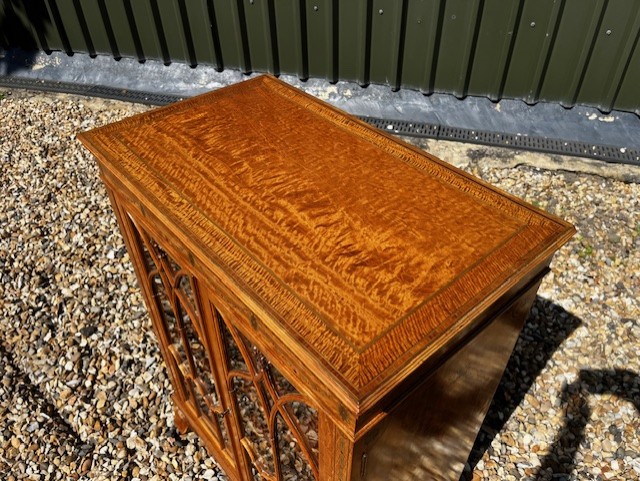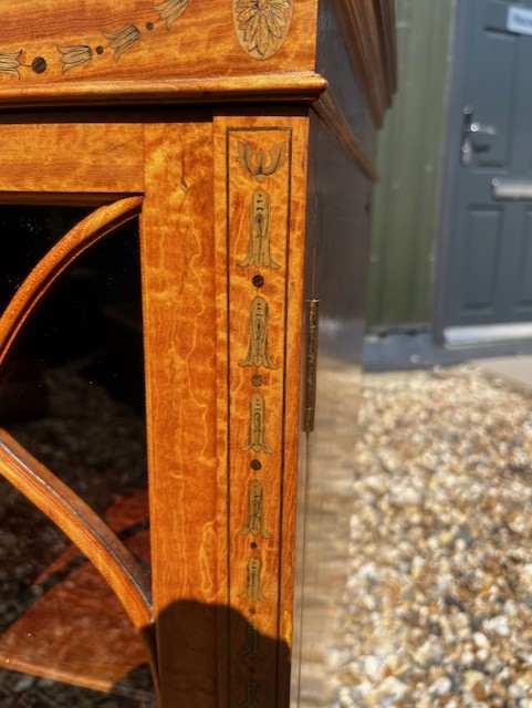 A Fine Quality Small Scale Late Victorian Satinwood & Marquetry Inlaid Collectors Cabinet