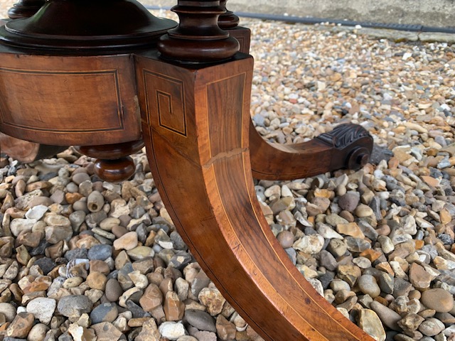 CompareA fine quality Victorian Period burr walnut and marquetry inlaid oval antique coffee table. The oval top made in beautifully figured burr walnut with amboyna, ebony and boxwood inlaid detail, raised on four turned and carved columns with a central finial and splayed legs with acanthus carving and brass and porcelain castors. English circa 1870, retaining part of the original label for James Pratt & Sons, of Bradford, fine quality cabinet makers from the Victorian Era. Beautiful overall condition, a historical repair to two of the legs as shown in the images.