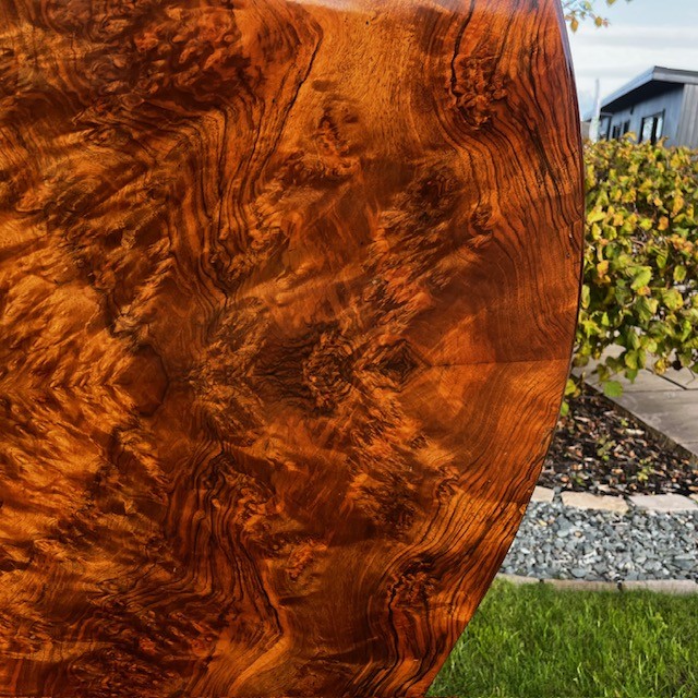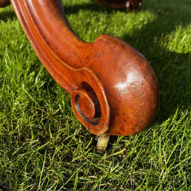A fine quality Victorian Period burr walnut antique dining table. The top of serpentine outline and veneered in beautiful book matched burr walnut. The base having walnut bulbous column, raised on four floral carved cabriole supports with inset brass and porcelain castors. English circa 1870-1880, in superb condition, a wonderful colour and patina