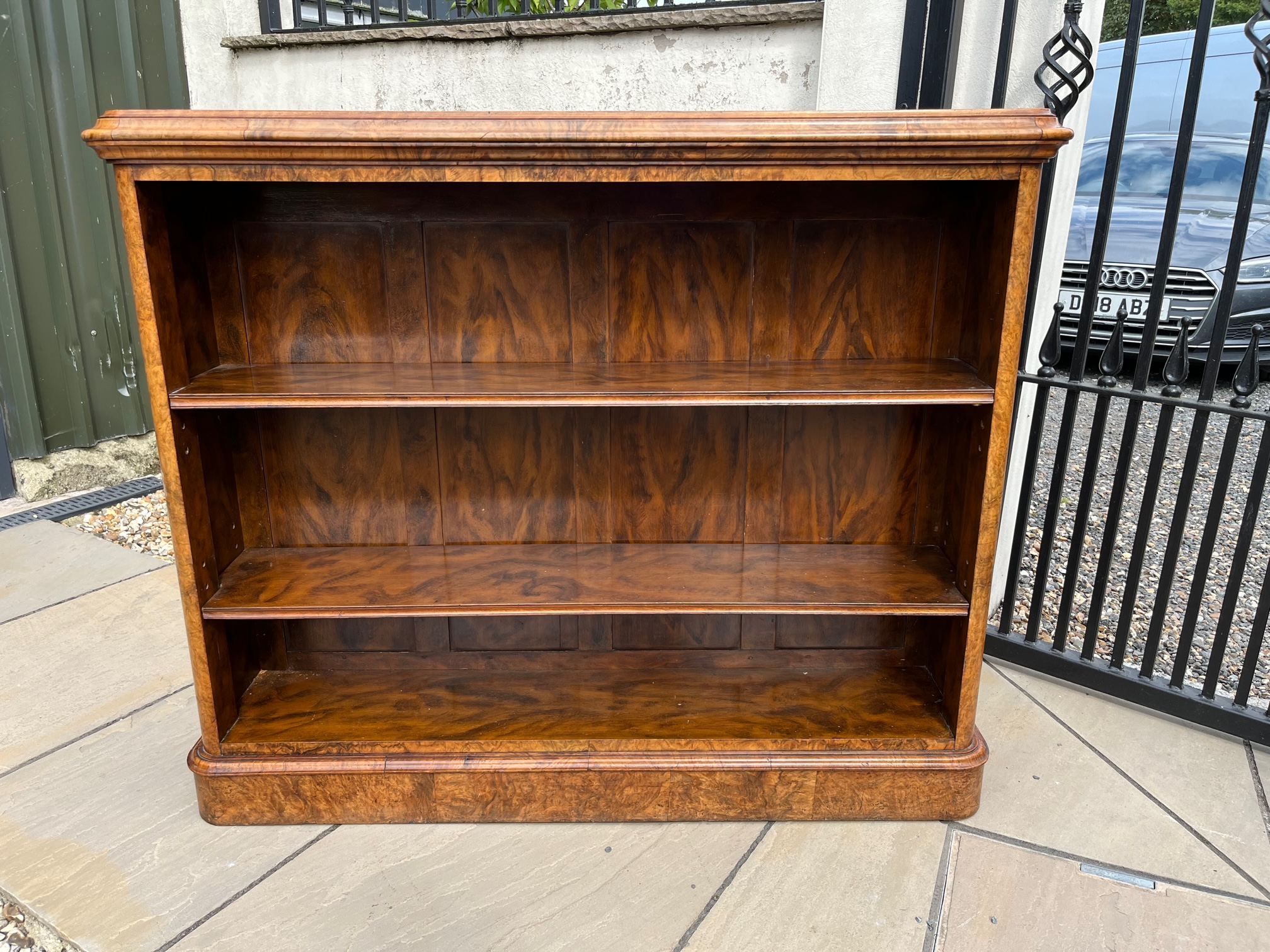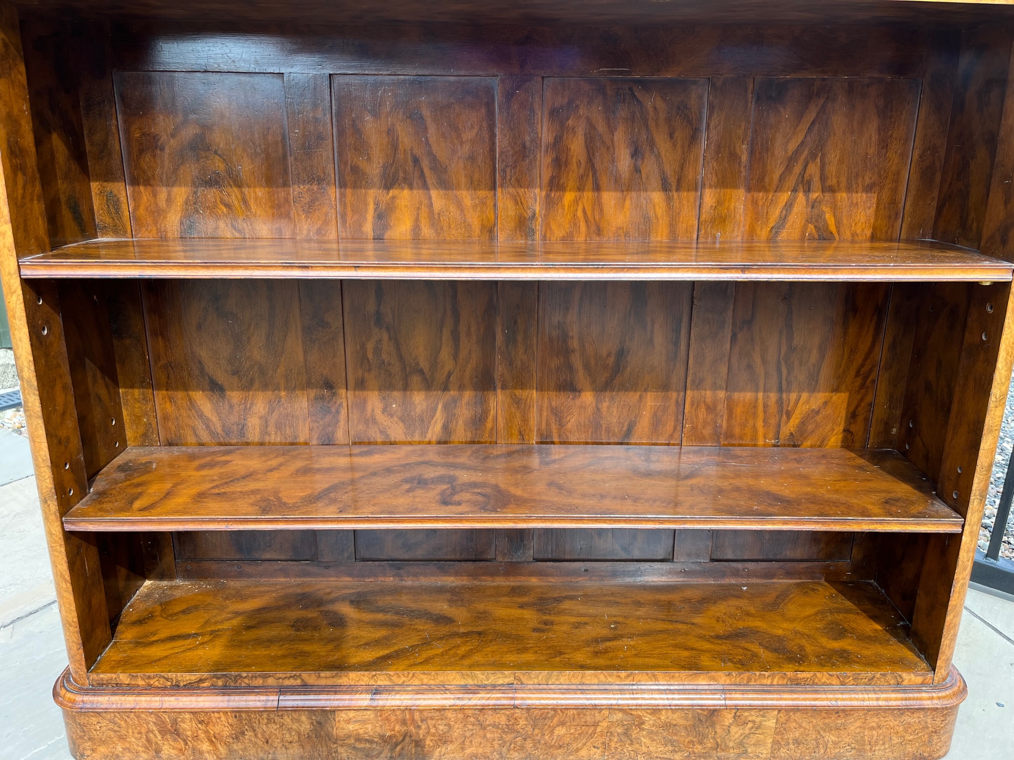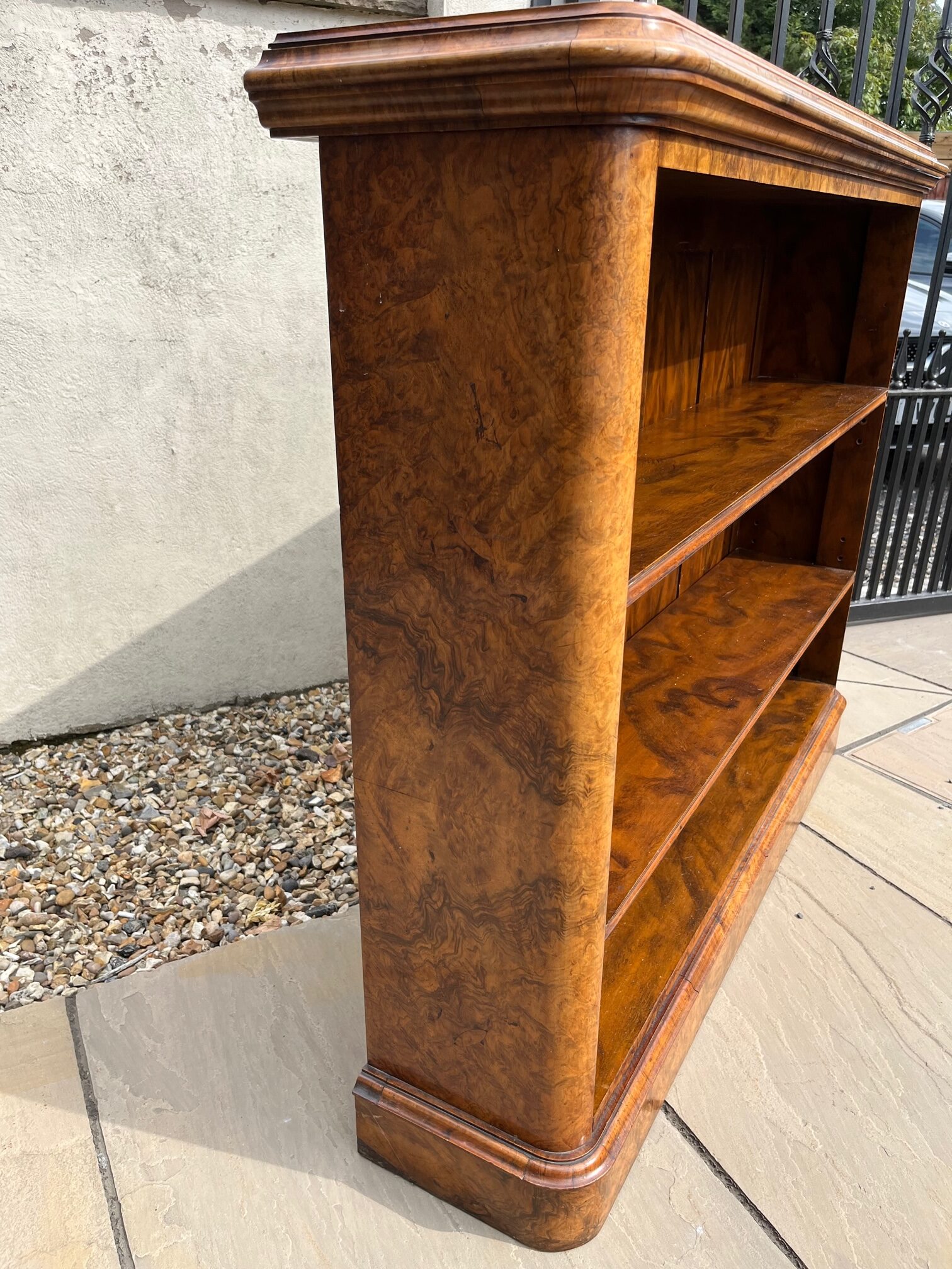 A Fine Quality Victorian Period Burr Walnut Antique Open Bookcase