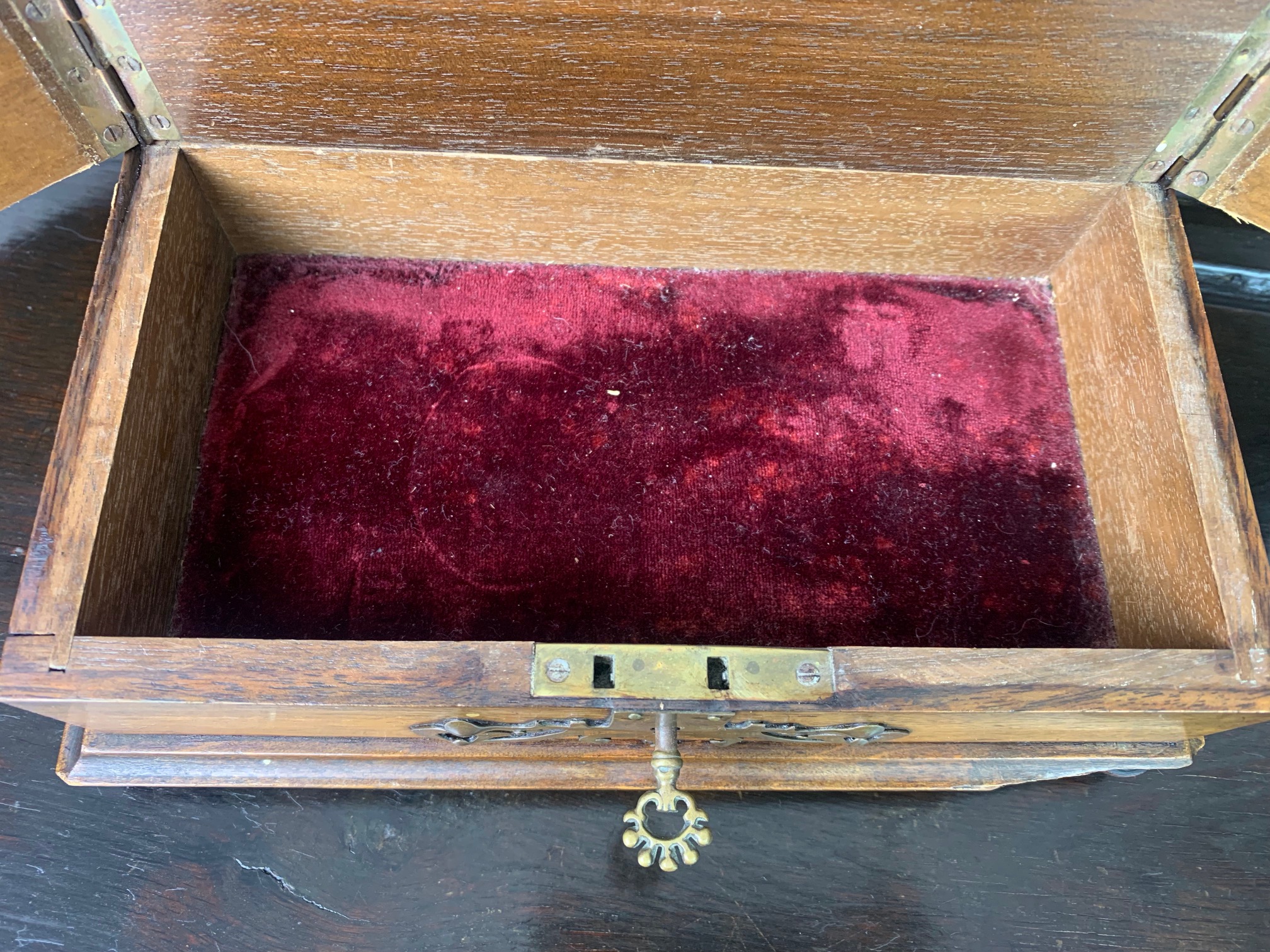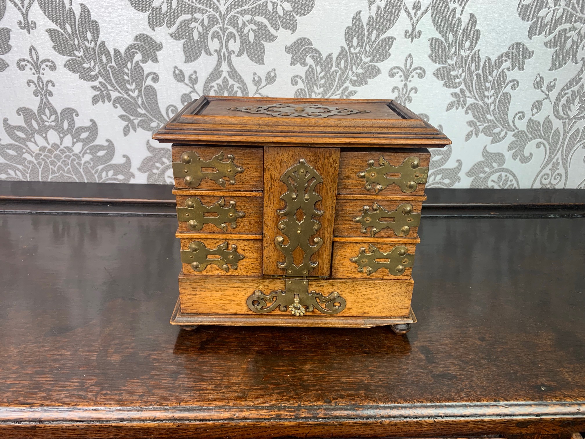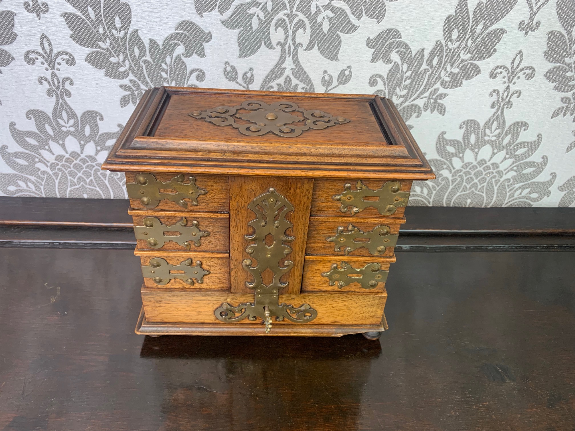 A fine quality walnut and brass banded jewellery casket