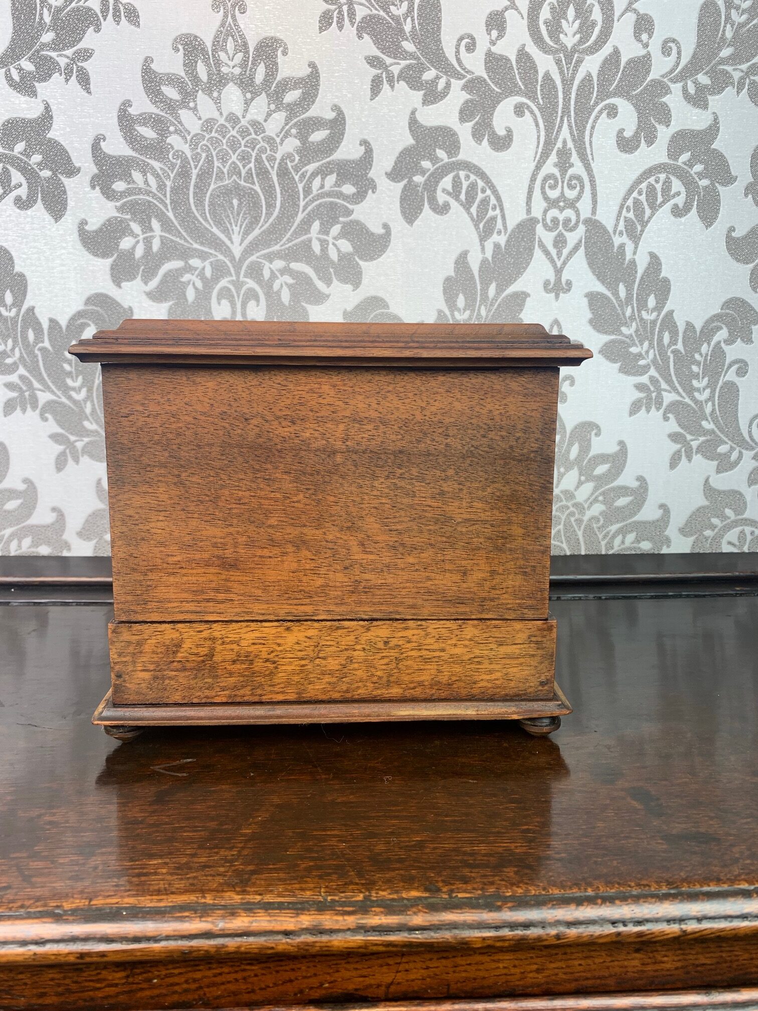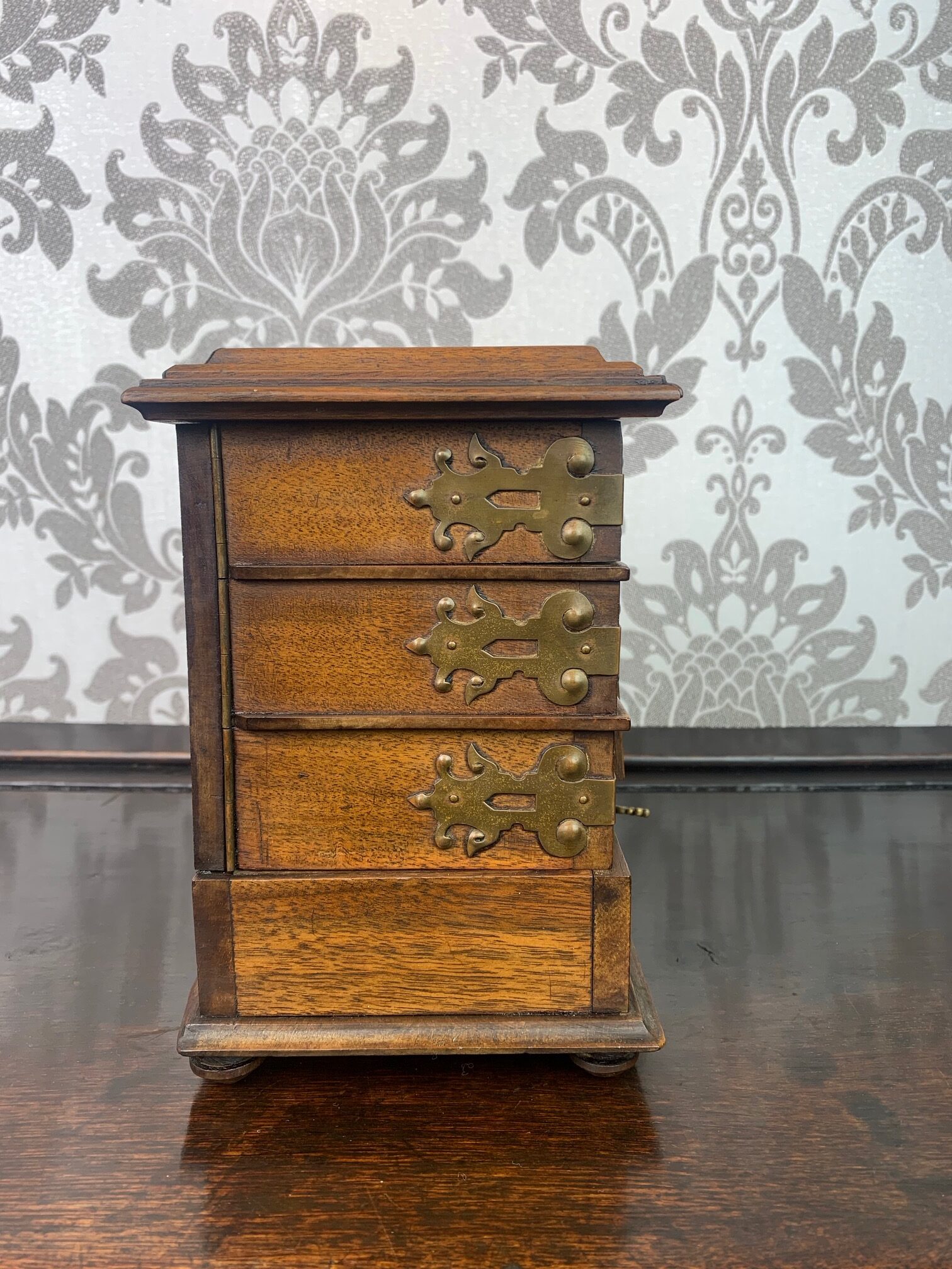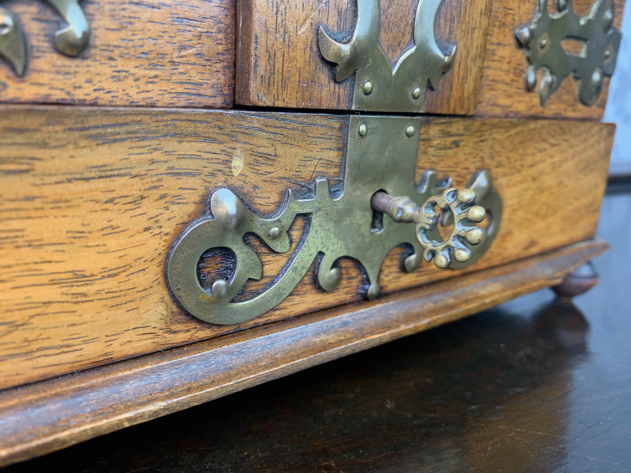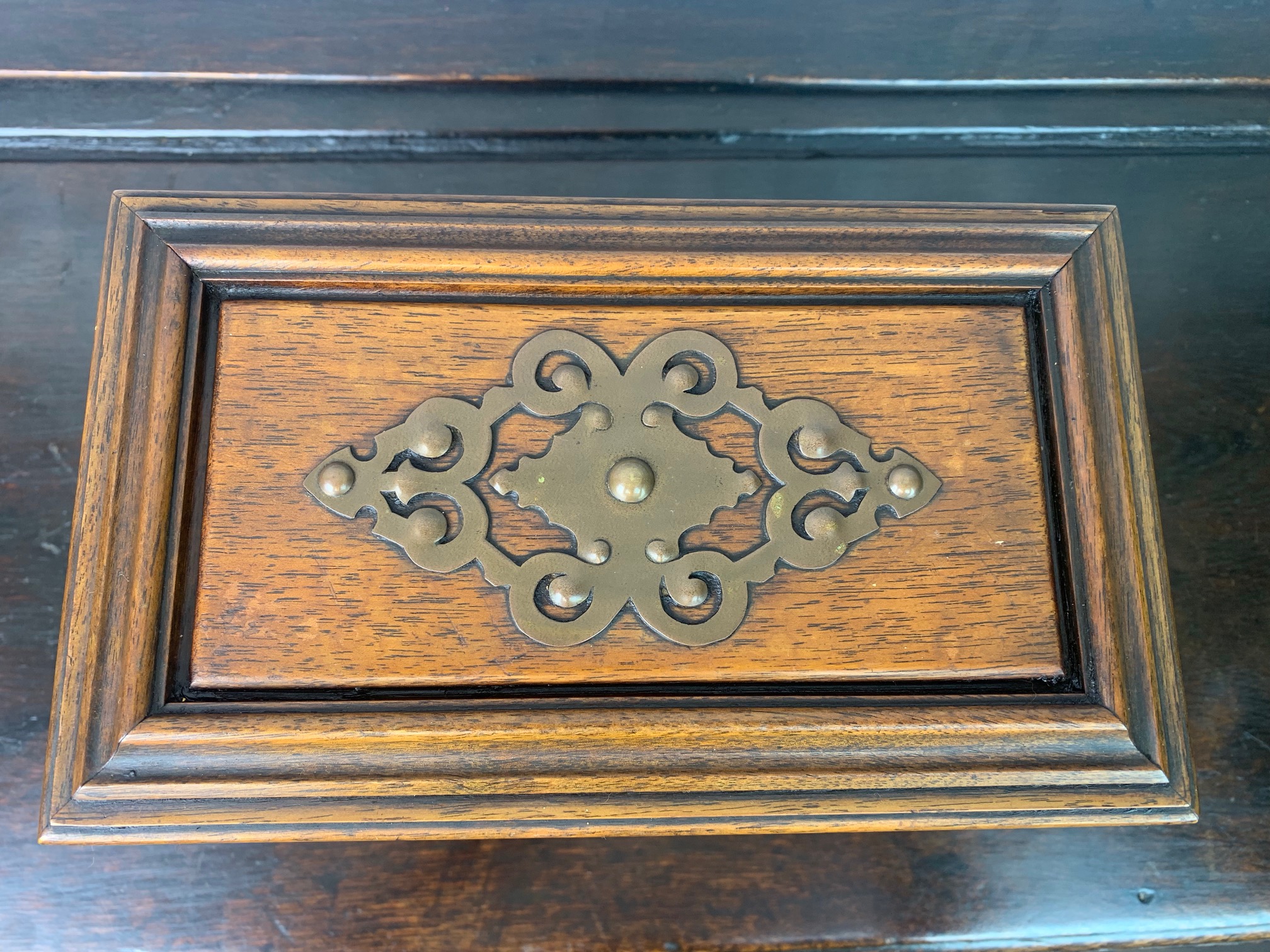 A fine quality walnut and brass banded jewellery casket