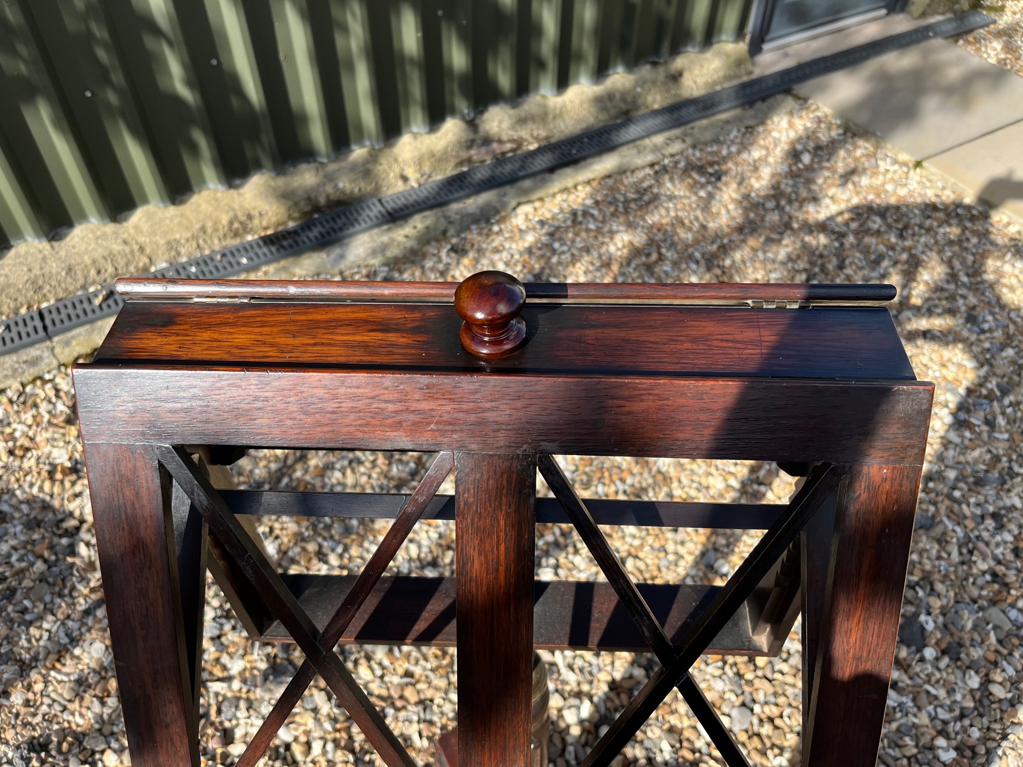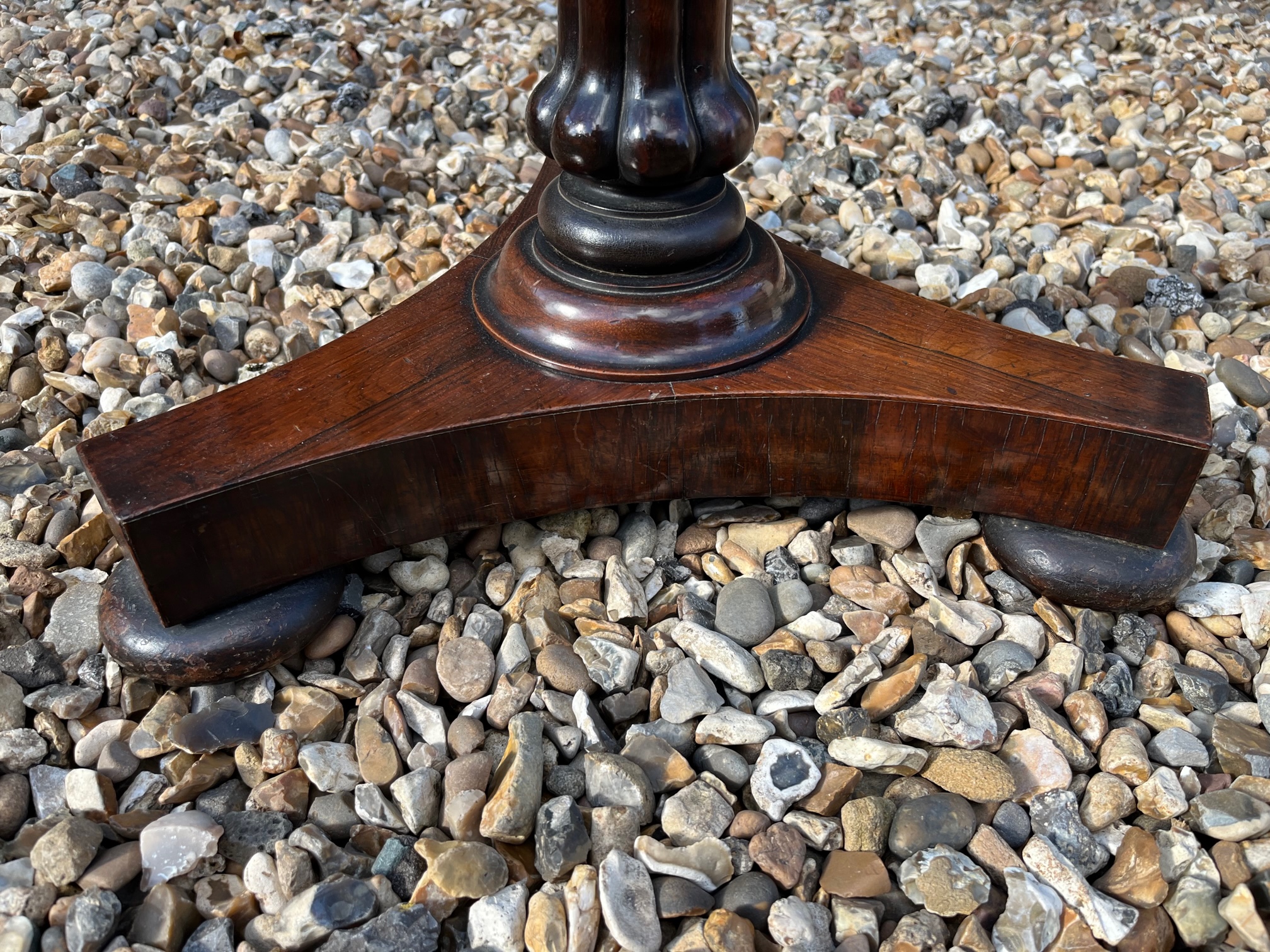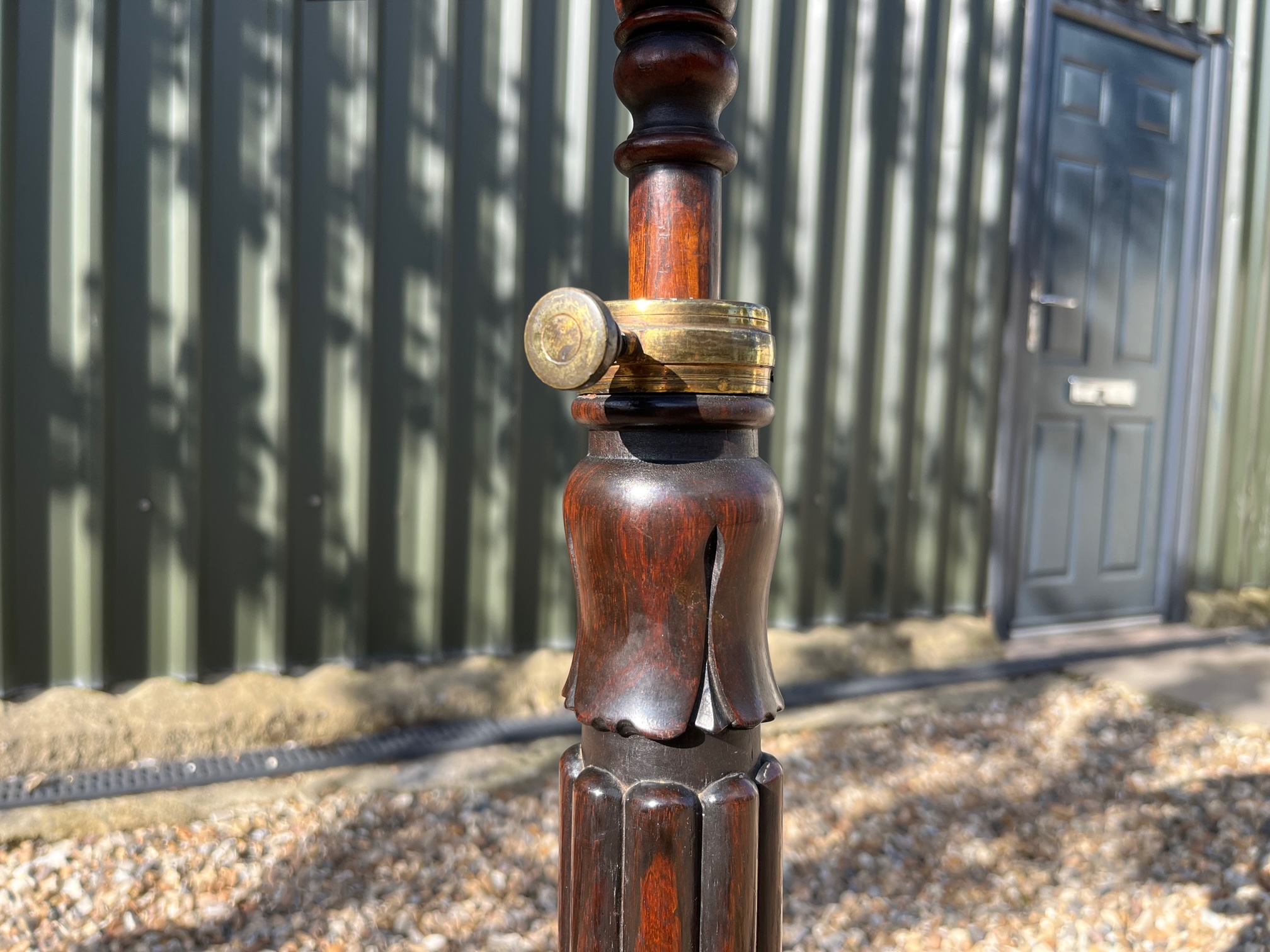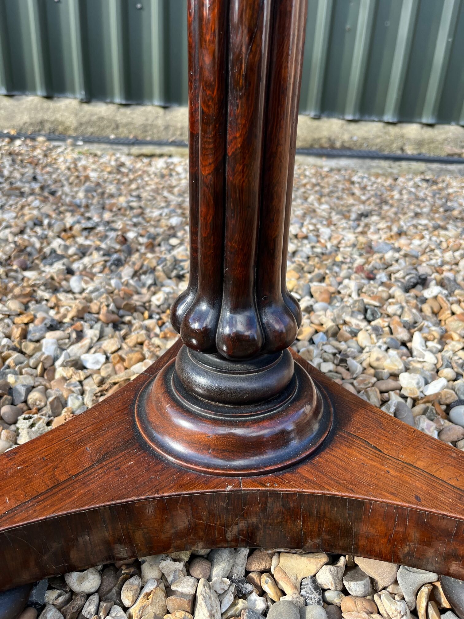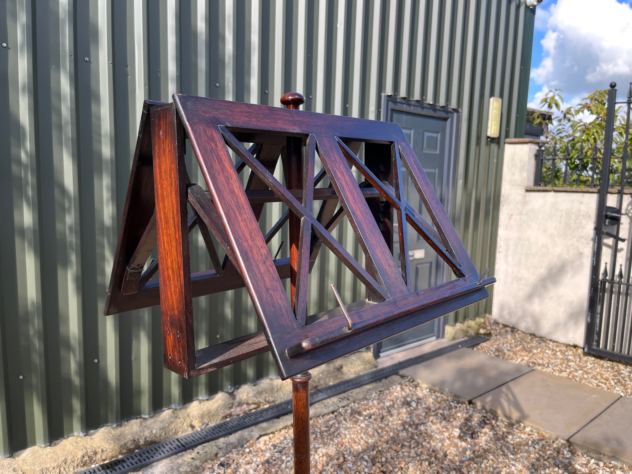 A fine quality William IV Period rosewood duet music stand. Constructed in the finest rosewood throughout and having twin adjustable ratcheted music stands which can be raised and lowered from the telescopic stem. The column support beautifully reeded and raised on a triform base with turned bun feet. English circa 1830-1840, in excellent condition.