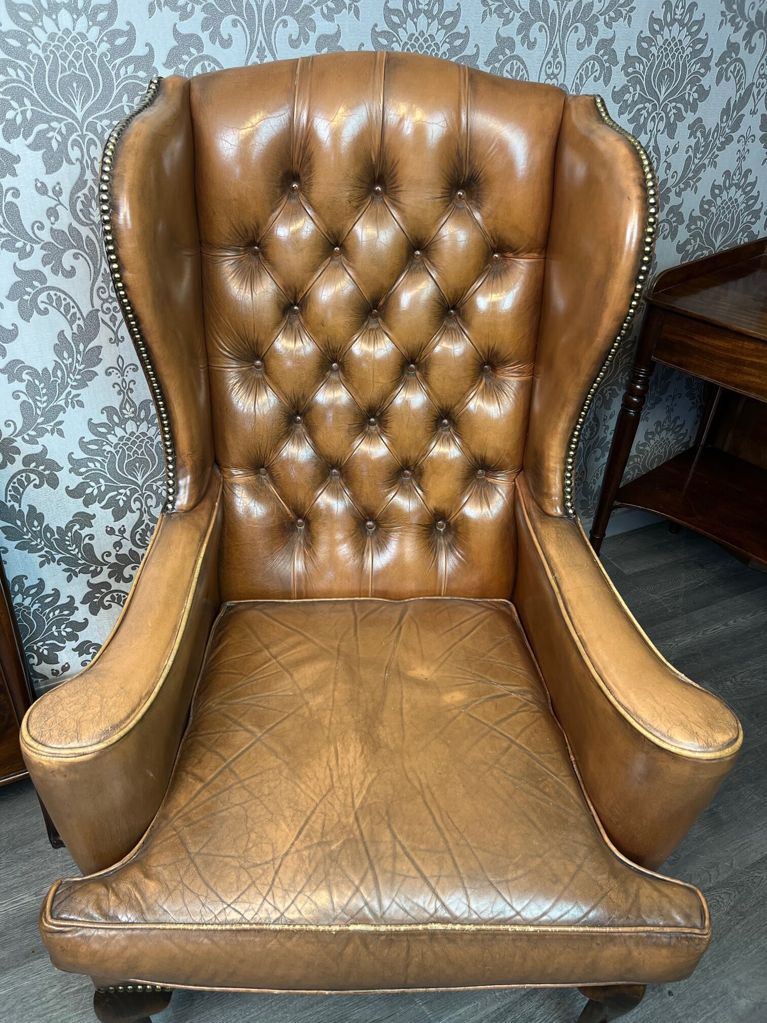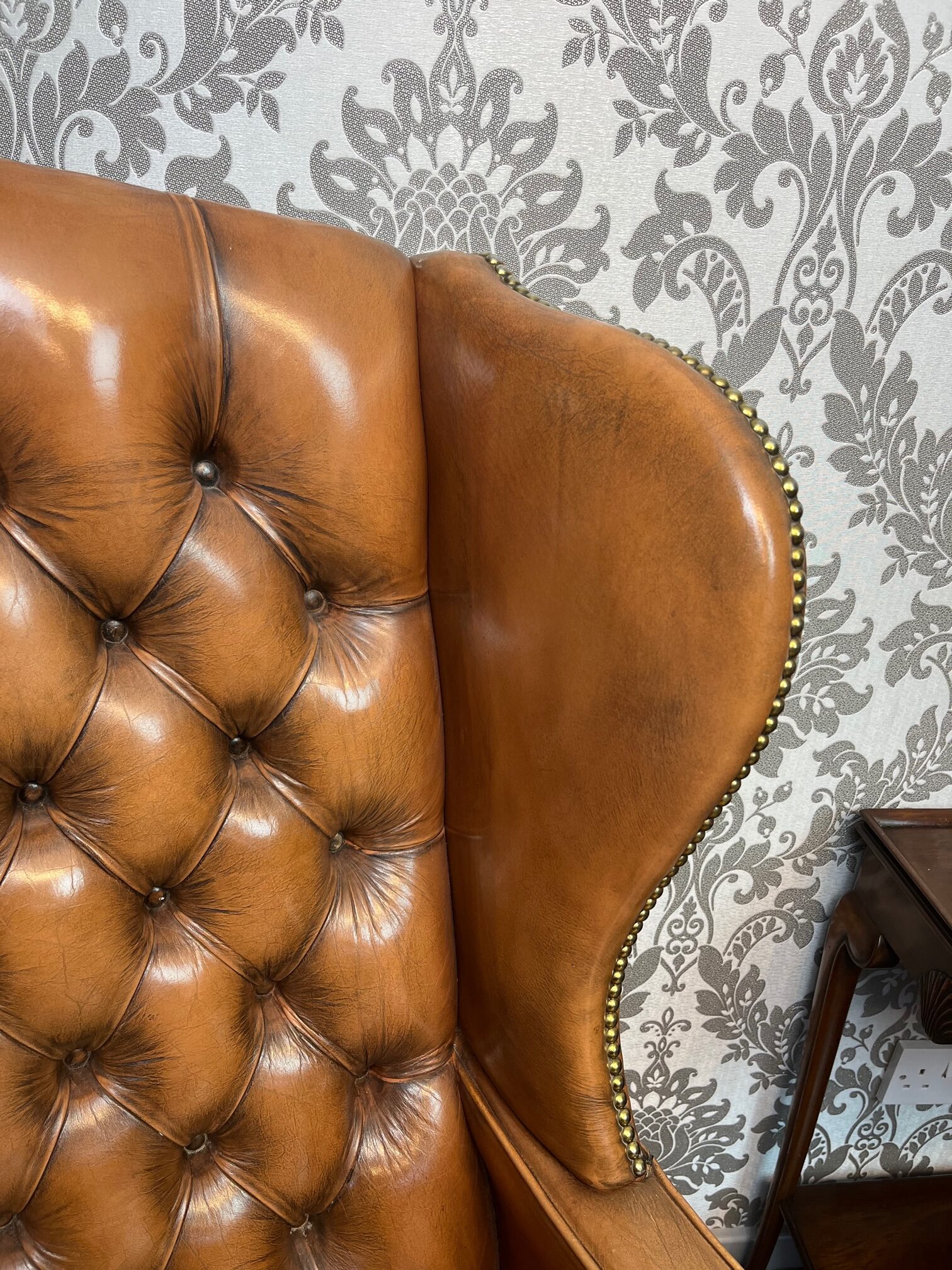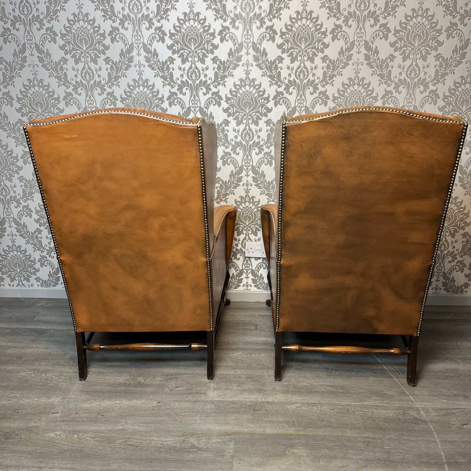 A good pair of Edwardian Period Georgian Style leather wing armchairs