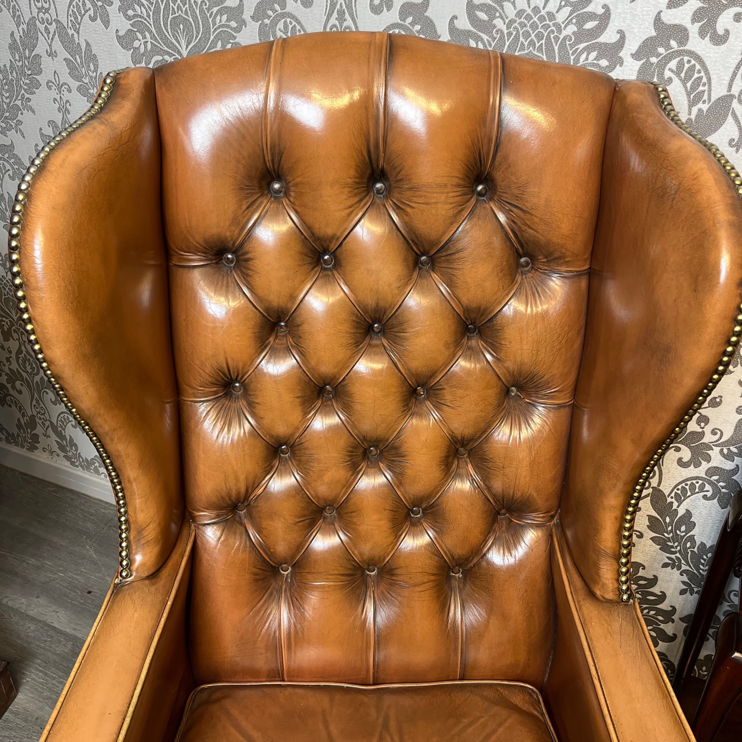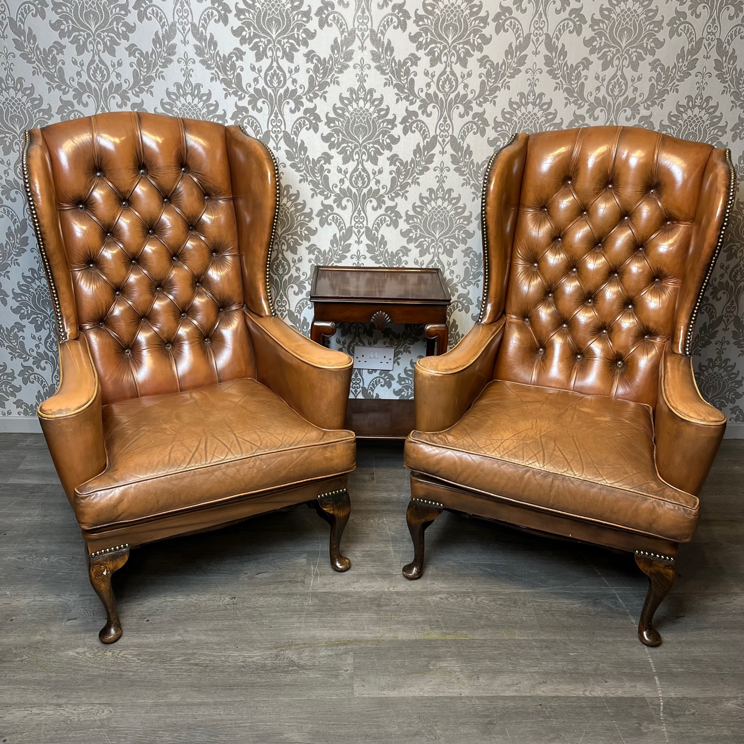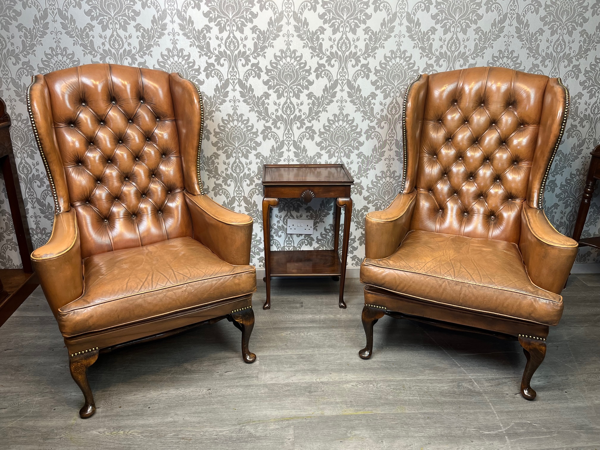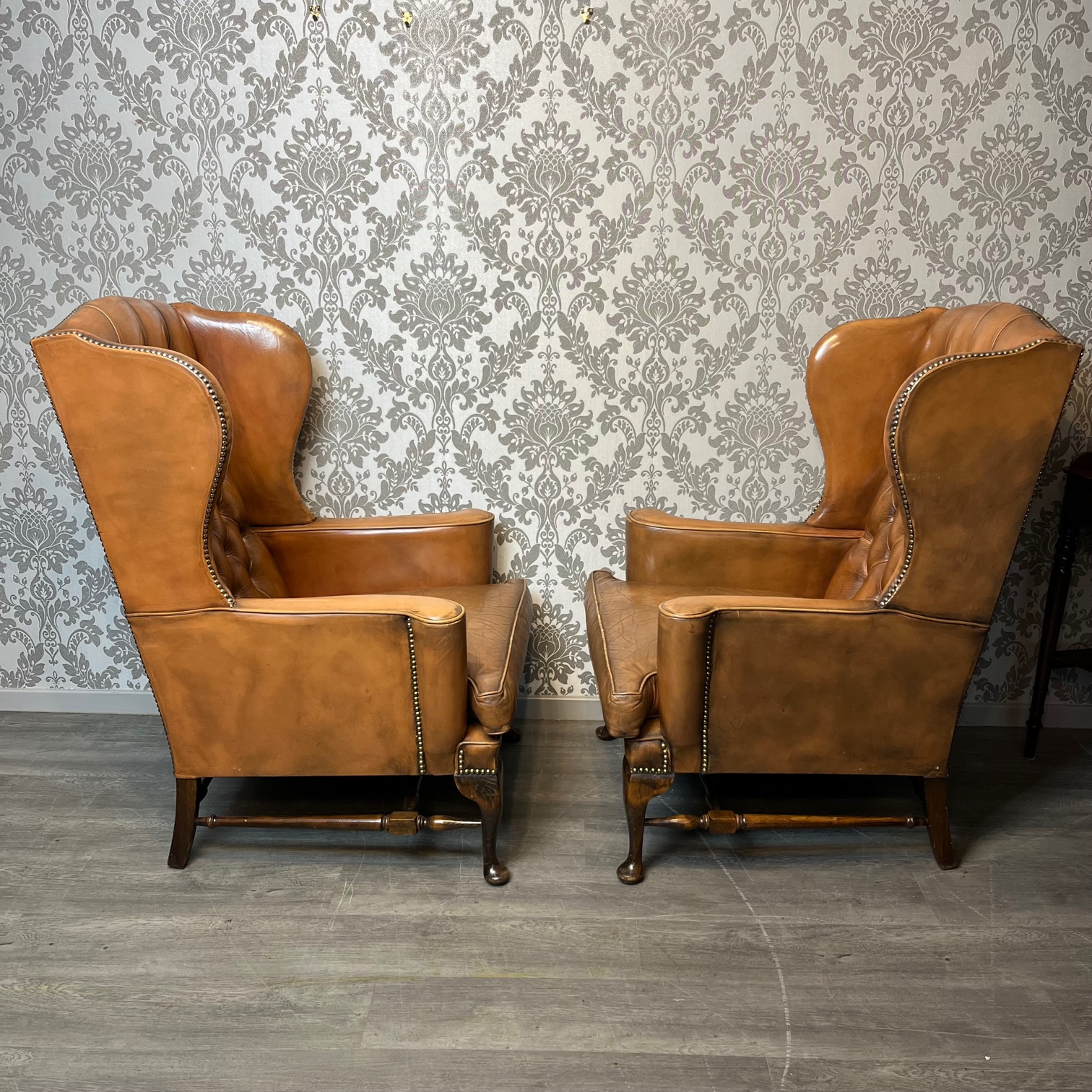A good pair of Edwardian Period Georgian Style leather wing armchairs