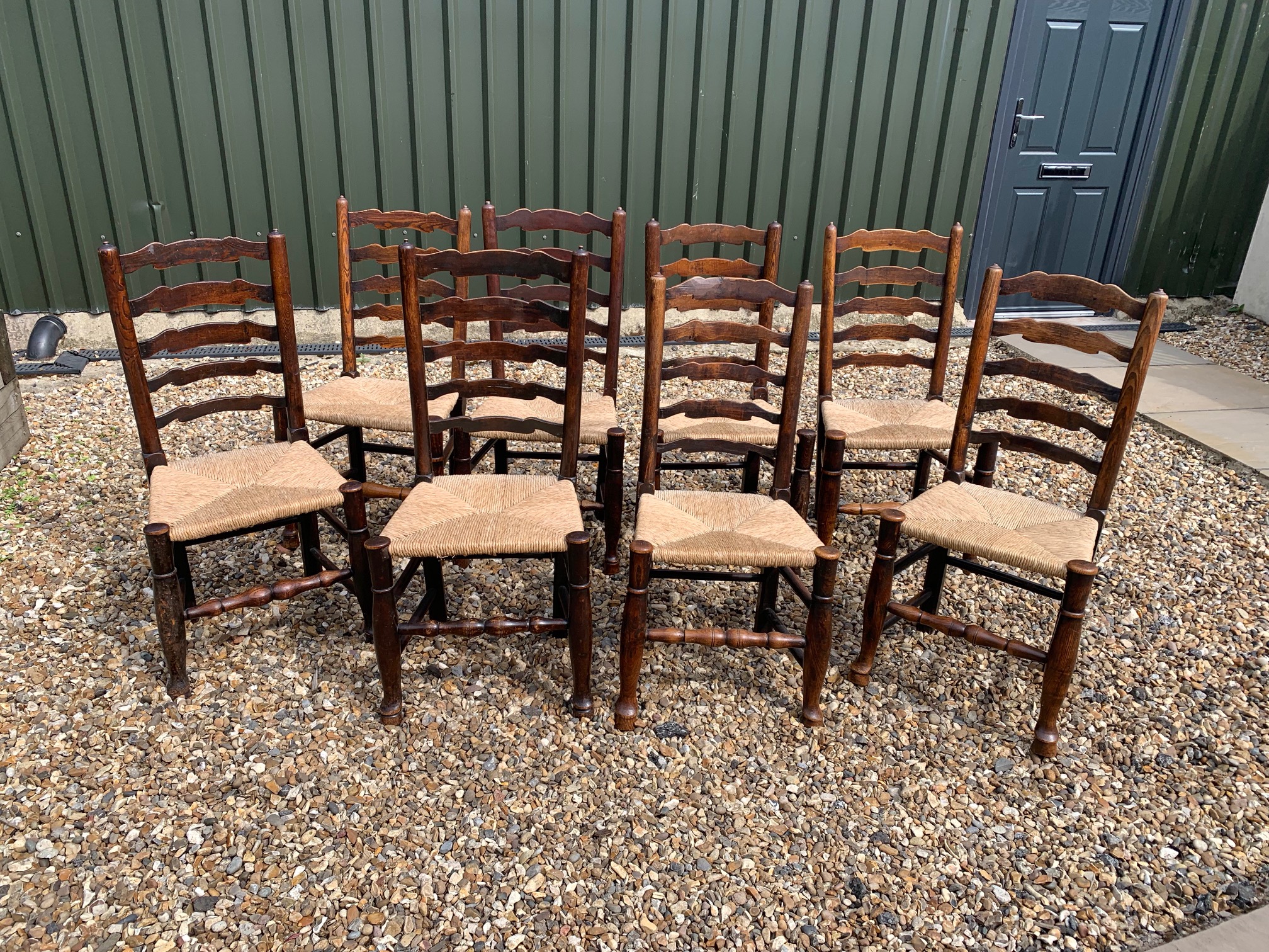 A good set of eight 19th Century ash and elm ladder back dining chairs