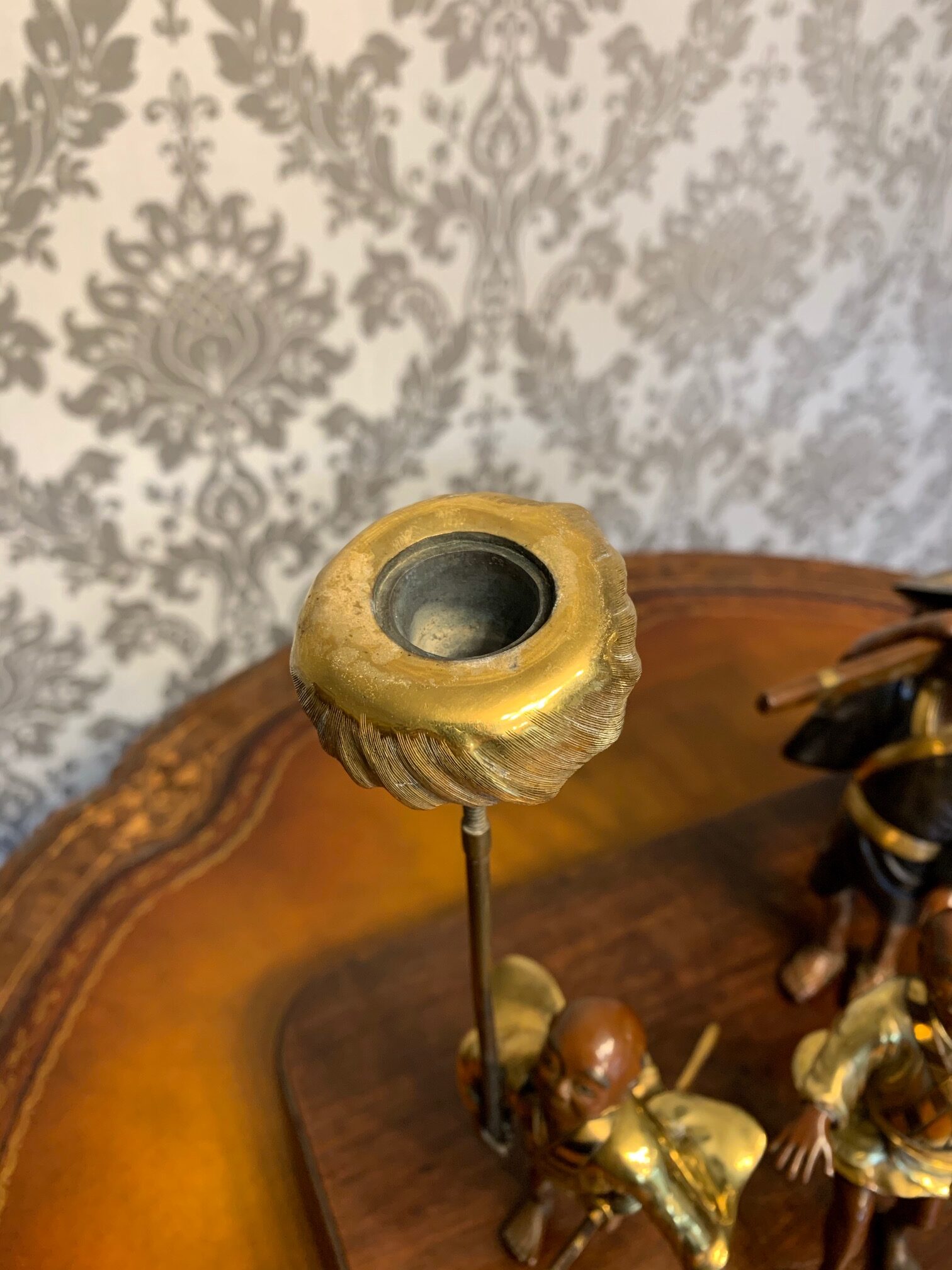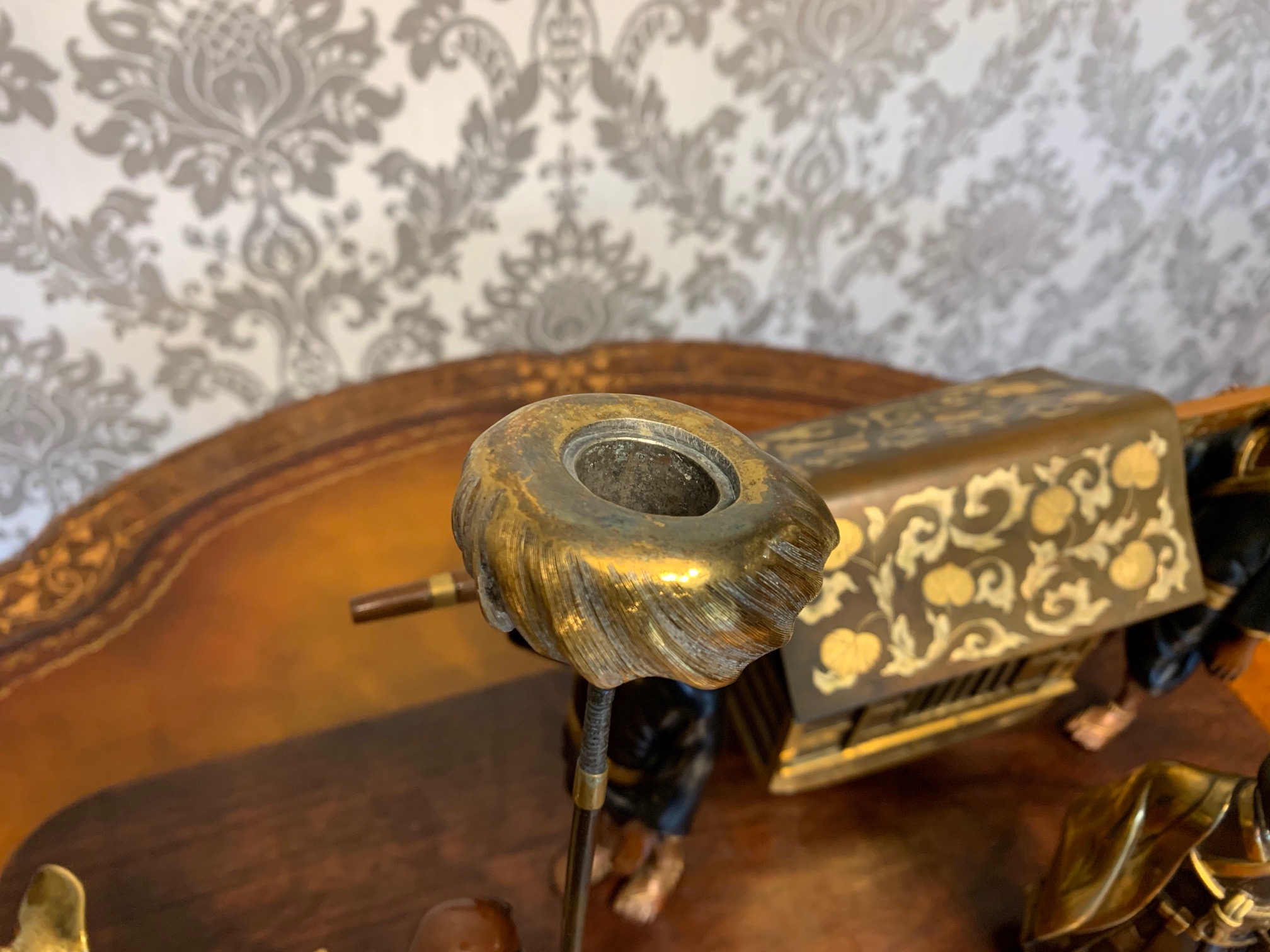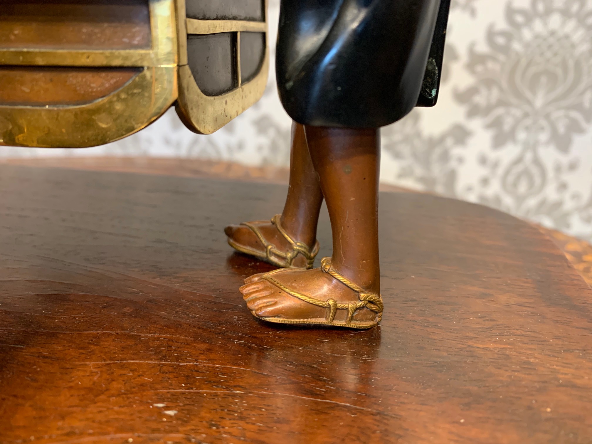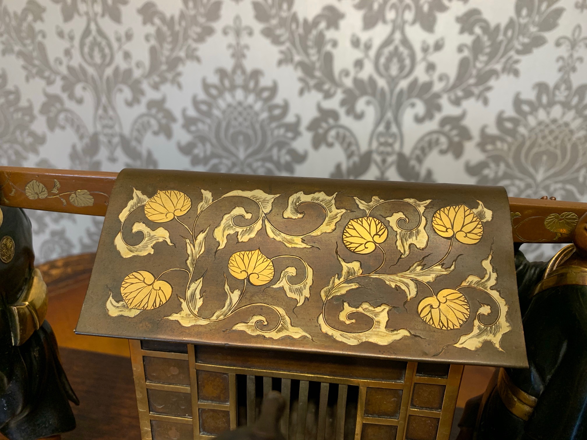 CompareA Japanese Meiji period bronze, gold and shakudo inlaid group. A fine quality Japanese bronze group depicting a procession carrying a palanquin probably made by Miyao. The group raised on the original Japanese hardwood stand. Japanese Meiji period circa 1880. In excellent original condition, colour and patination