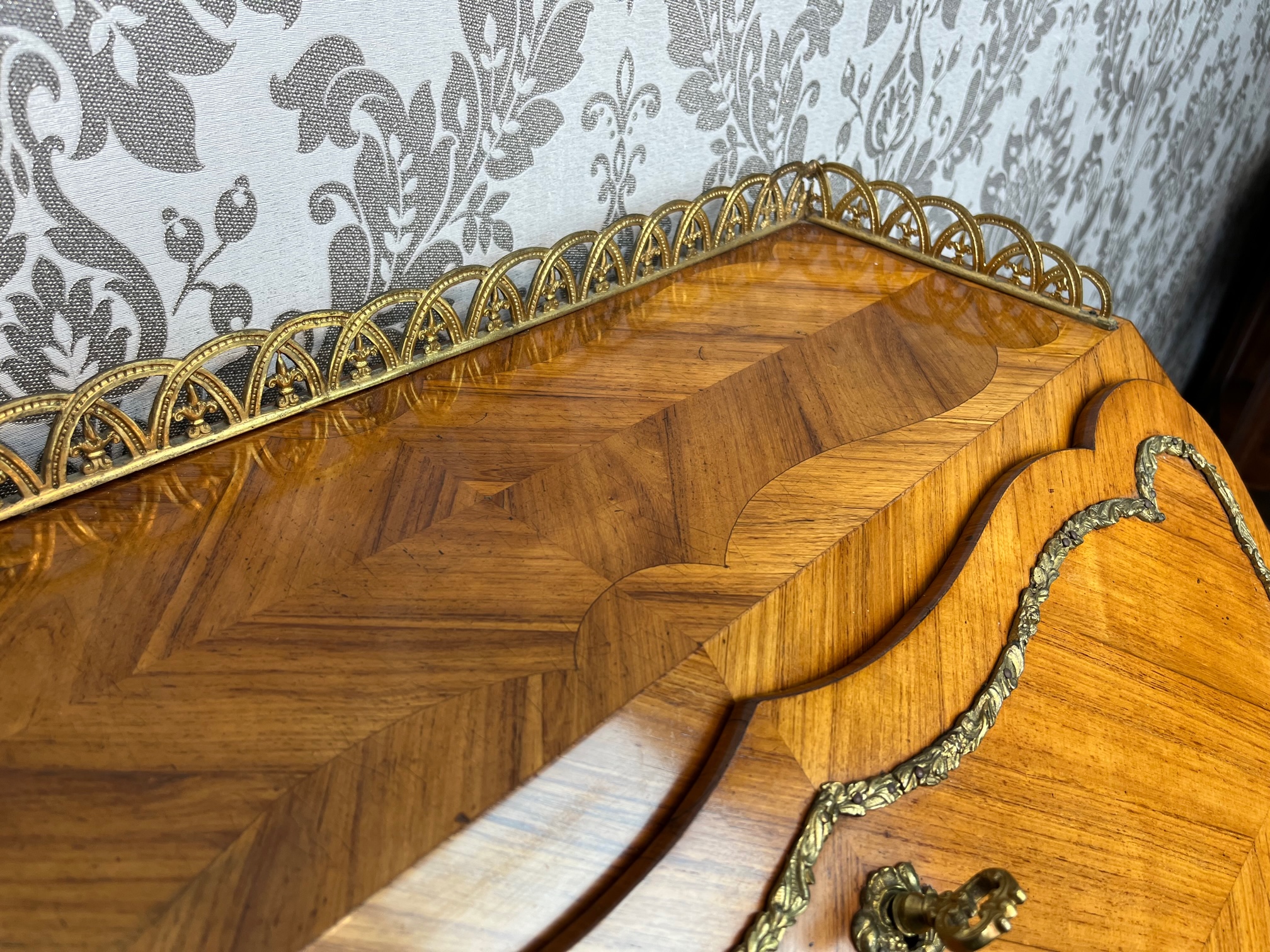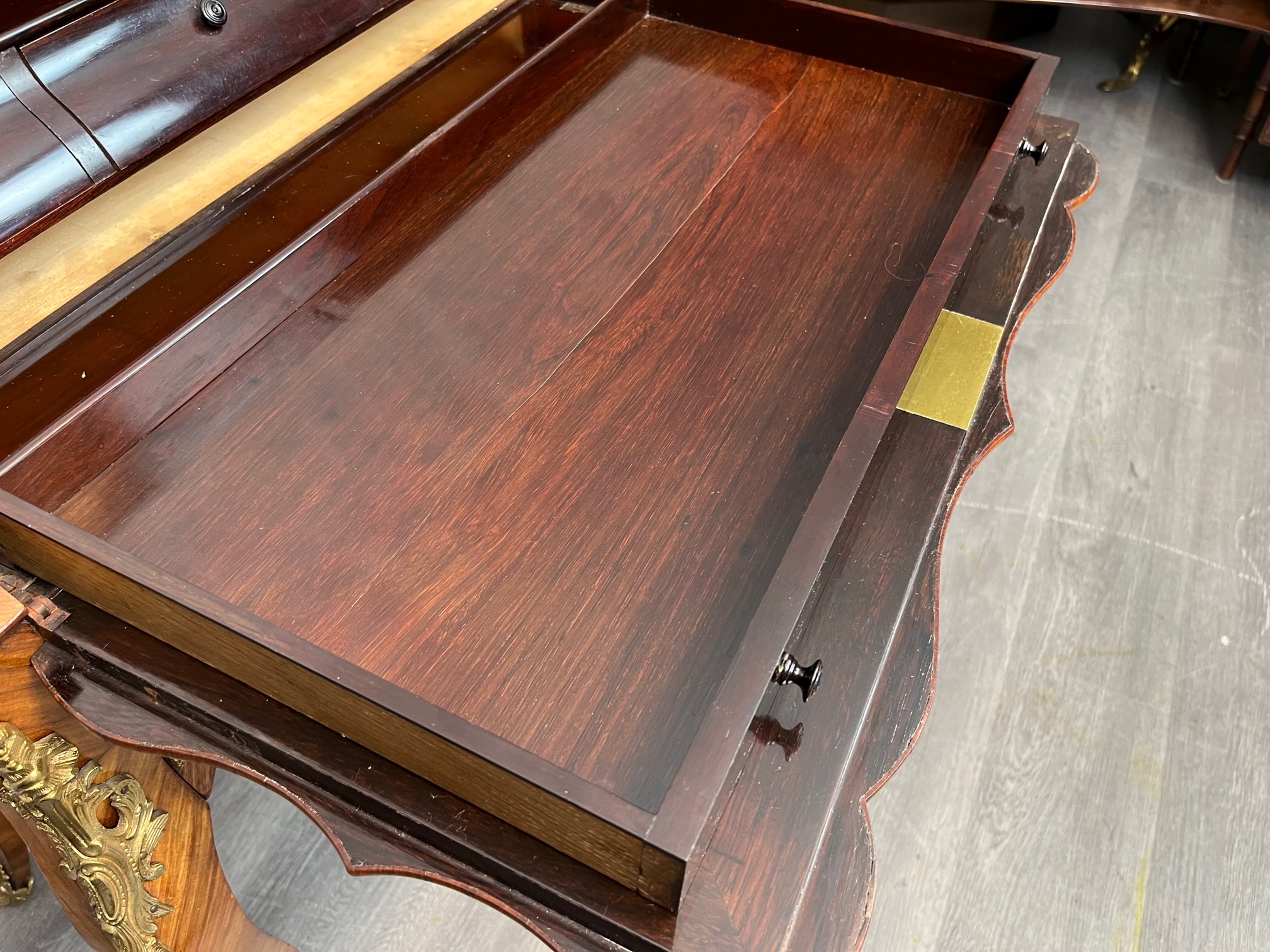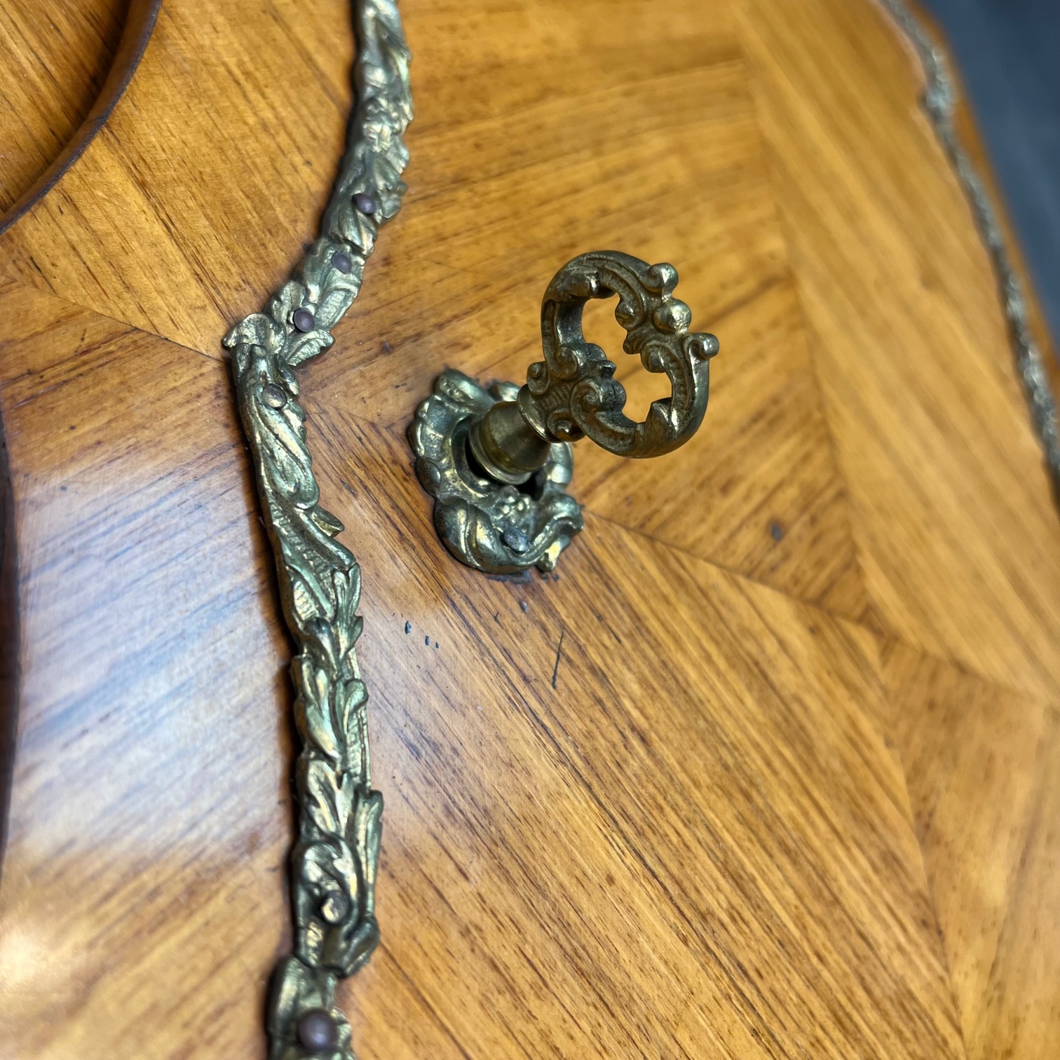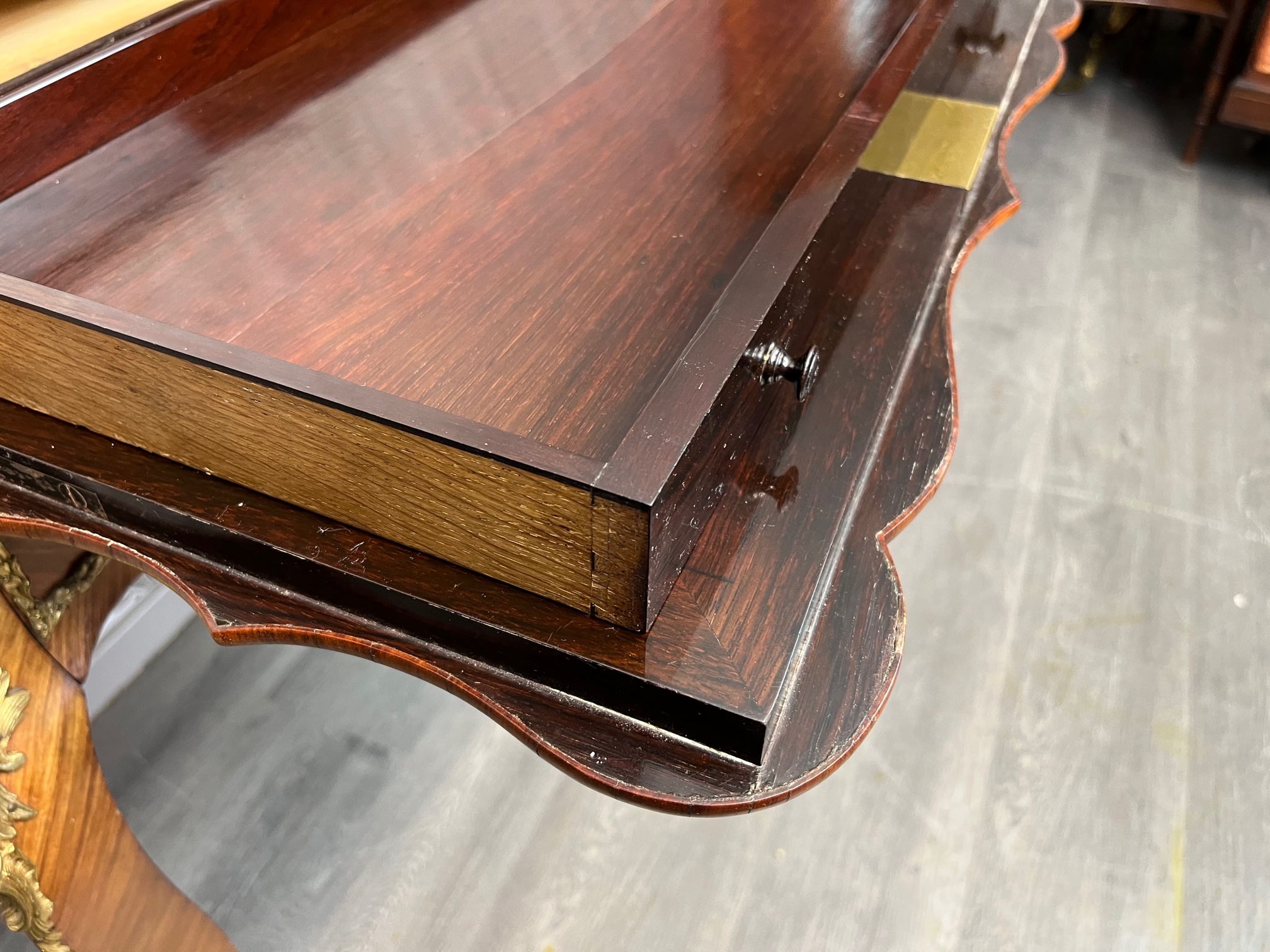 CompareA Late 19th Century French Kingwood bureau de dame. Having a raised brass gallery with a fall front opening to reveal a mahogany lined interior with drawers and writing surface. Raised on cabriole legs with fine quality ormolu mounts throughout and veneered in the finest kingwood. French circa 1890-1900 in superb original condition, a wonderful colour and patination