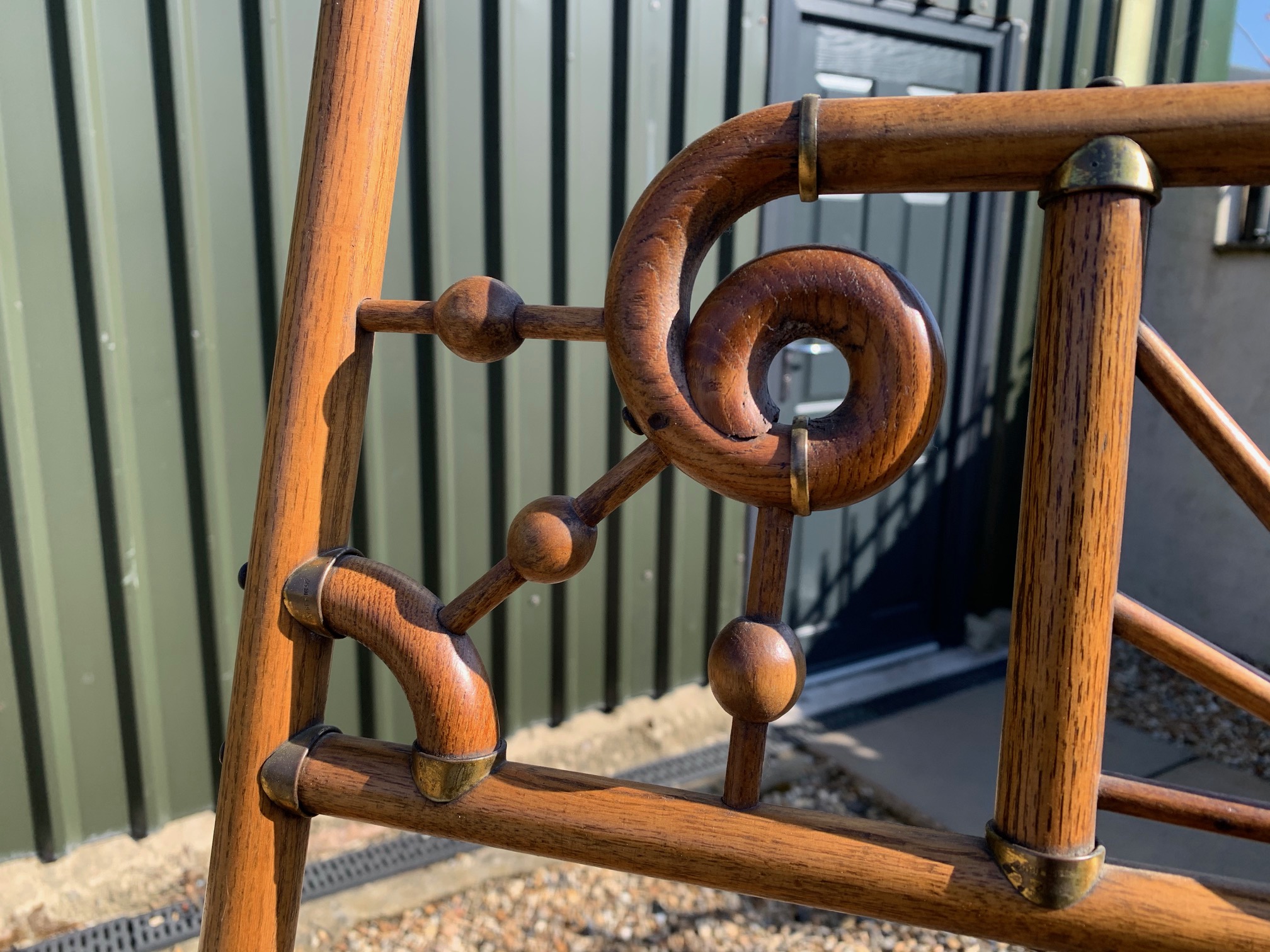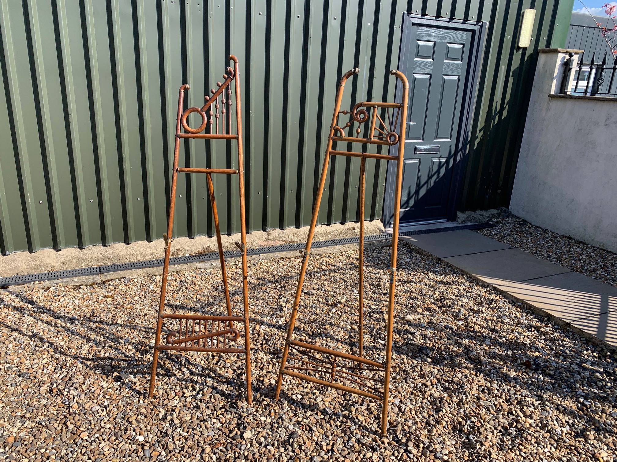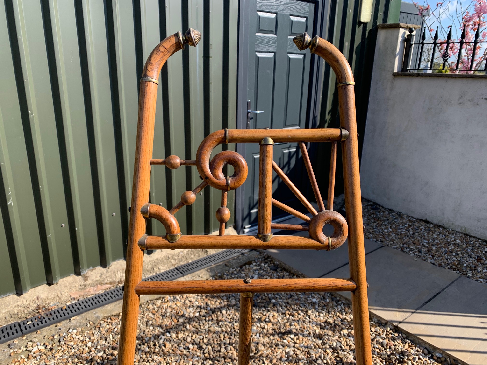 CompareA rare matched pair of Victorian Period Aesthetic easels, each made from ash with faux bamboo detail in the aesthetic taste with brass mounts stamped patent Dec 1891. In stunning original condition, one replaced brass mount. English circa 1891