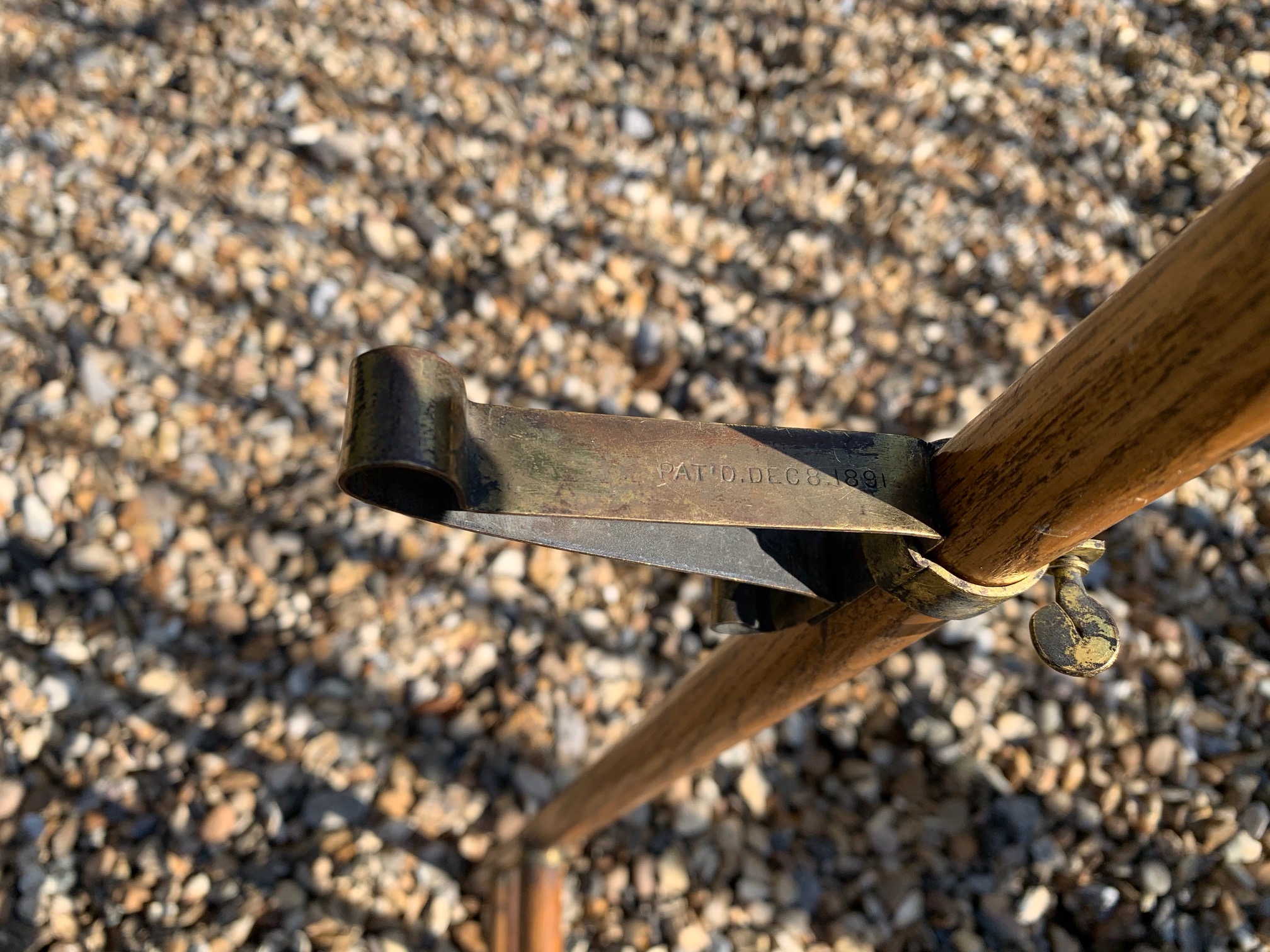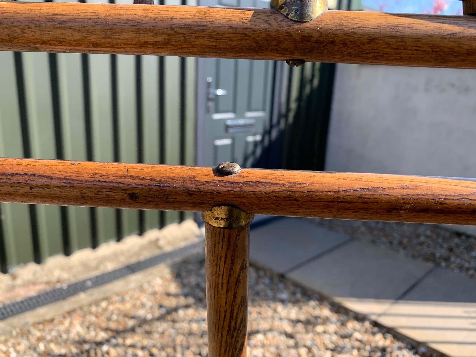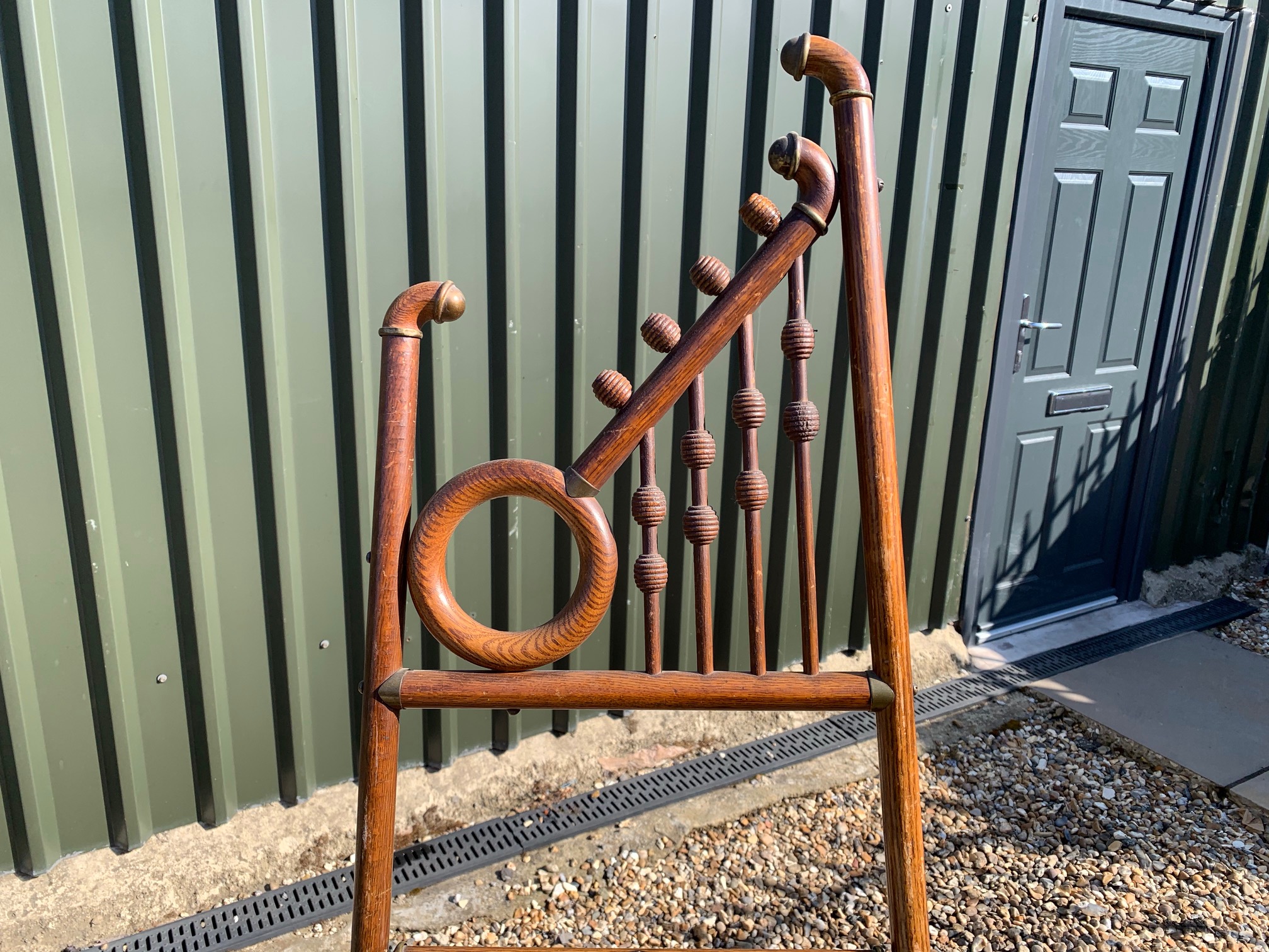 CompareA rare matched pair of Victorian Period Aesthetic easels, each made from ash with faux bamboo detail in the aesthetic taste with brass mounts stamped patent Dec 1891. In stunning original condition, one replaced brass mount. English circa 1891