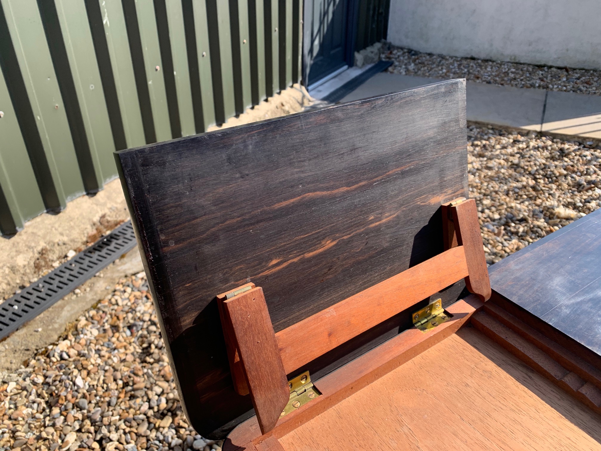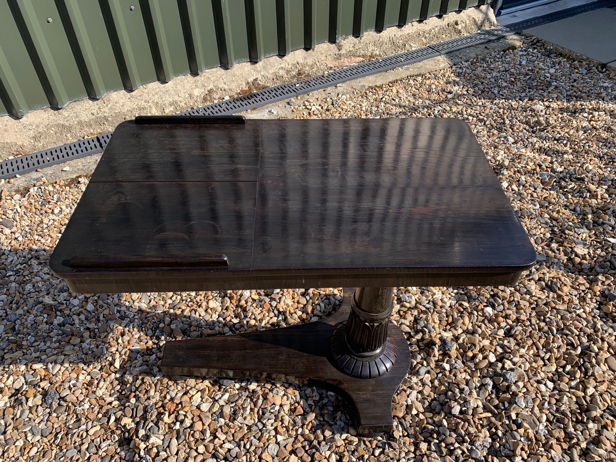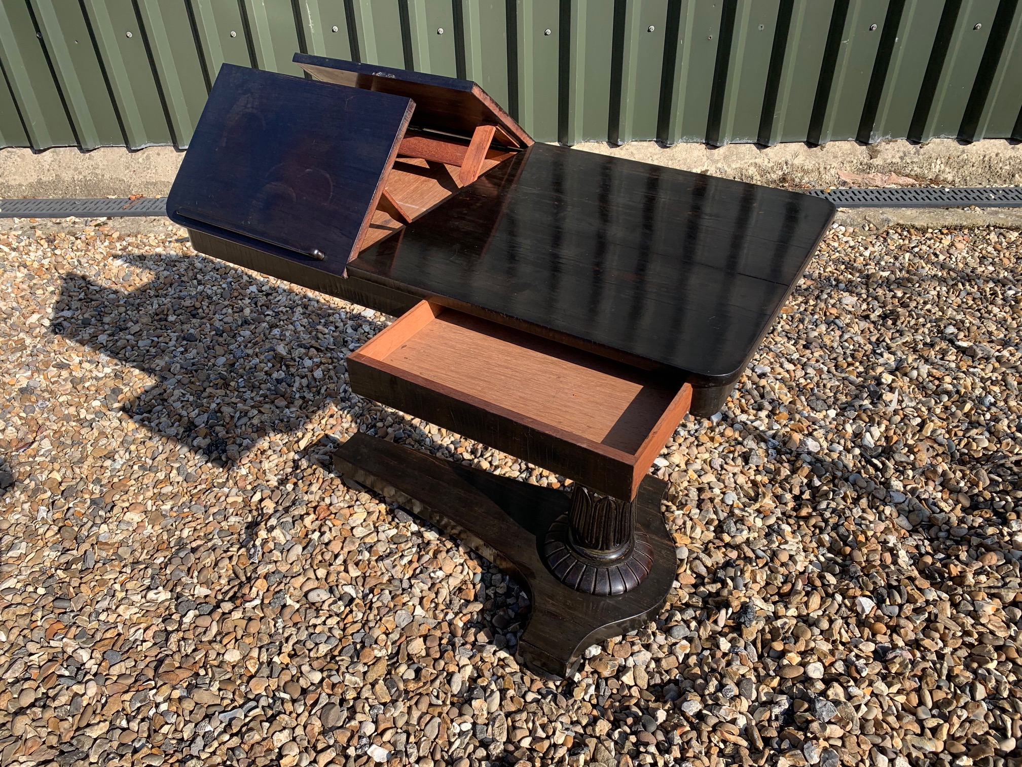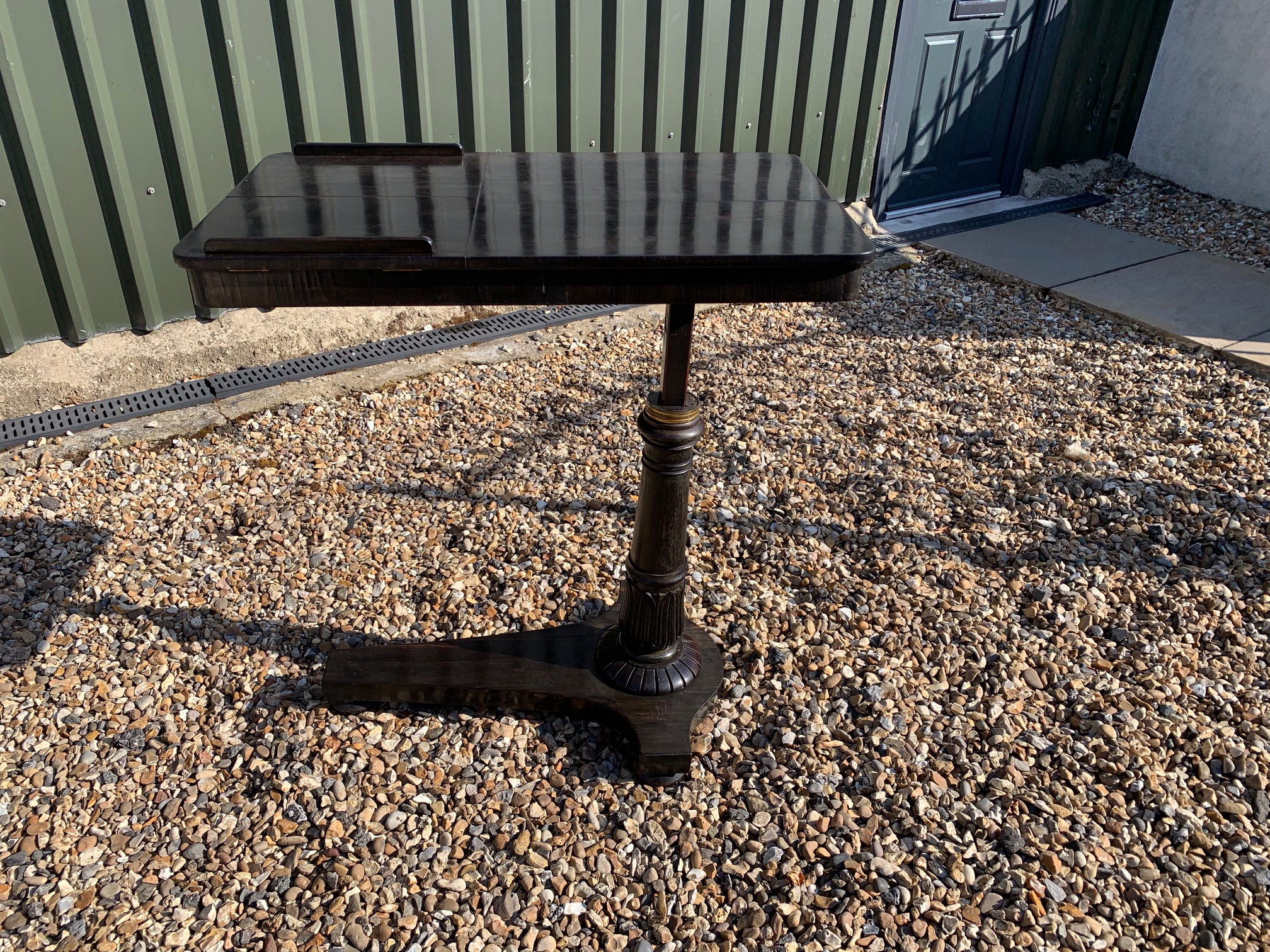 CompareA rare William IV Period ebony Adjustable reading table. The rectangular top in solid ebony and having a concealed drawer and opposing adjustable reading slopes. The rise and fall top giving a variety of positions. English circa 1830-1840 in superb original condition