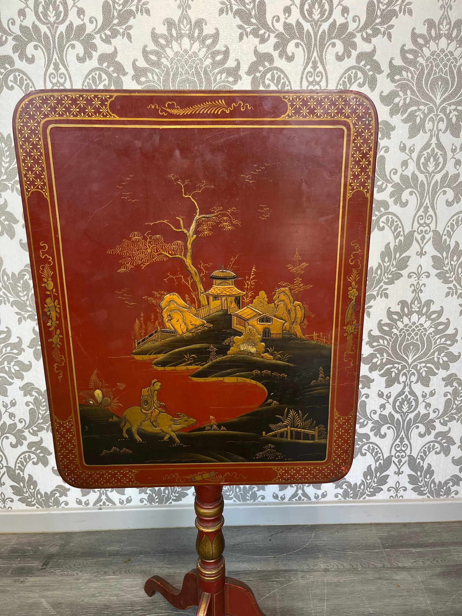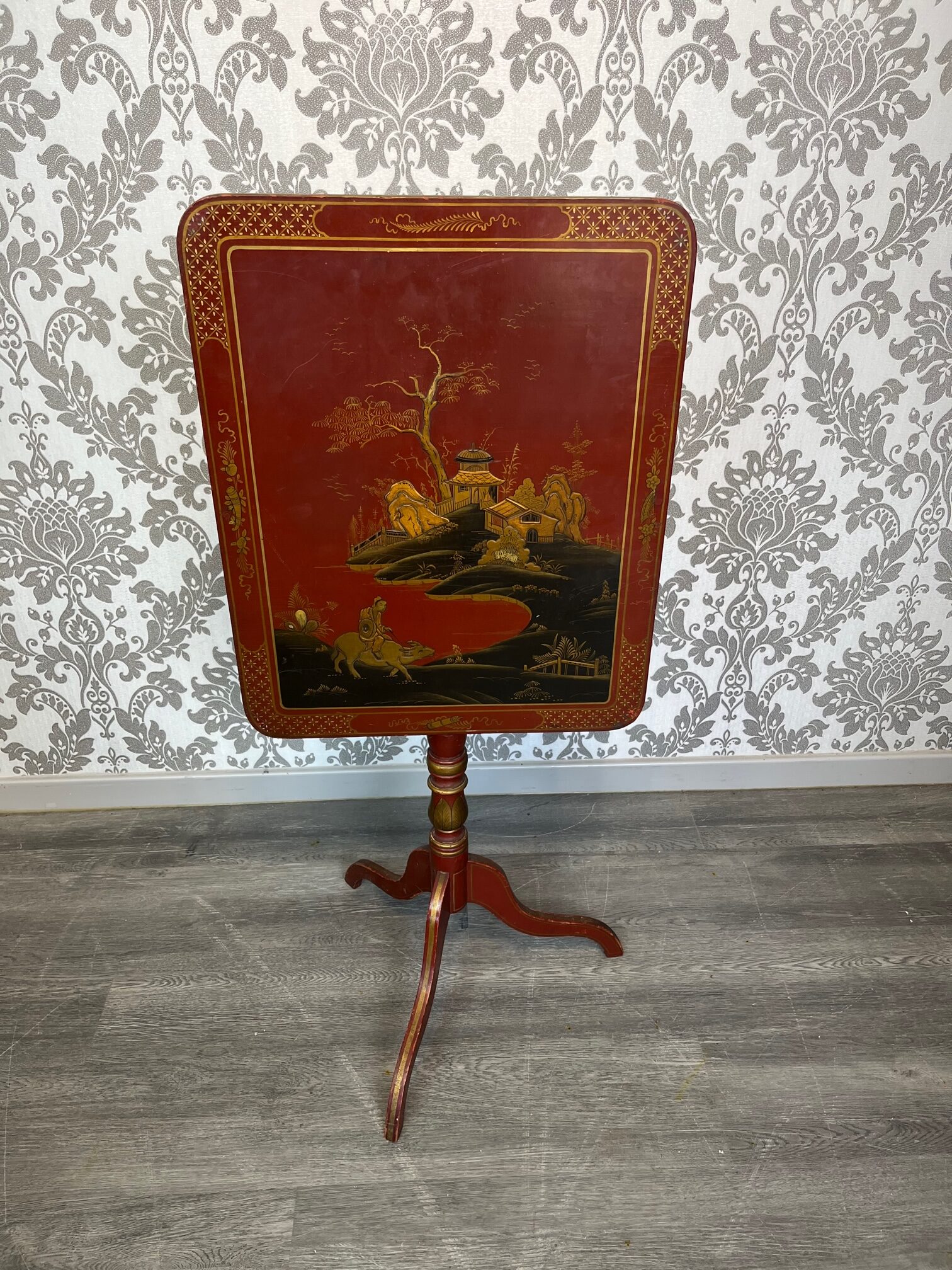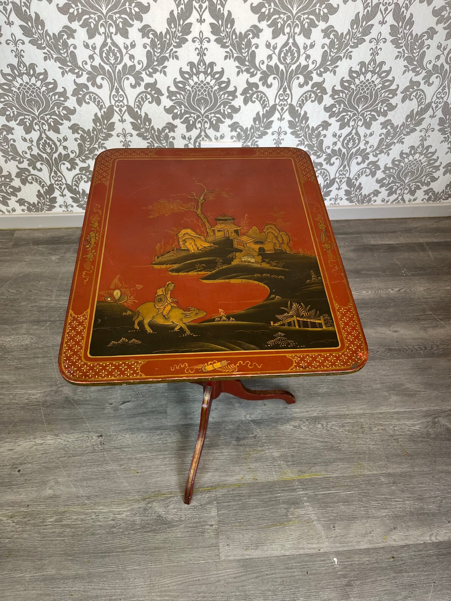 A Regency Style chinoiserie tripod table.