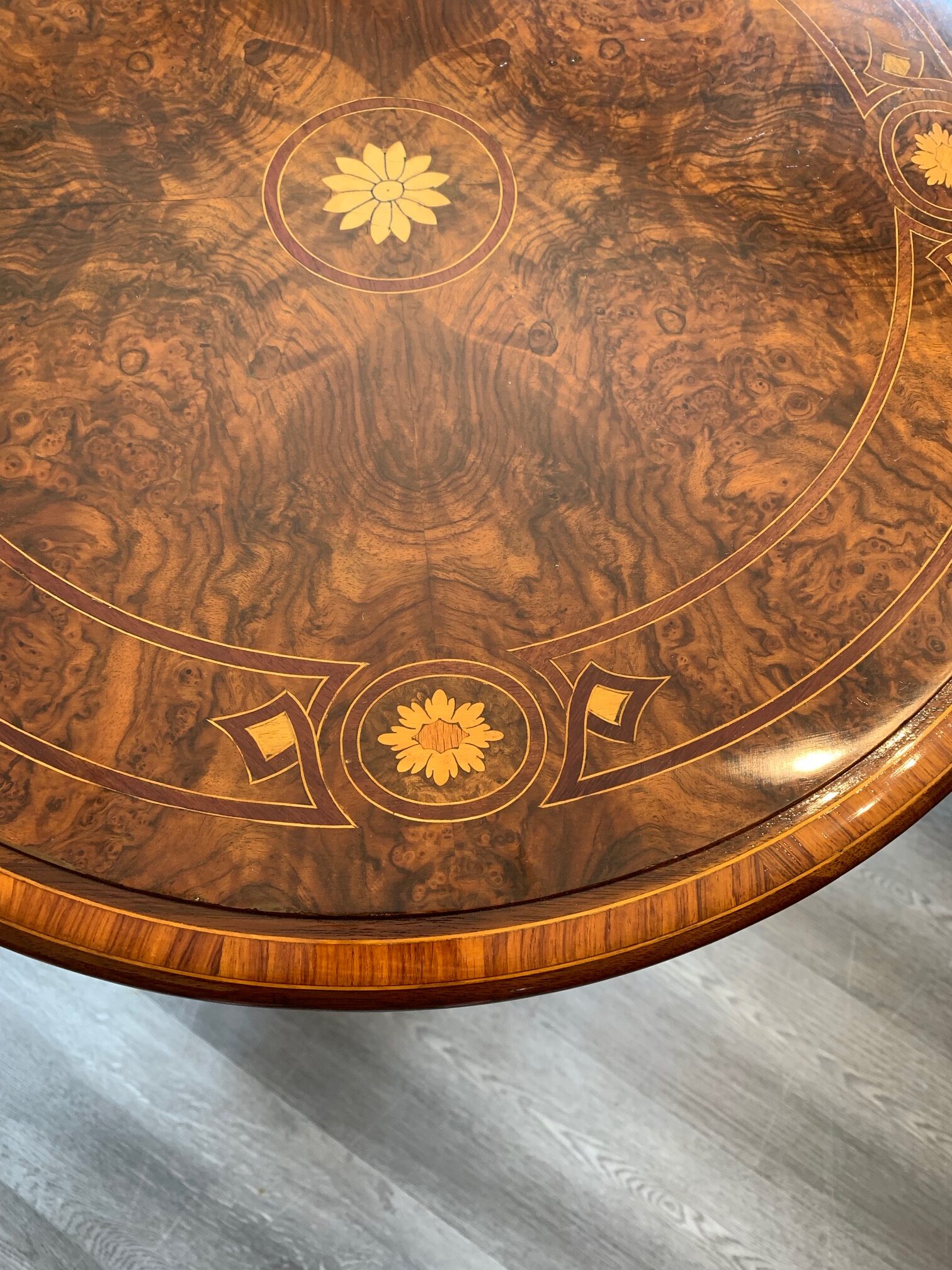 A superb quality Victorian Period burr walnut and marquetry inlaid antique wine table