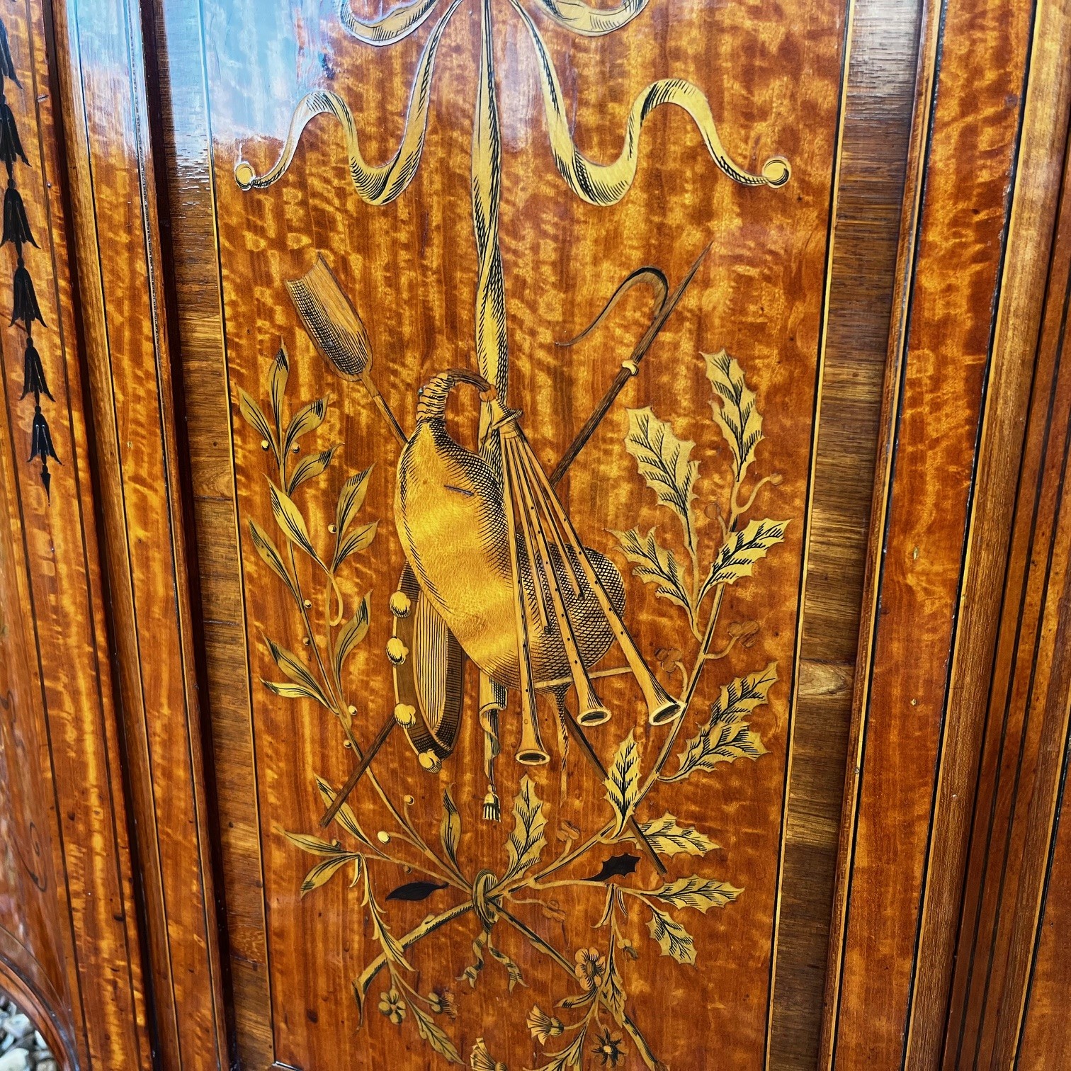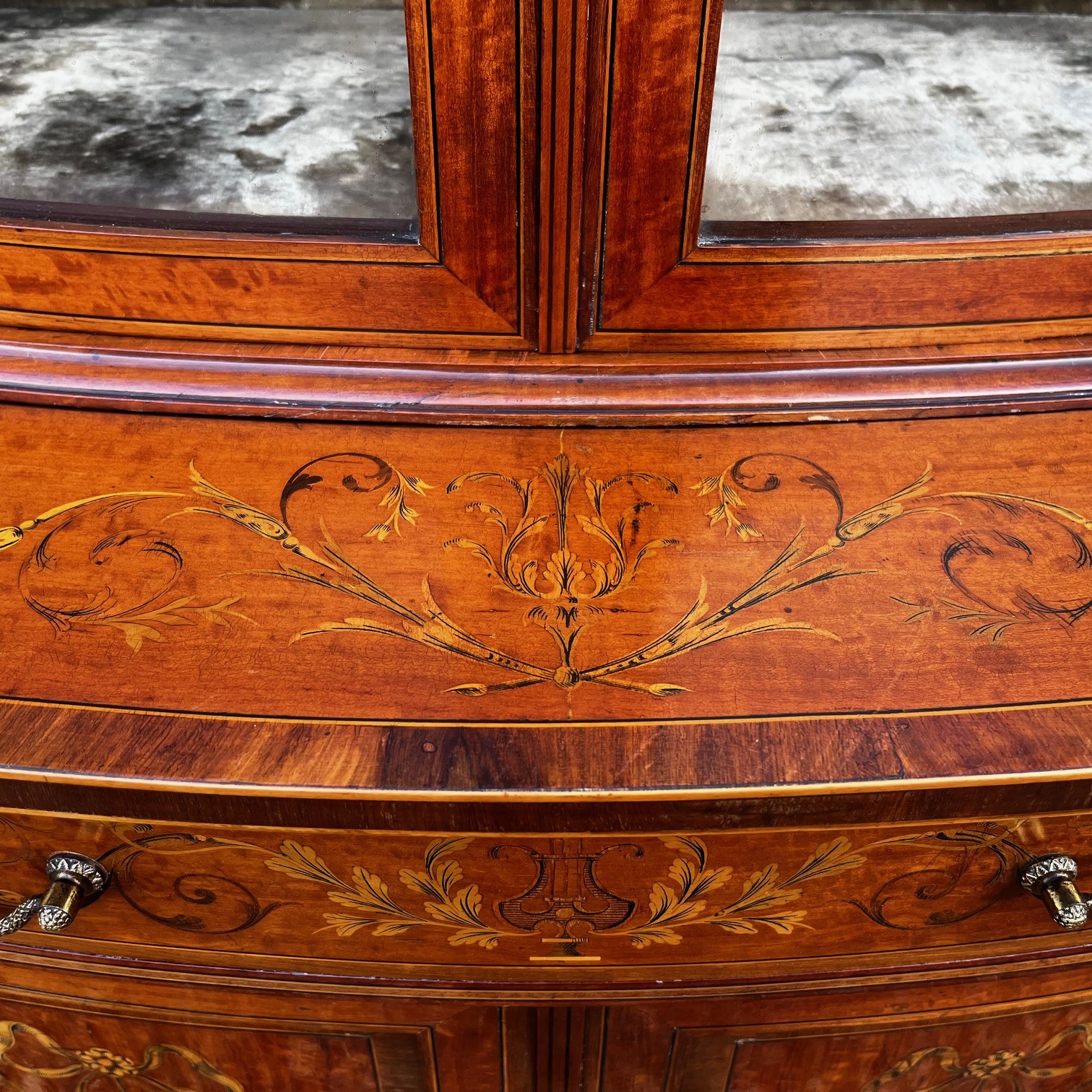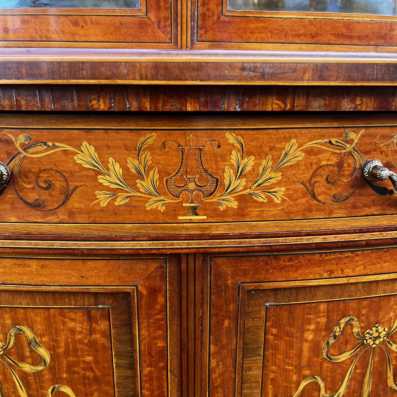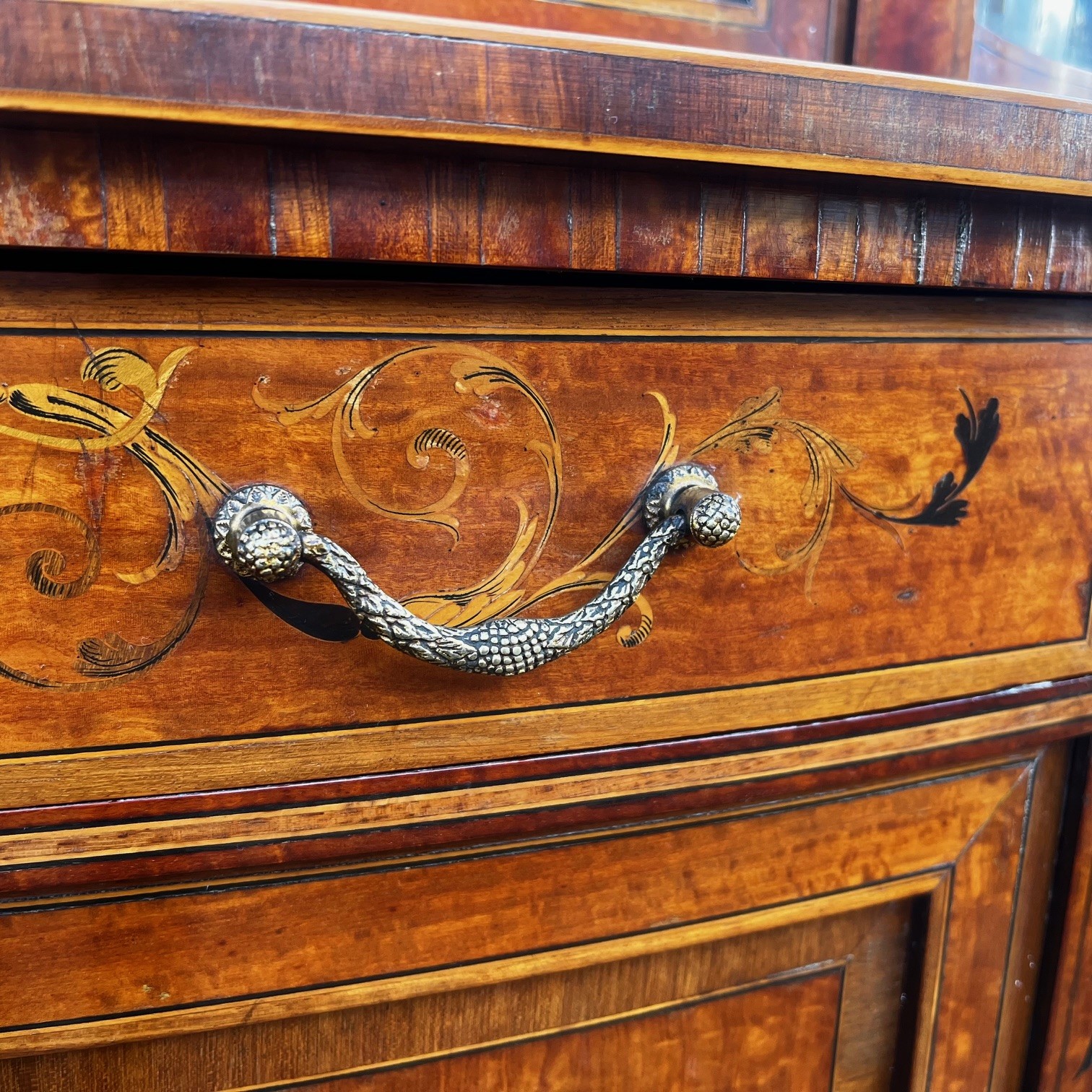 A Superior Quality Edwards & Roberts Of London 19th Century Satinwood Inlaid Serpentine Cabinet