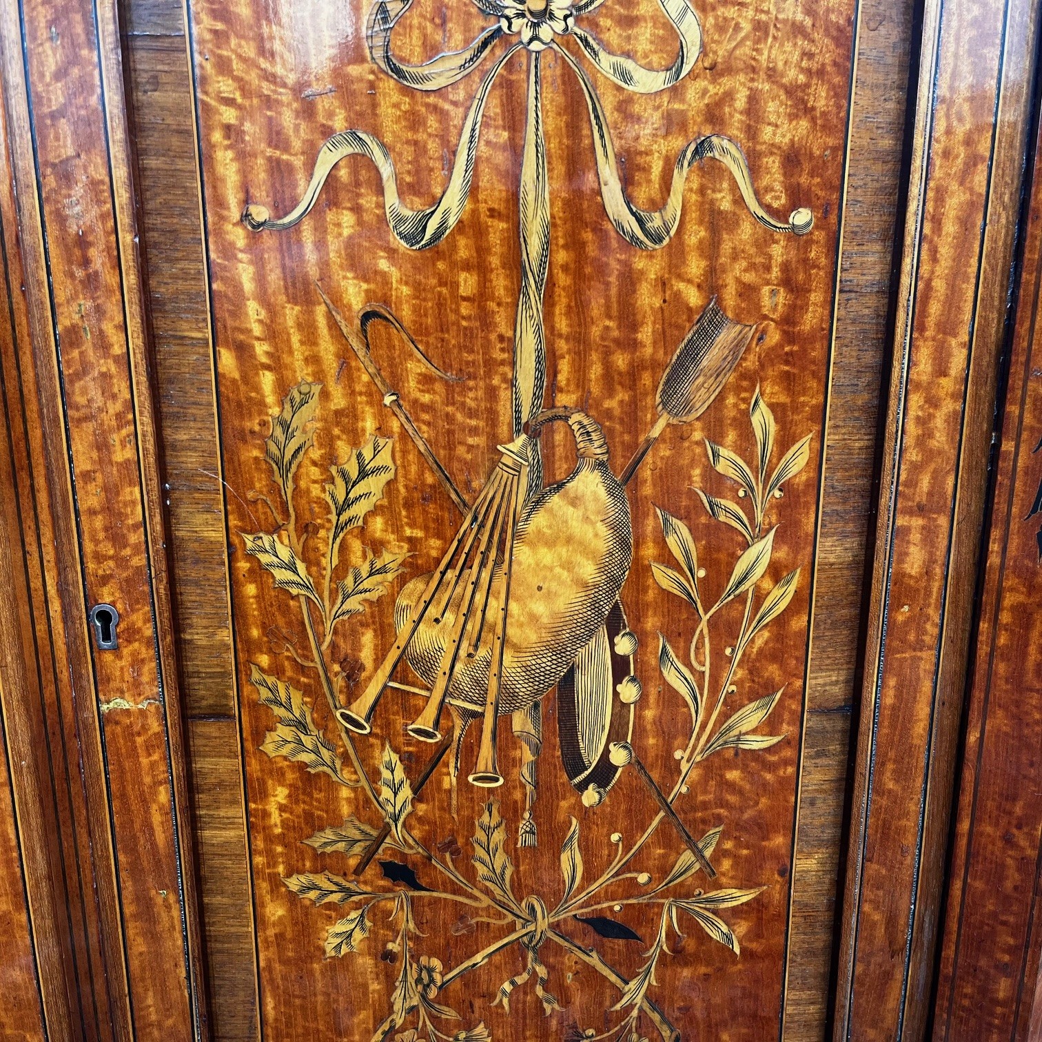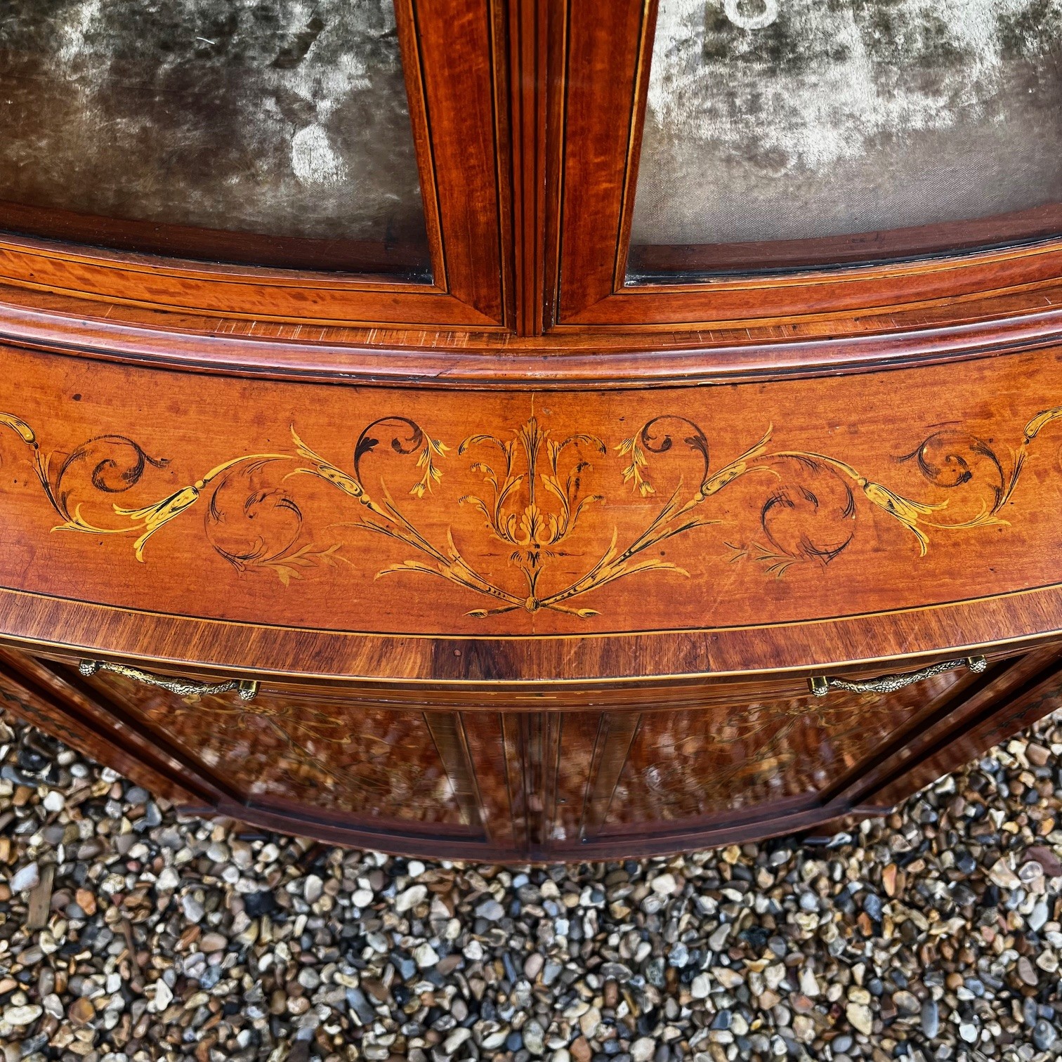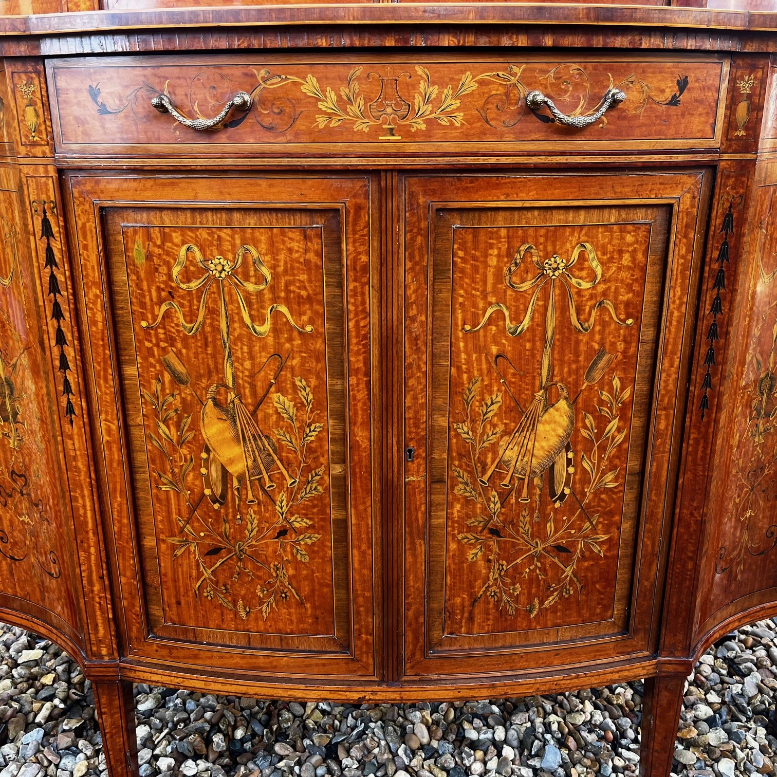 A Superior Quality Edwards & Roberts Of London 19th Century Satinwood Inlaid Serpentine Cabinet