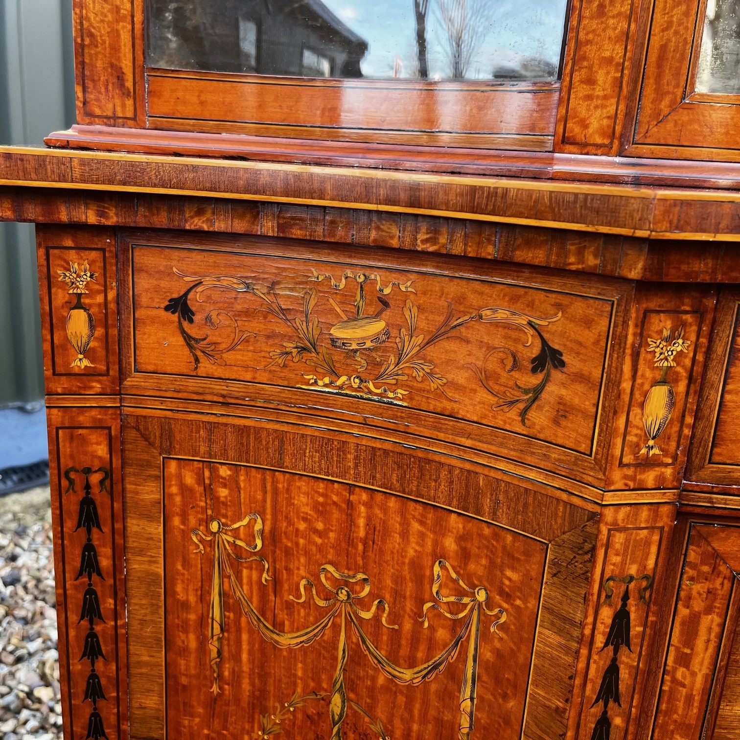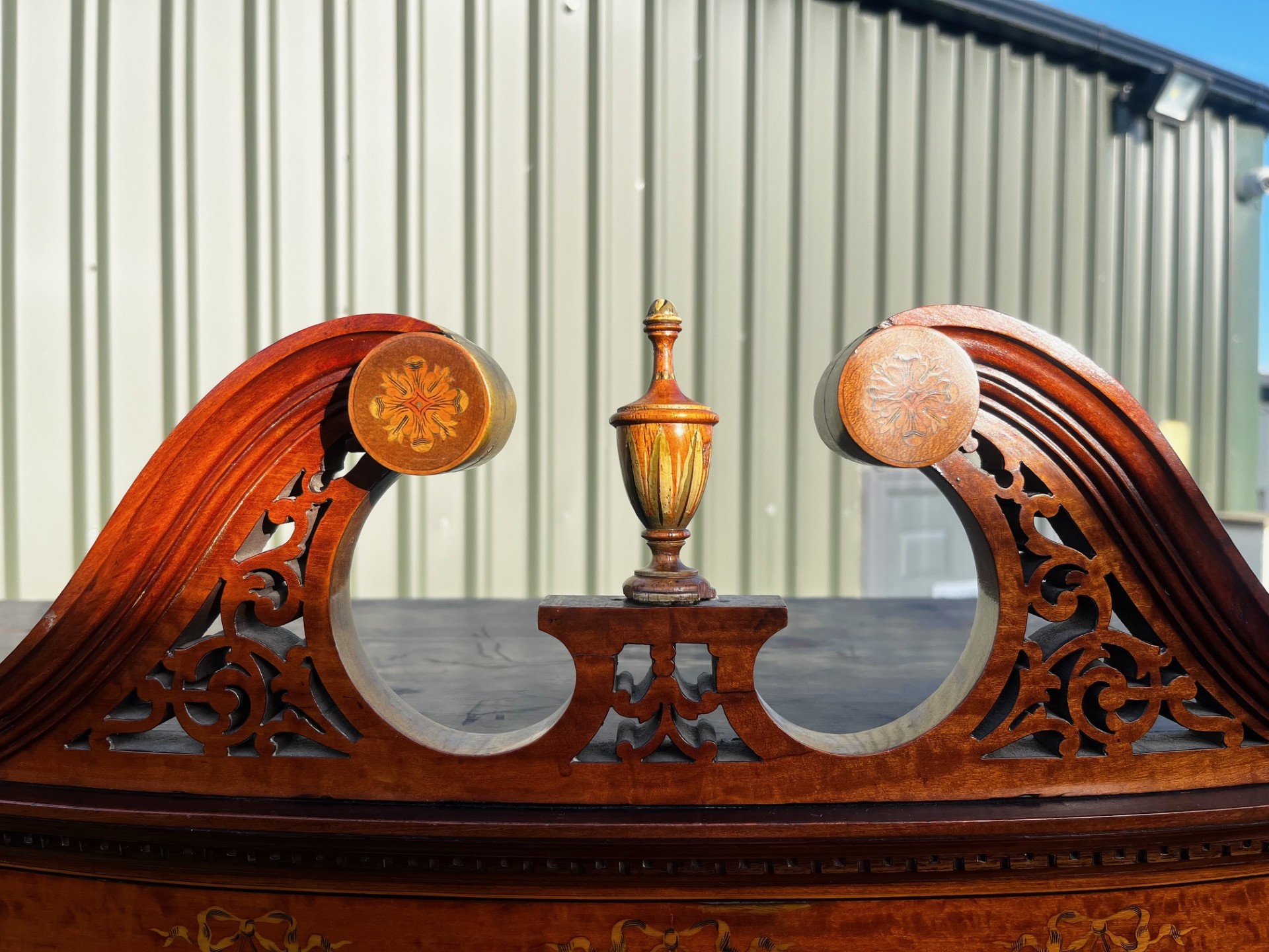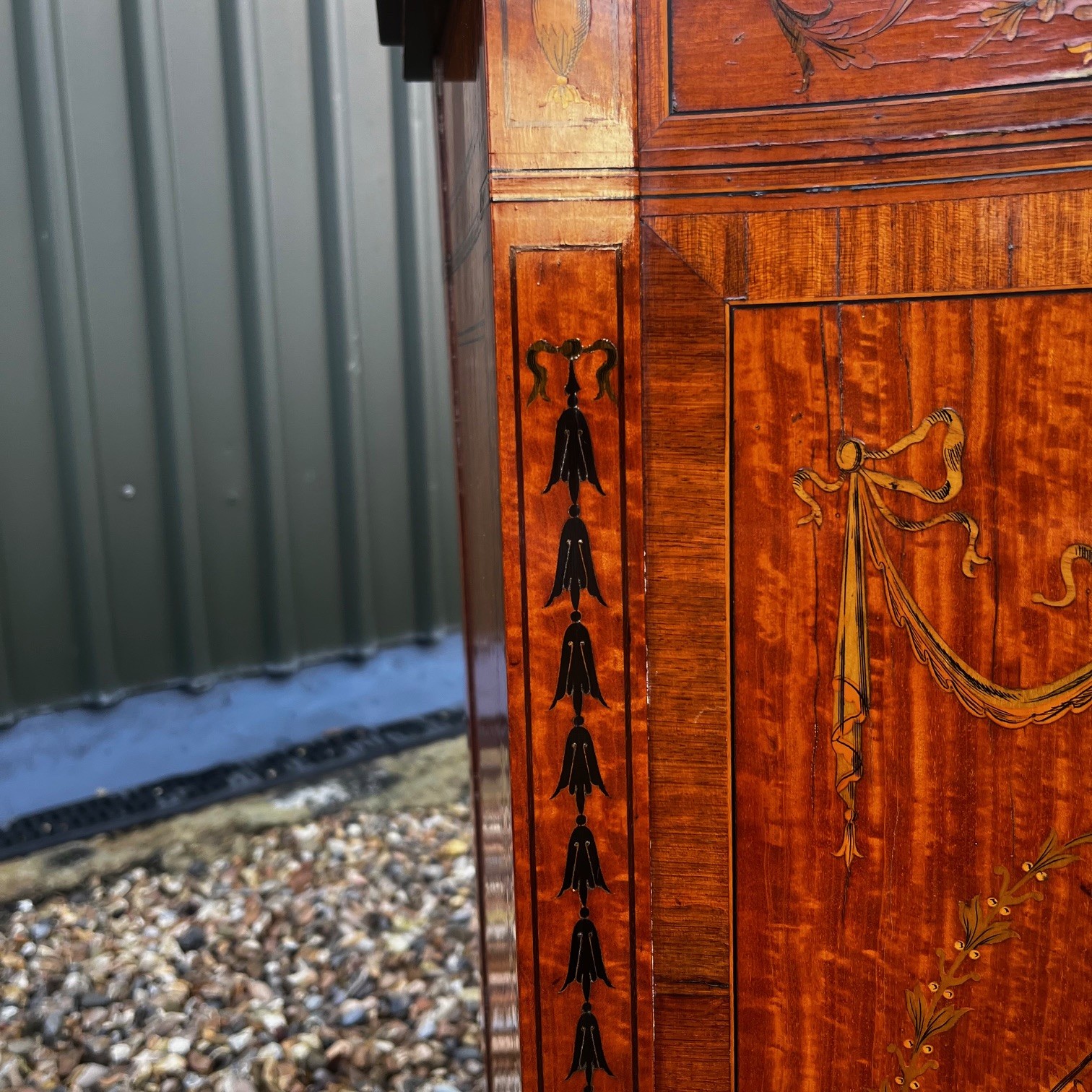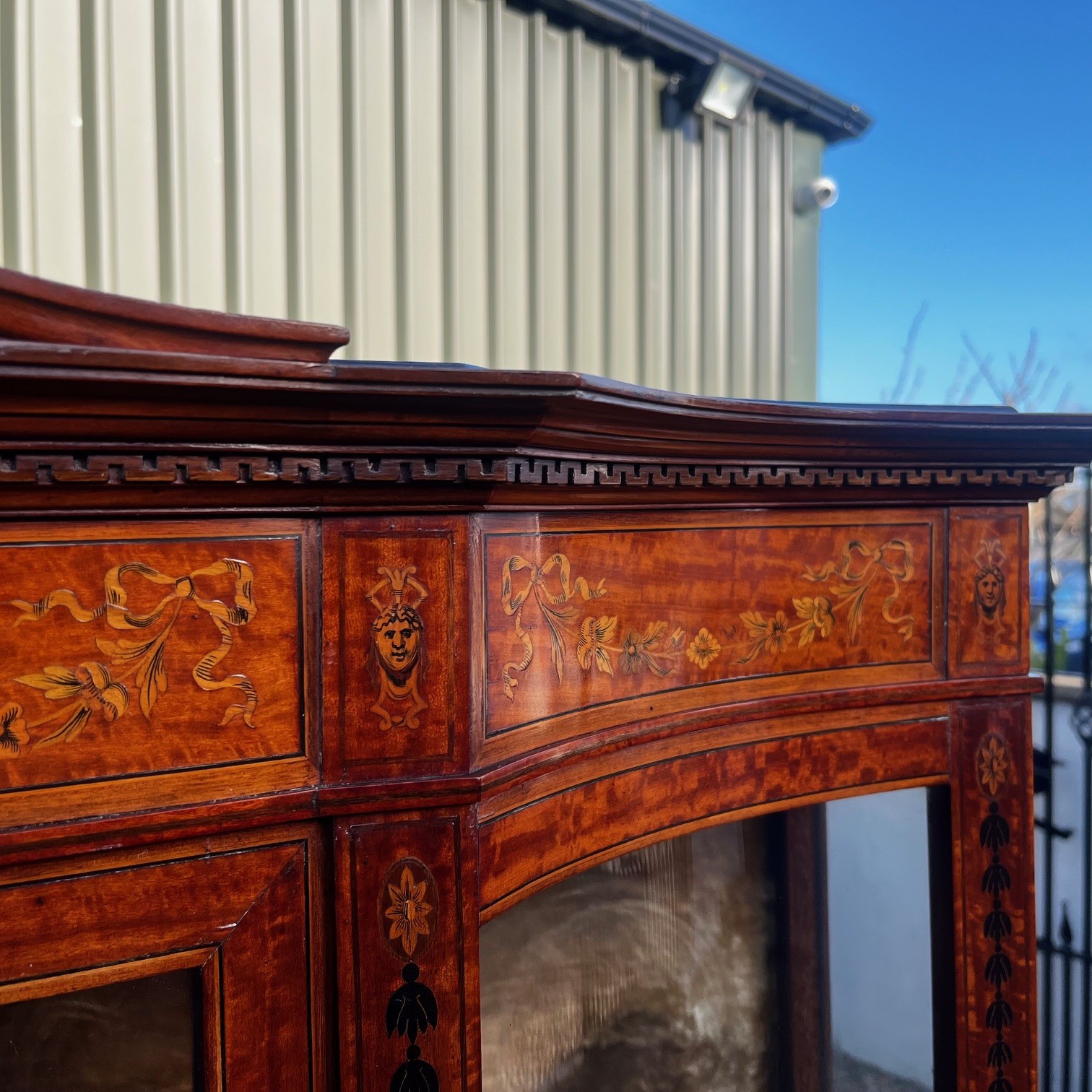 A Superior Quality Edwards & Roberts Of London 19th Century Satinwood Inlaid Serpentine Cabinet