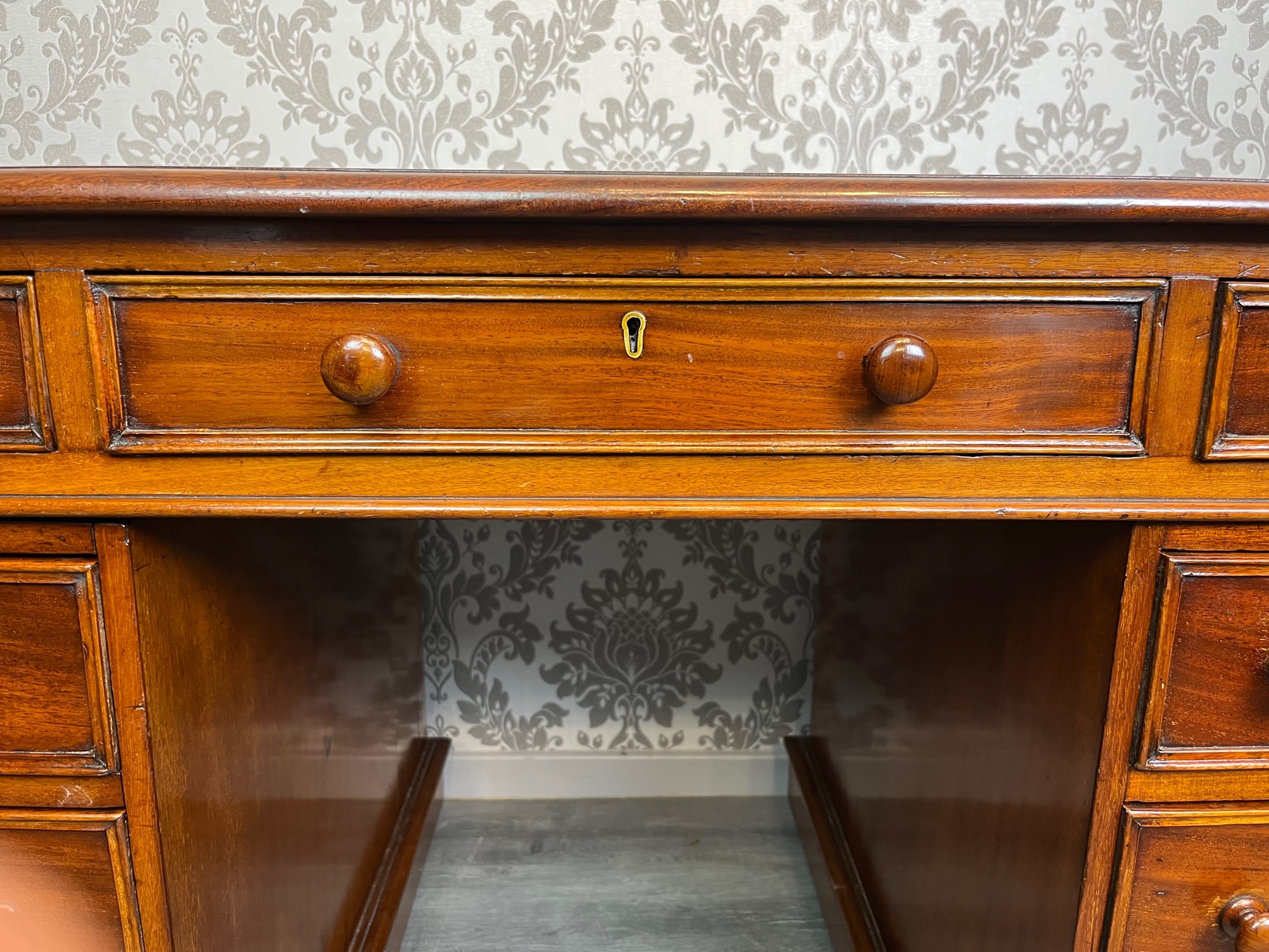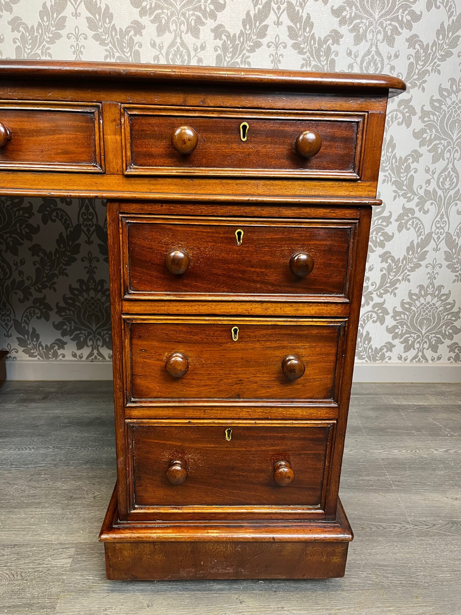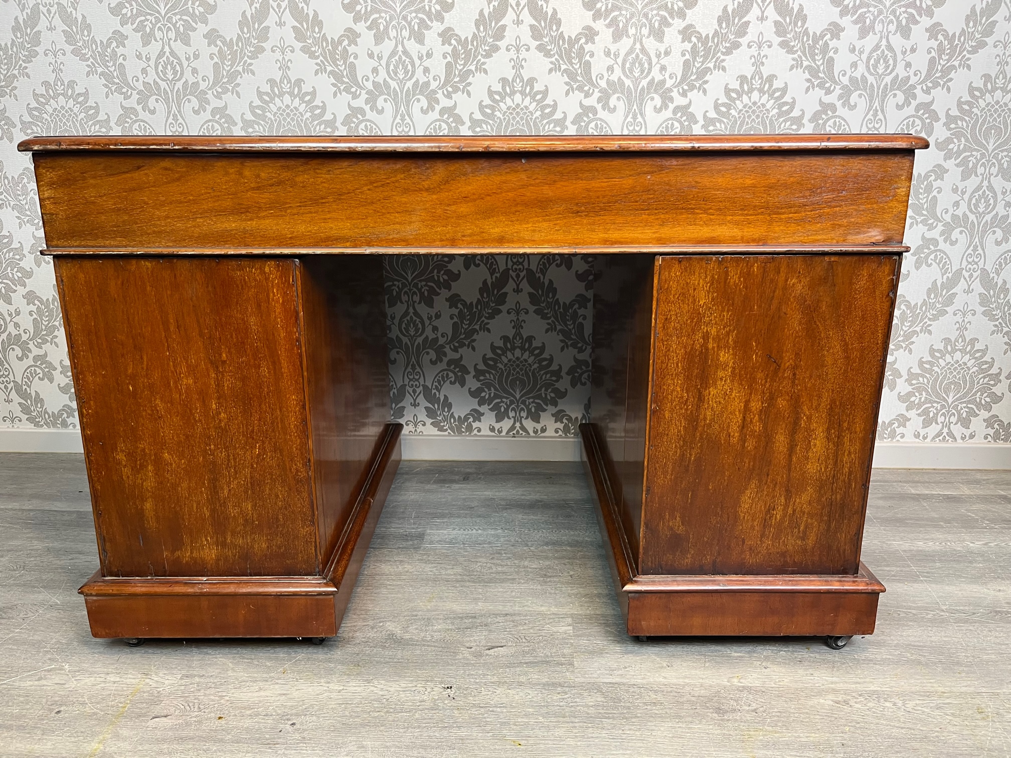 A Victorian Period mahogany three part antique pedestal desk