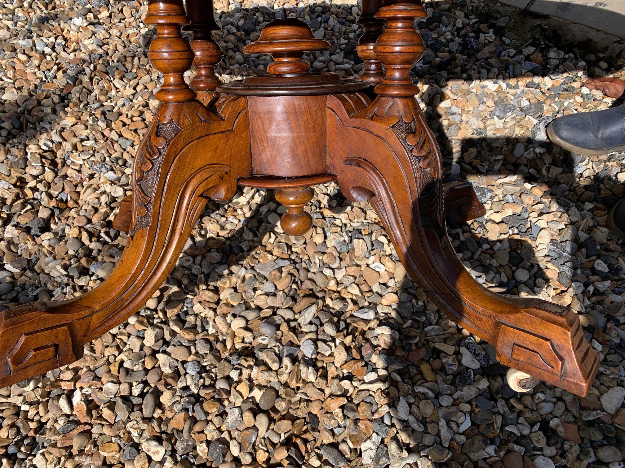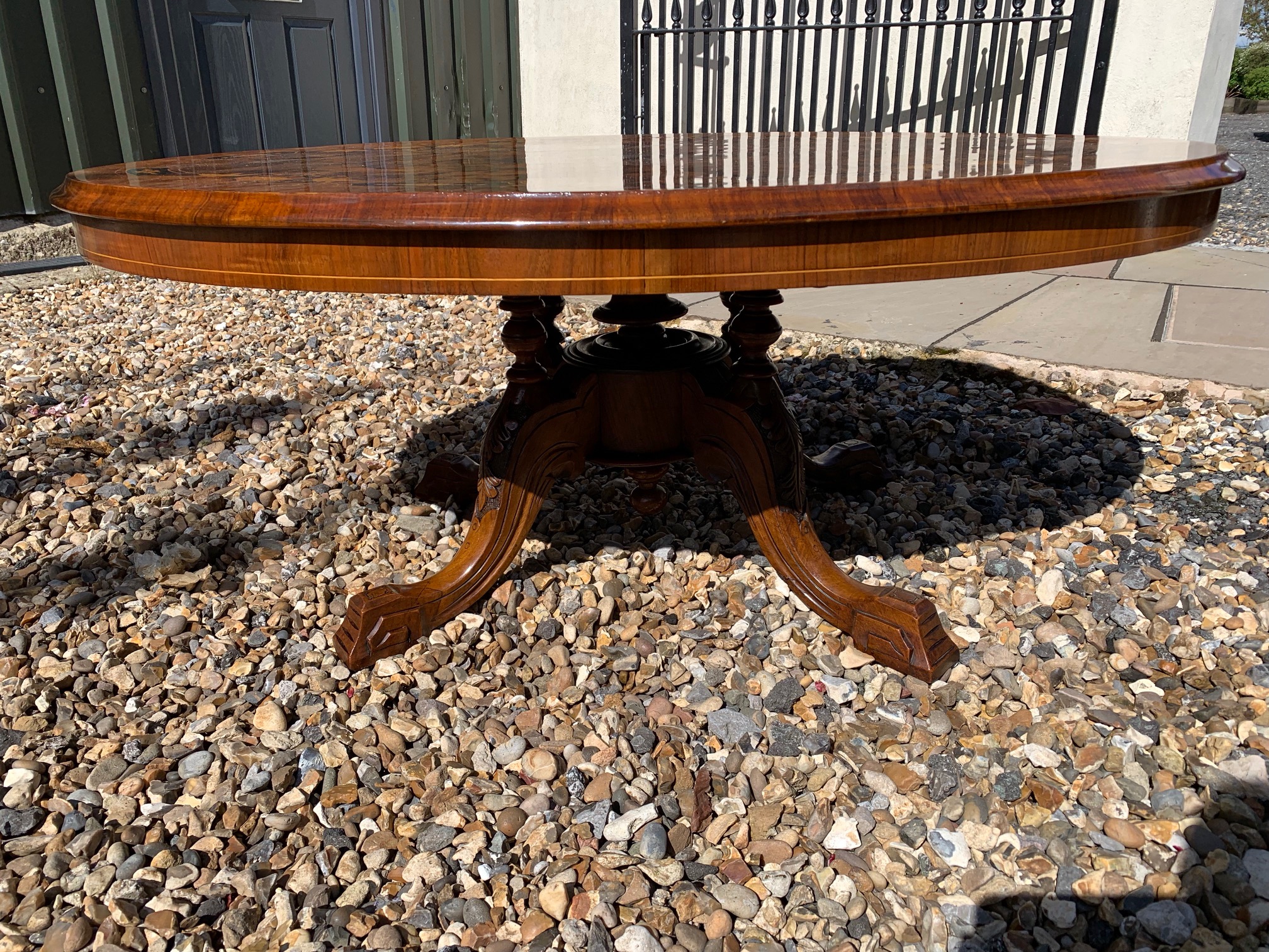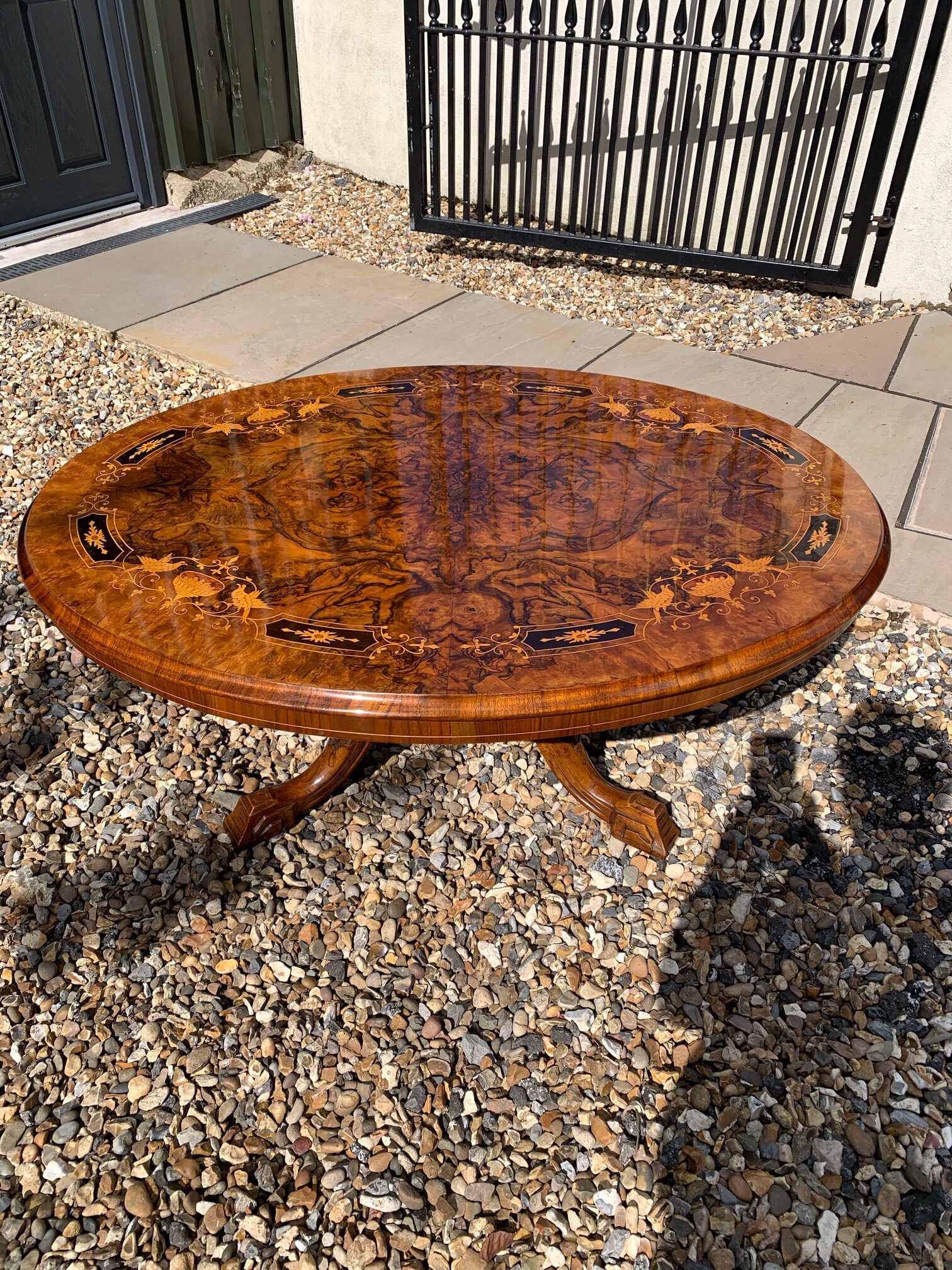 A Victorian Period oval marquetry and burr walnut antique coffee table