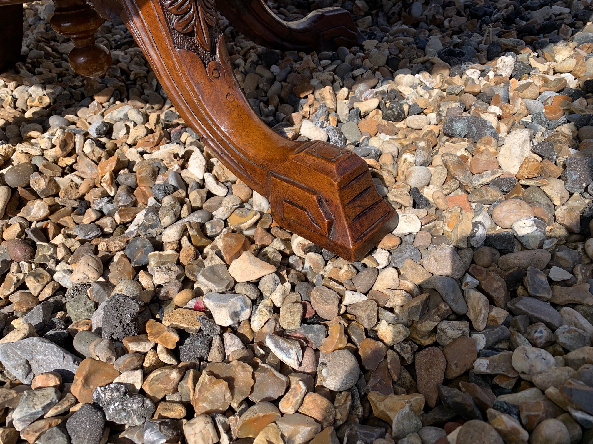 CompareA Victorian Period oval marquetry and burr walnut antique coffee table. The top veneered in richly figured burr walnut with a marquetry and ebony inlaid border, having a moulded edge and line inlaid frieze. Raised on turned column supports with acanthus carved cabriole legs with brass and porcelain castors. English C1870-1880, excellent condition the top has been repolished