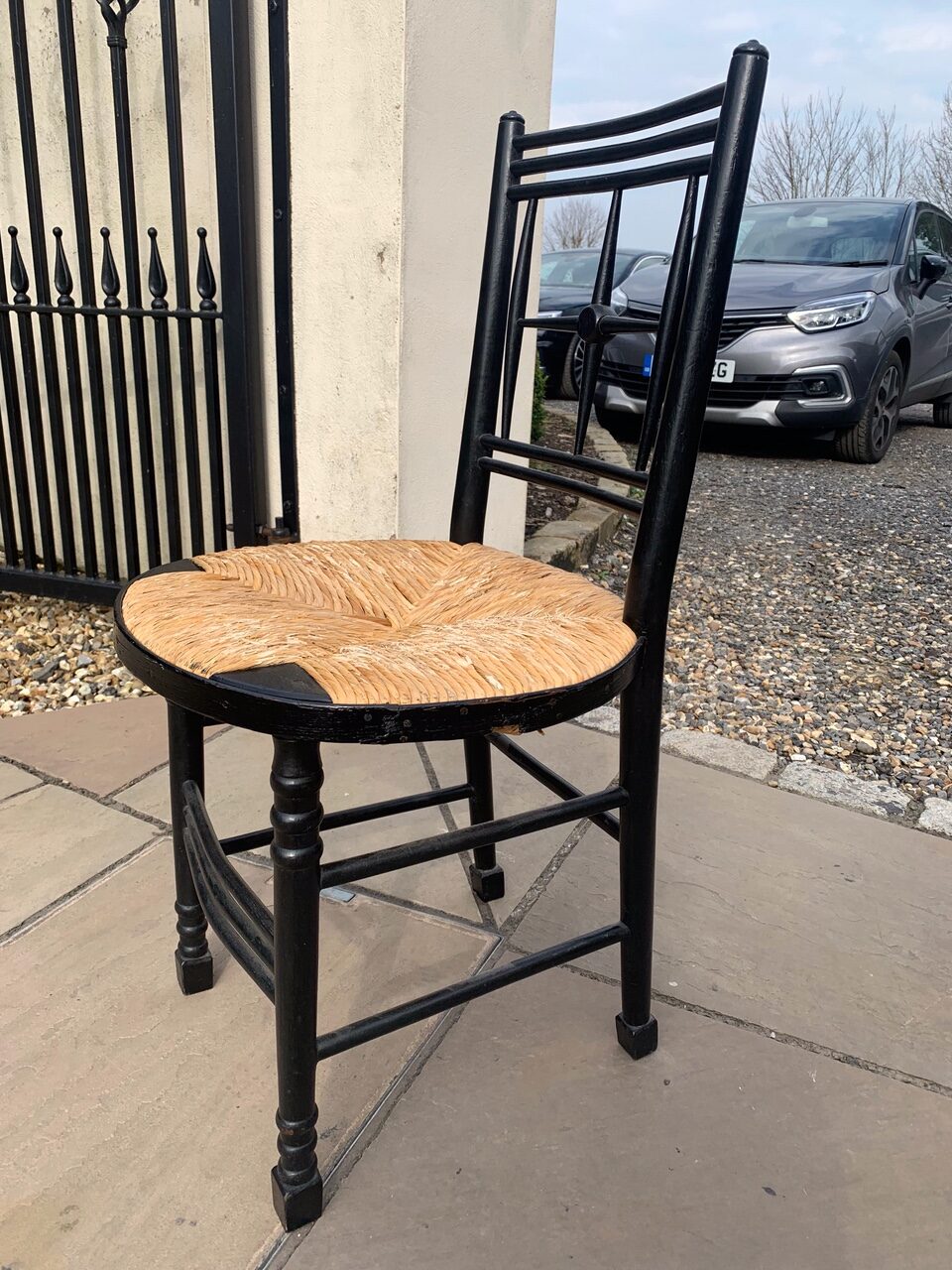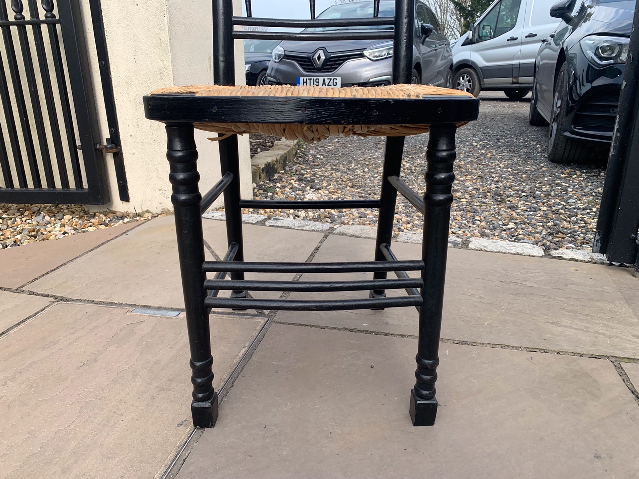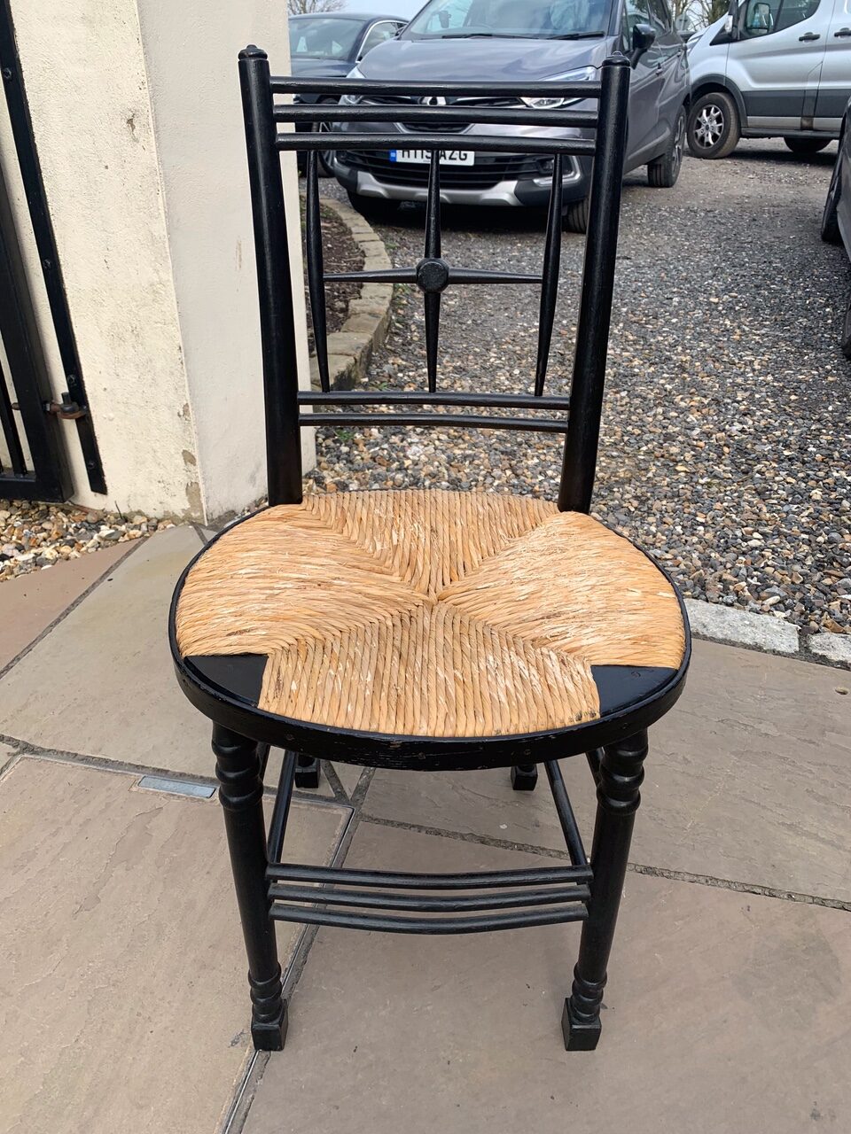 CompareAn Aesthetic Period Ford Madox Brown antique Sussex chair, in original ebonised oak and complete with rush seat. English circa 1870-1880, in excellent original condition