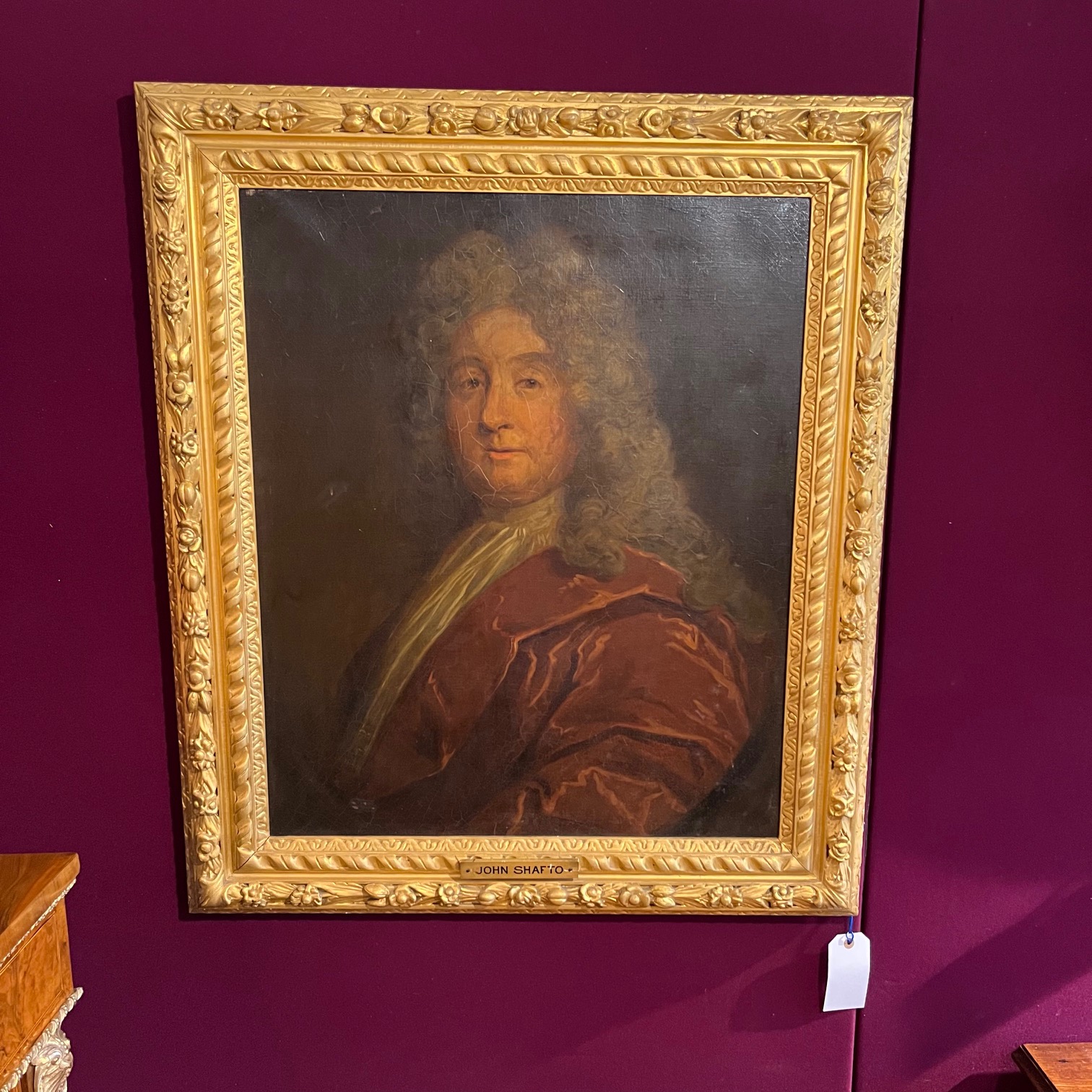 CompareAn Early 18th Century portrait of John Shafto depicting a Georgian gentleman housed in the original carved gilt wood and gesso frame. English circa 1730 in superb condition