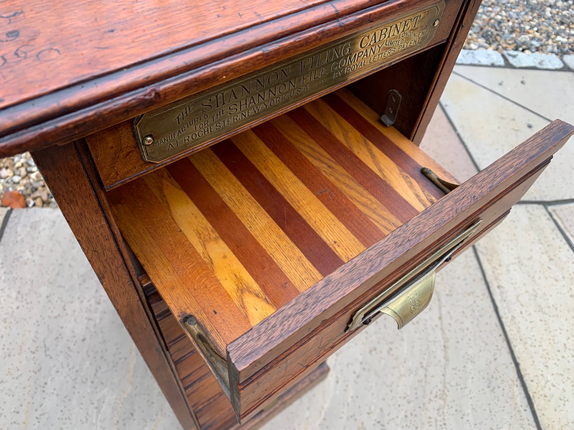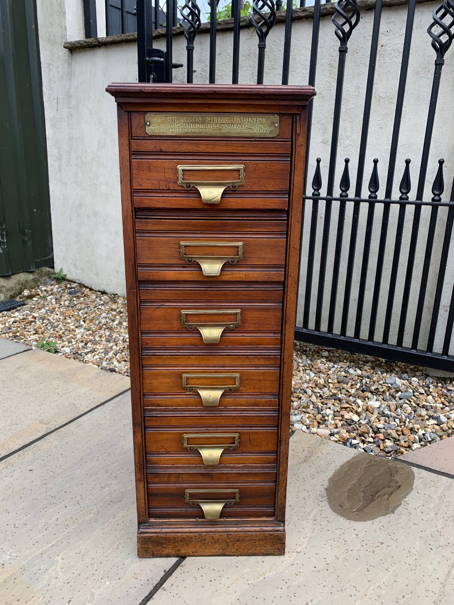 An Edwardian Period walnut six drawer filing cabinet by The Shannon File Company Ltd