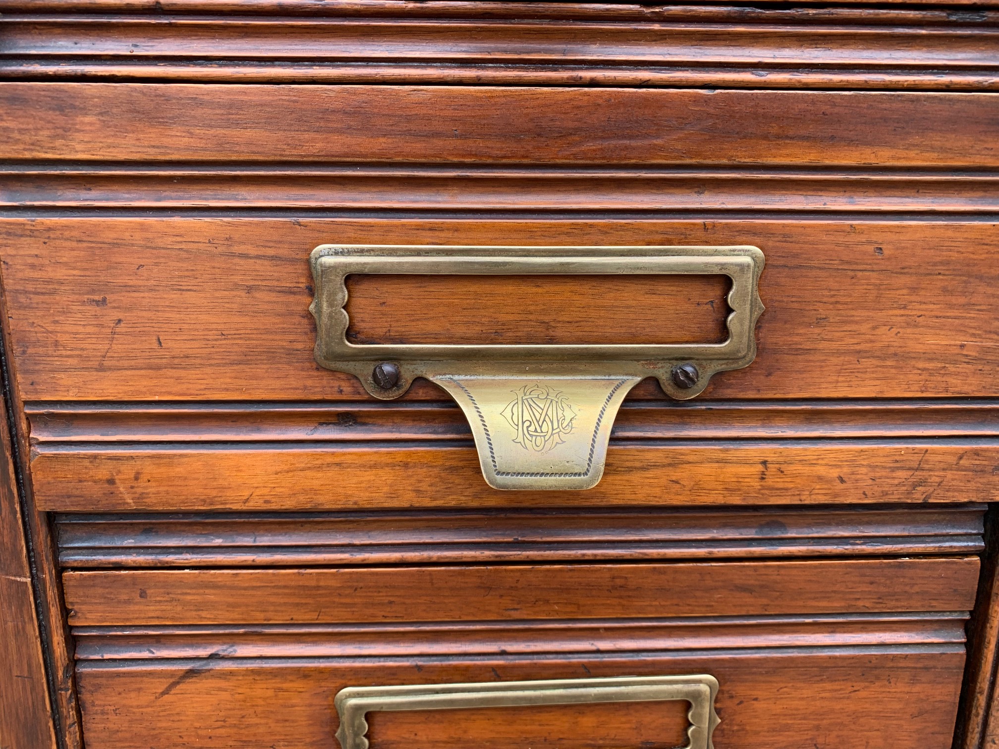 CompareAn Edwardian Period walnut six drawer filing cabinet by The Shannon File Company Ltd. The rectangular solid walnut top above six sliding filing drawers with brass name plaques and solid walnut fronts, sides and plinth. Made by the famous Shannon File Company Ltd, New York, USA. American circa 1910