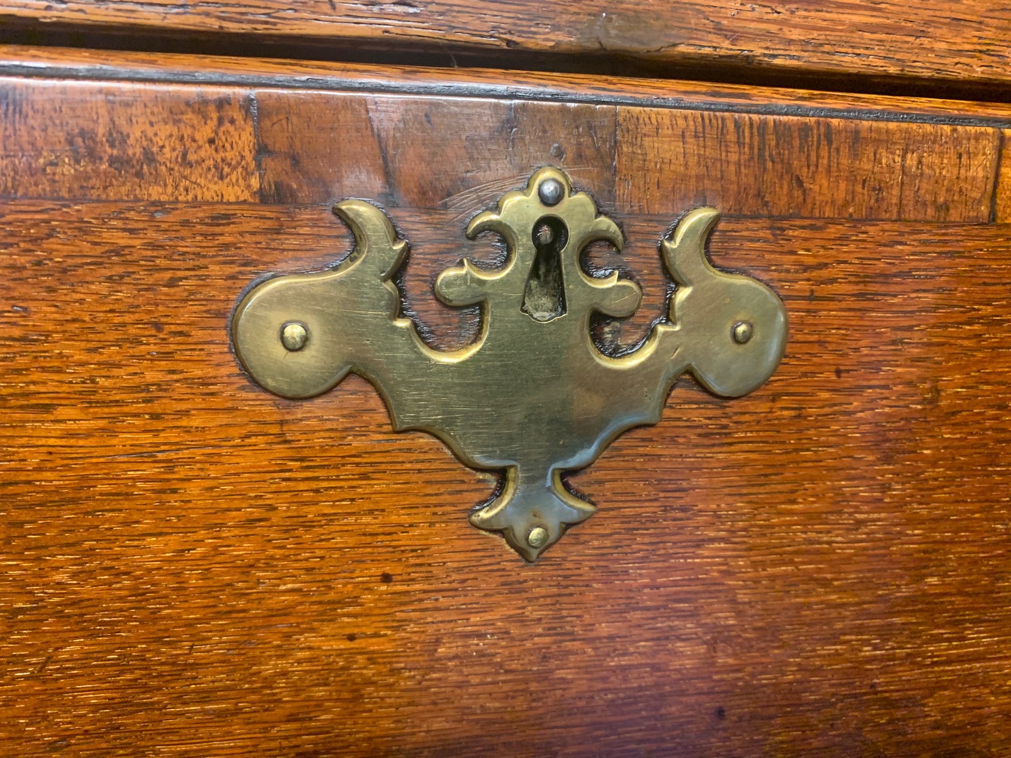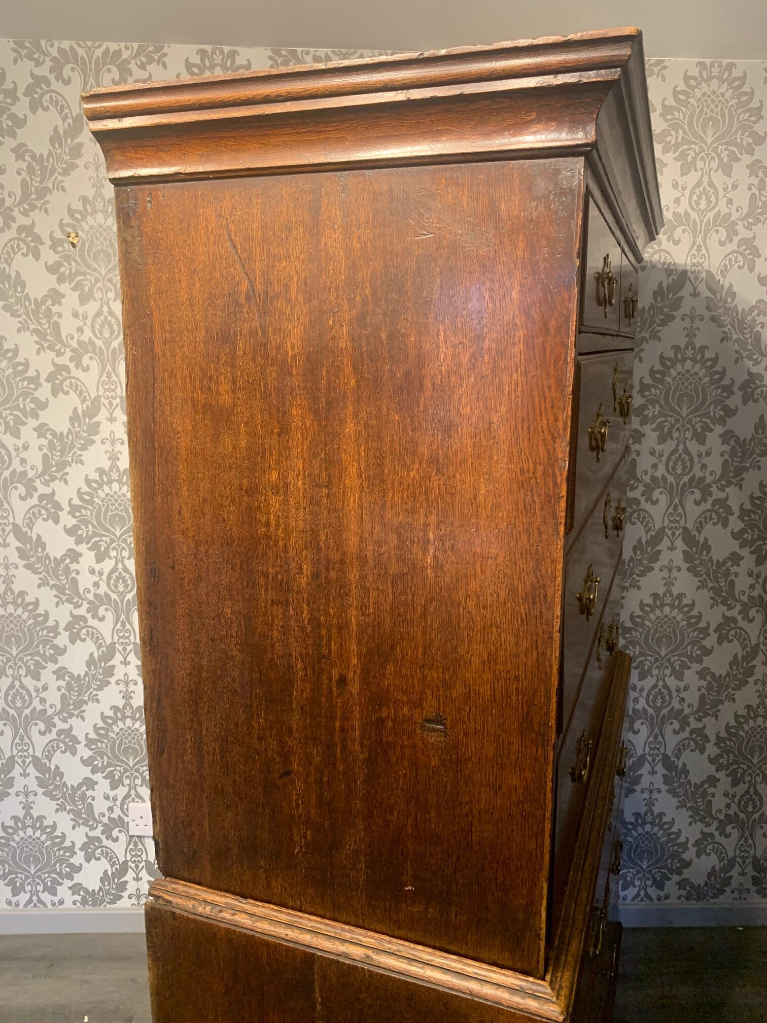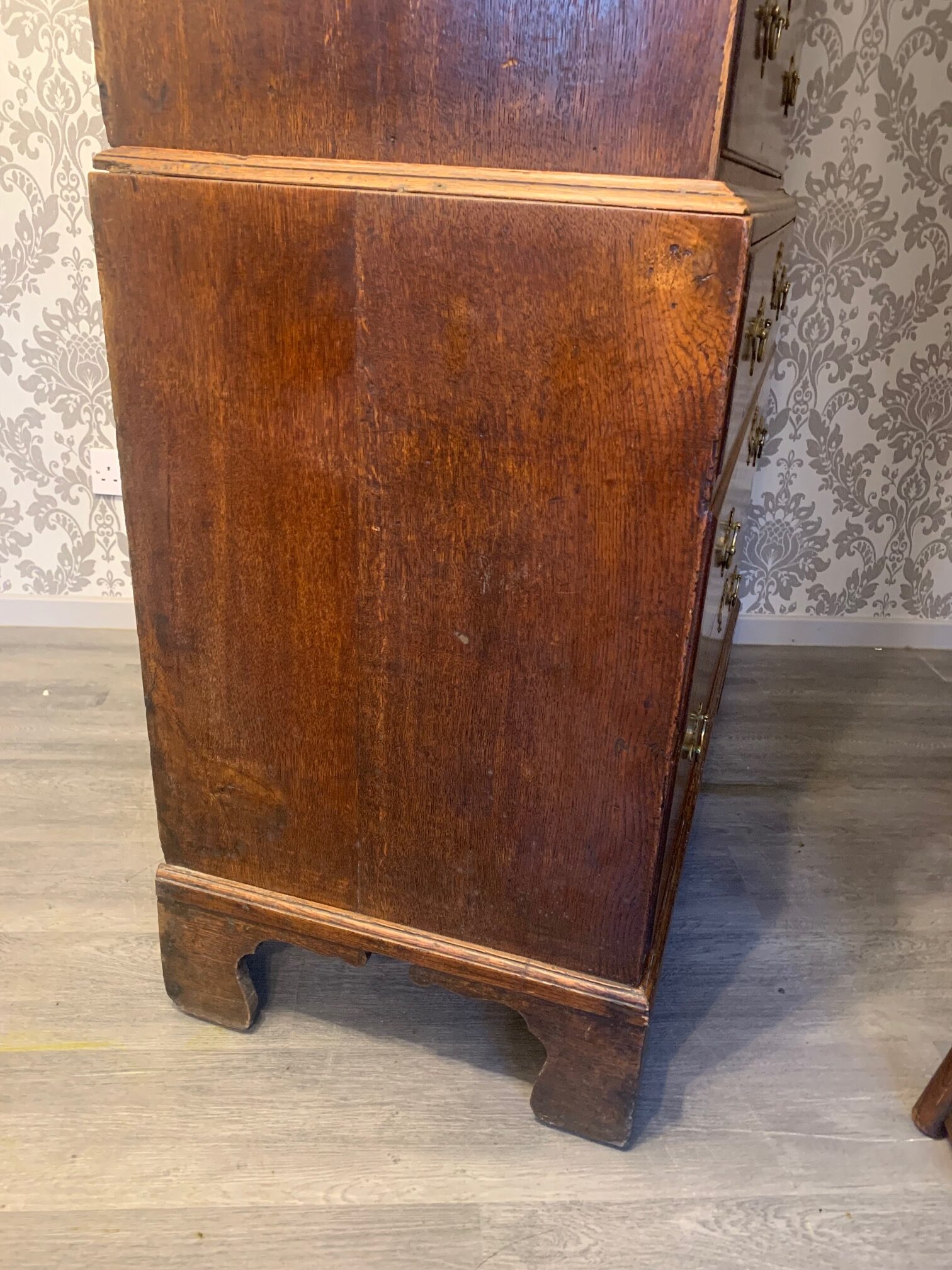 An oak and walnut banded George III Period antique chest on chest.