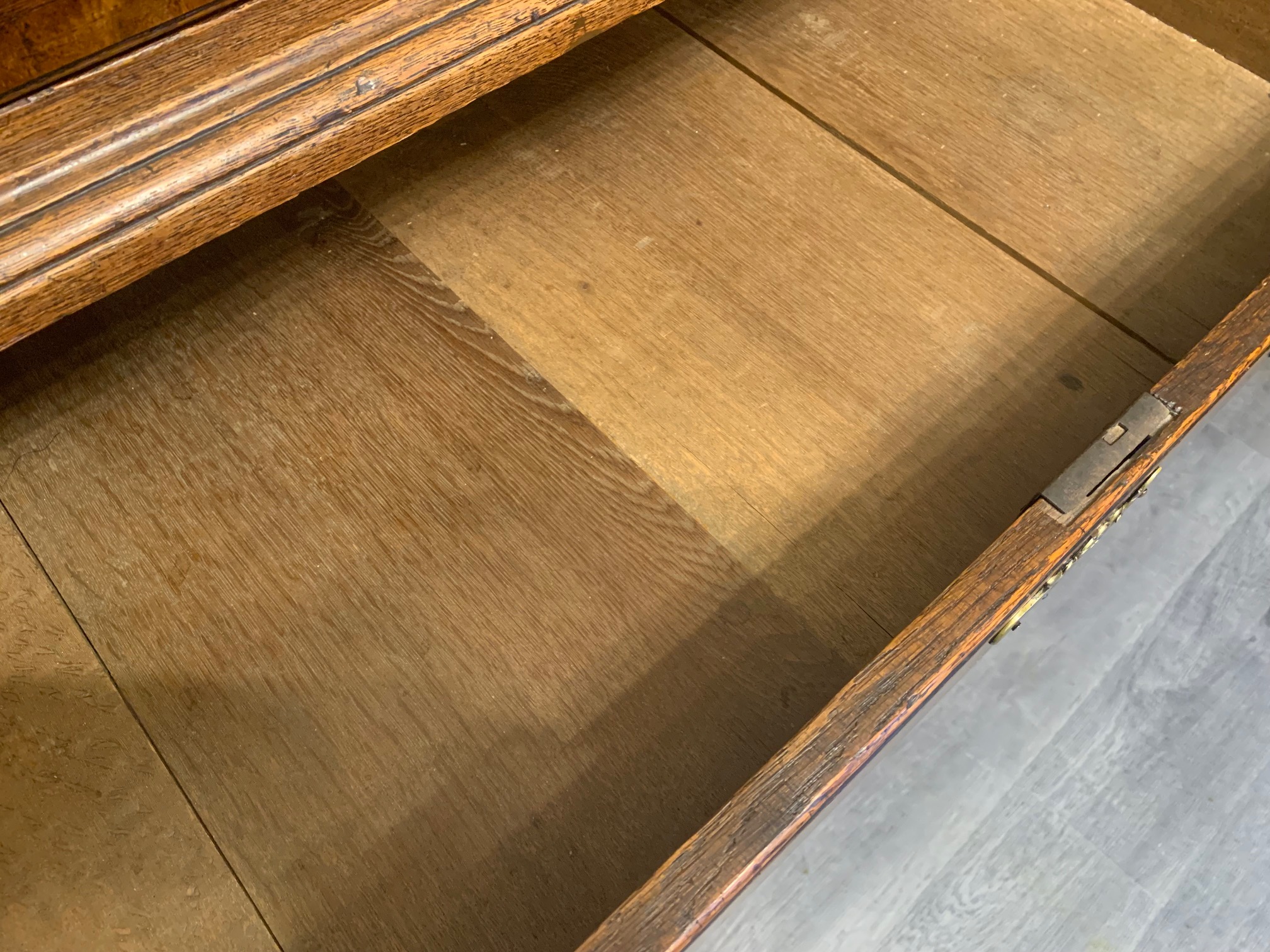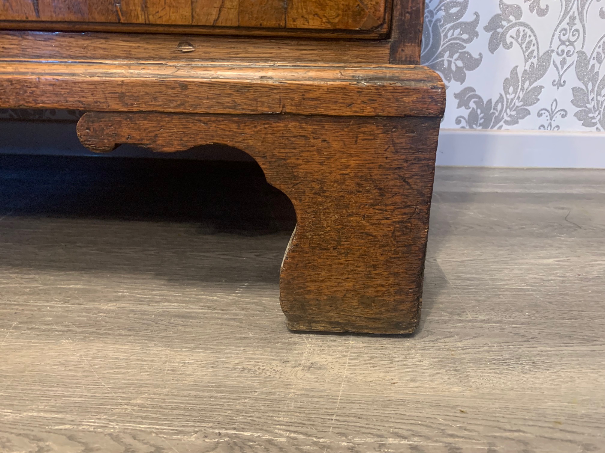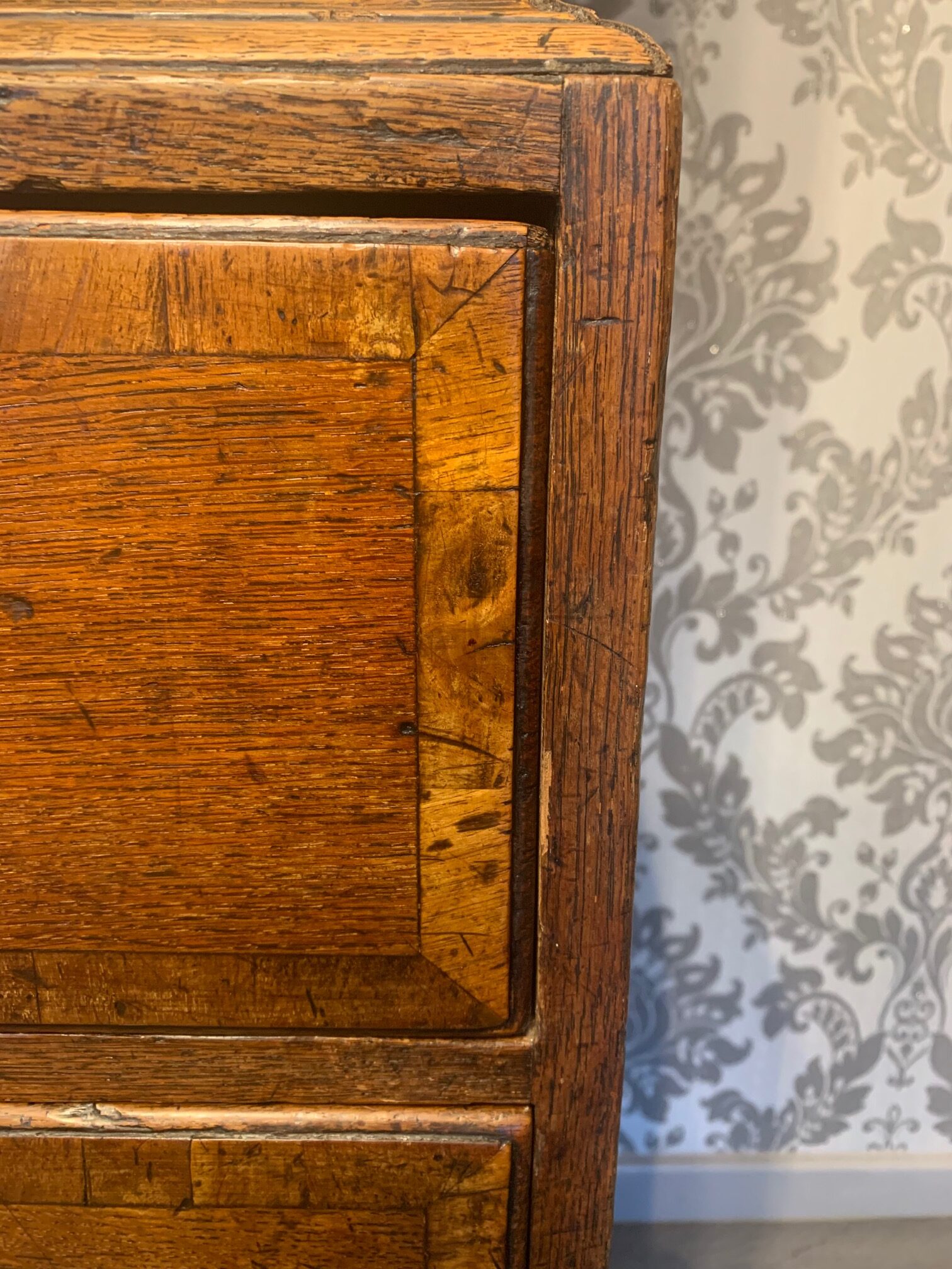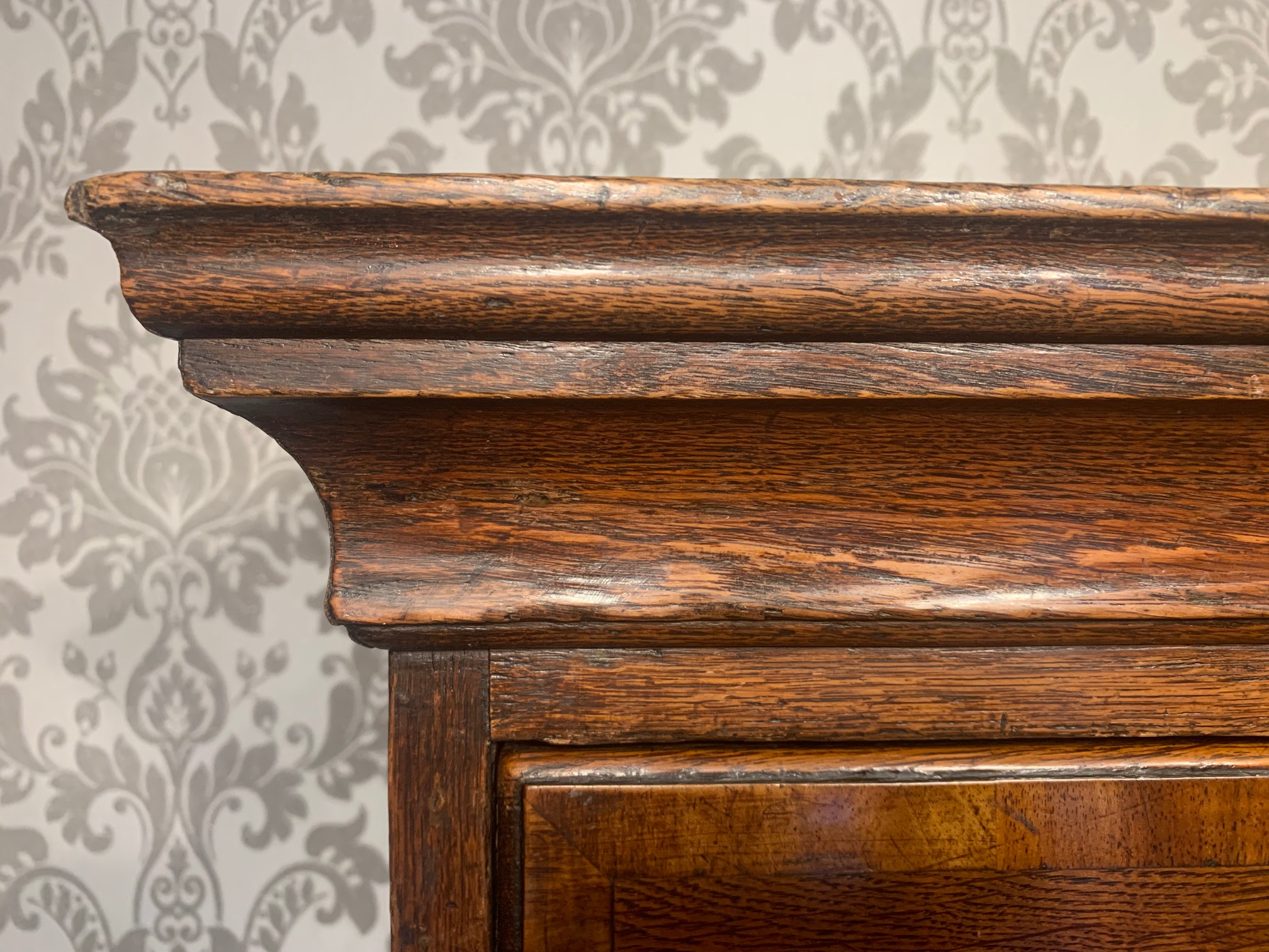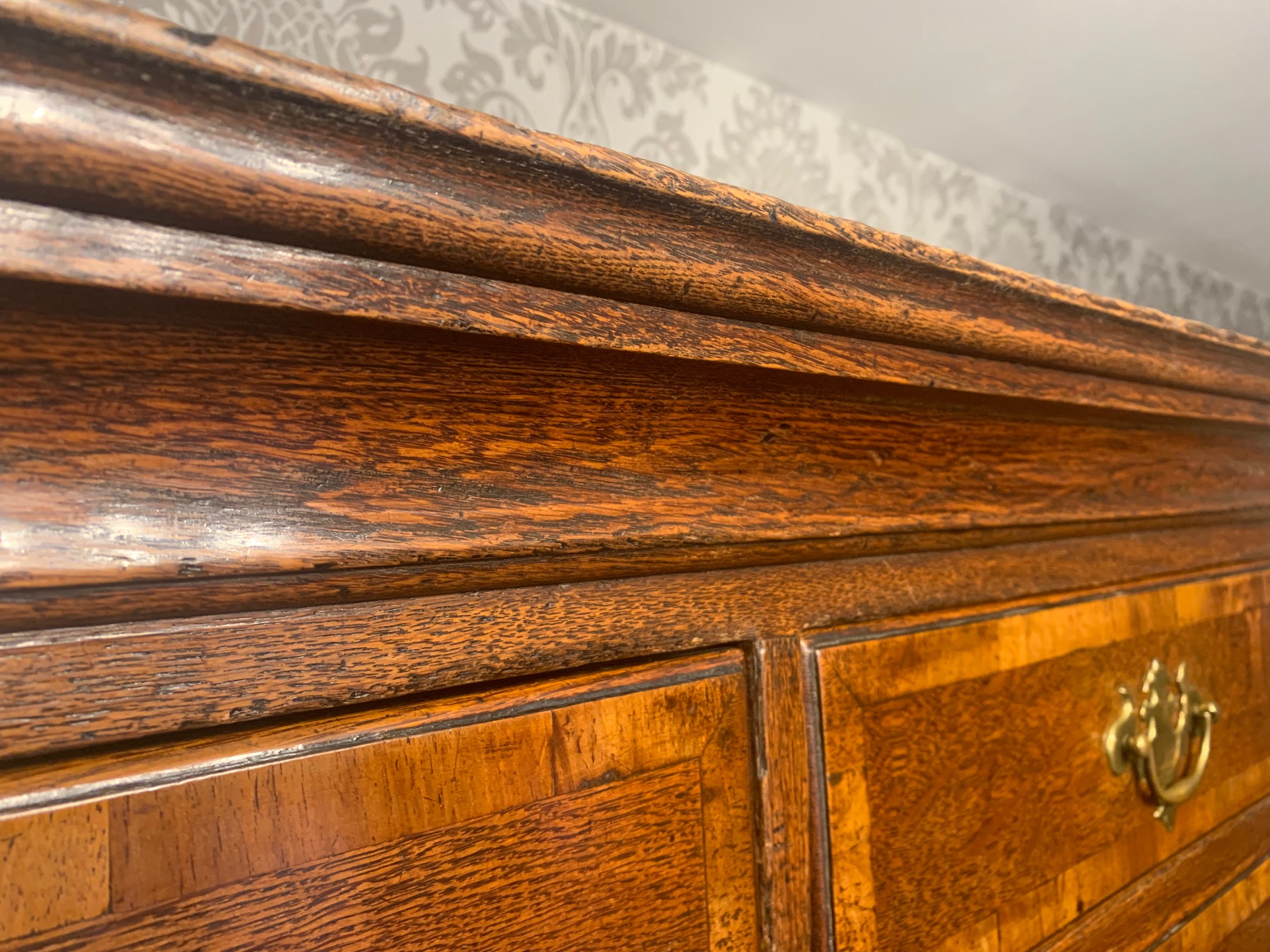 An oak and walnut banded George III Period antique chest on chest