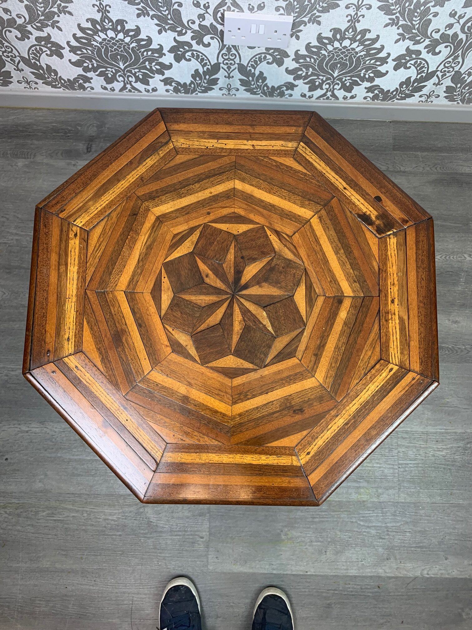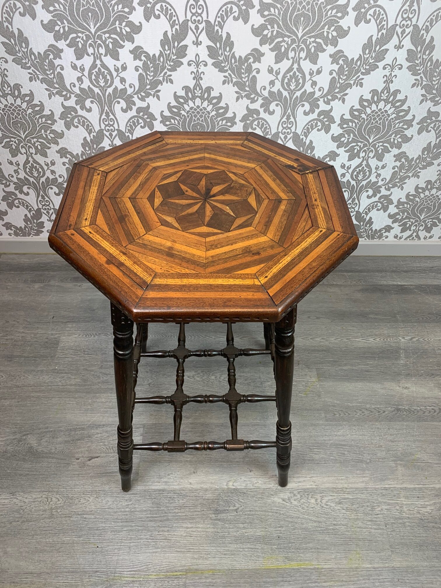 An unusual Aesthetic Period octagonal parquetry inlaid table